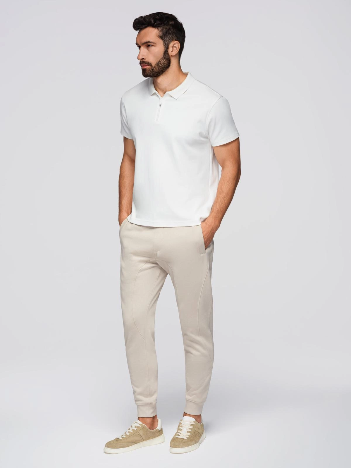 Opinie o Spodnie męskie dresowe typu jogger - jasnobeżowe V1 OM-PABS-0173