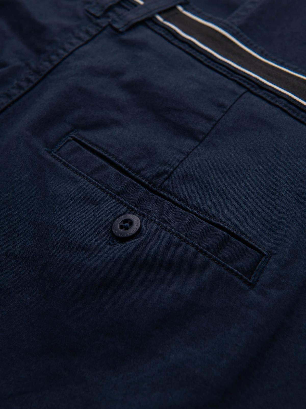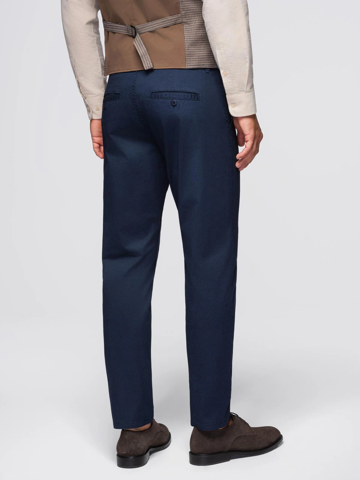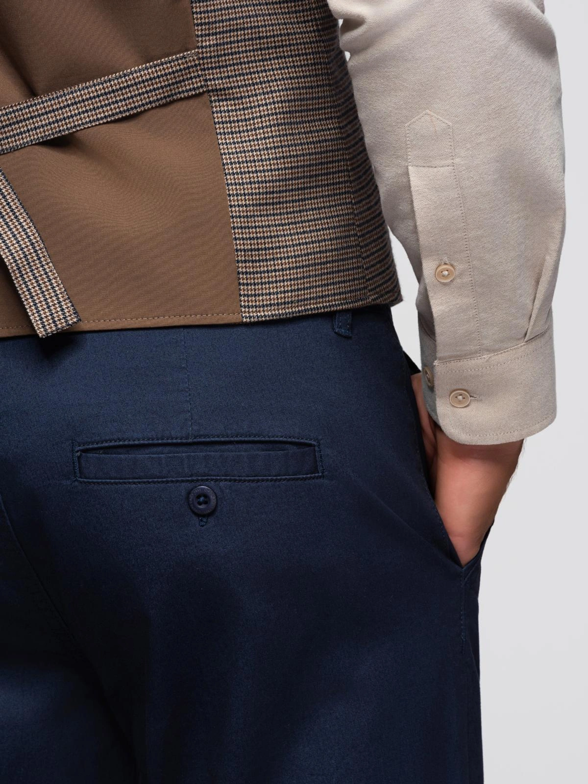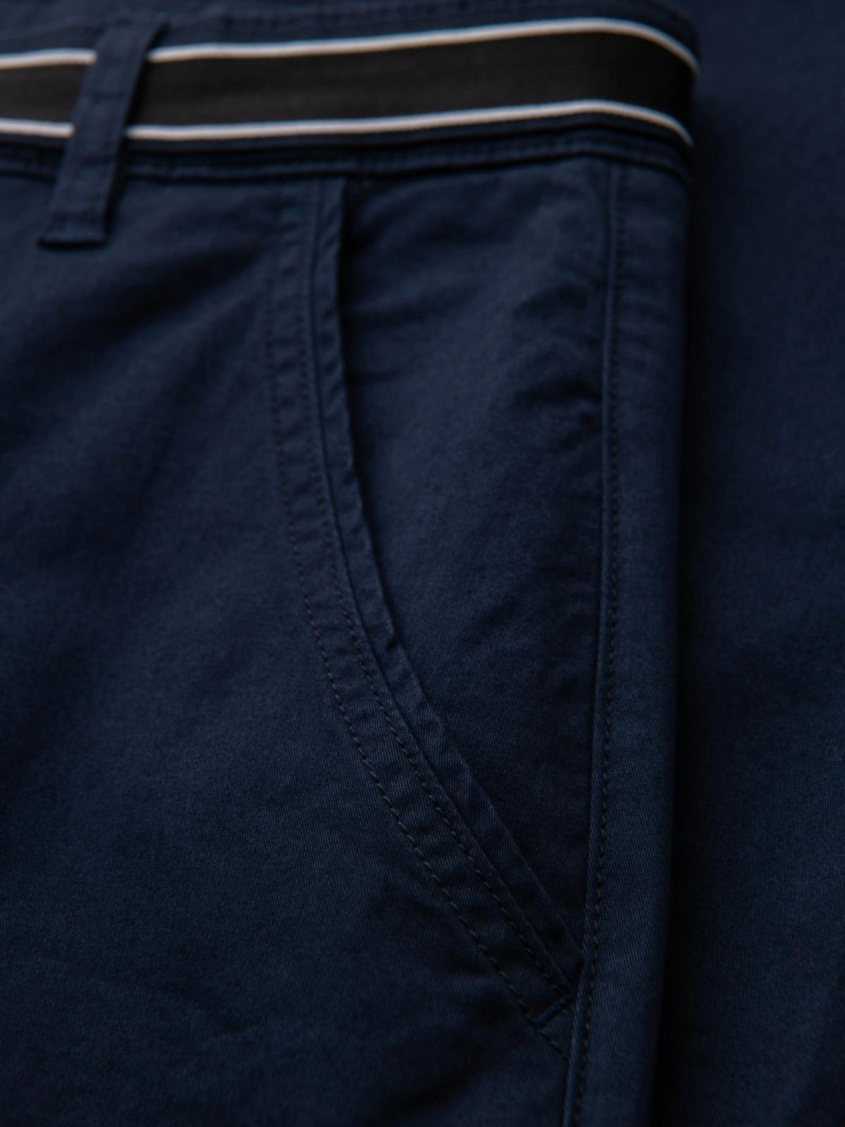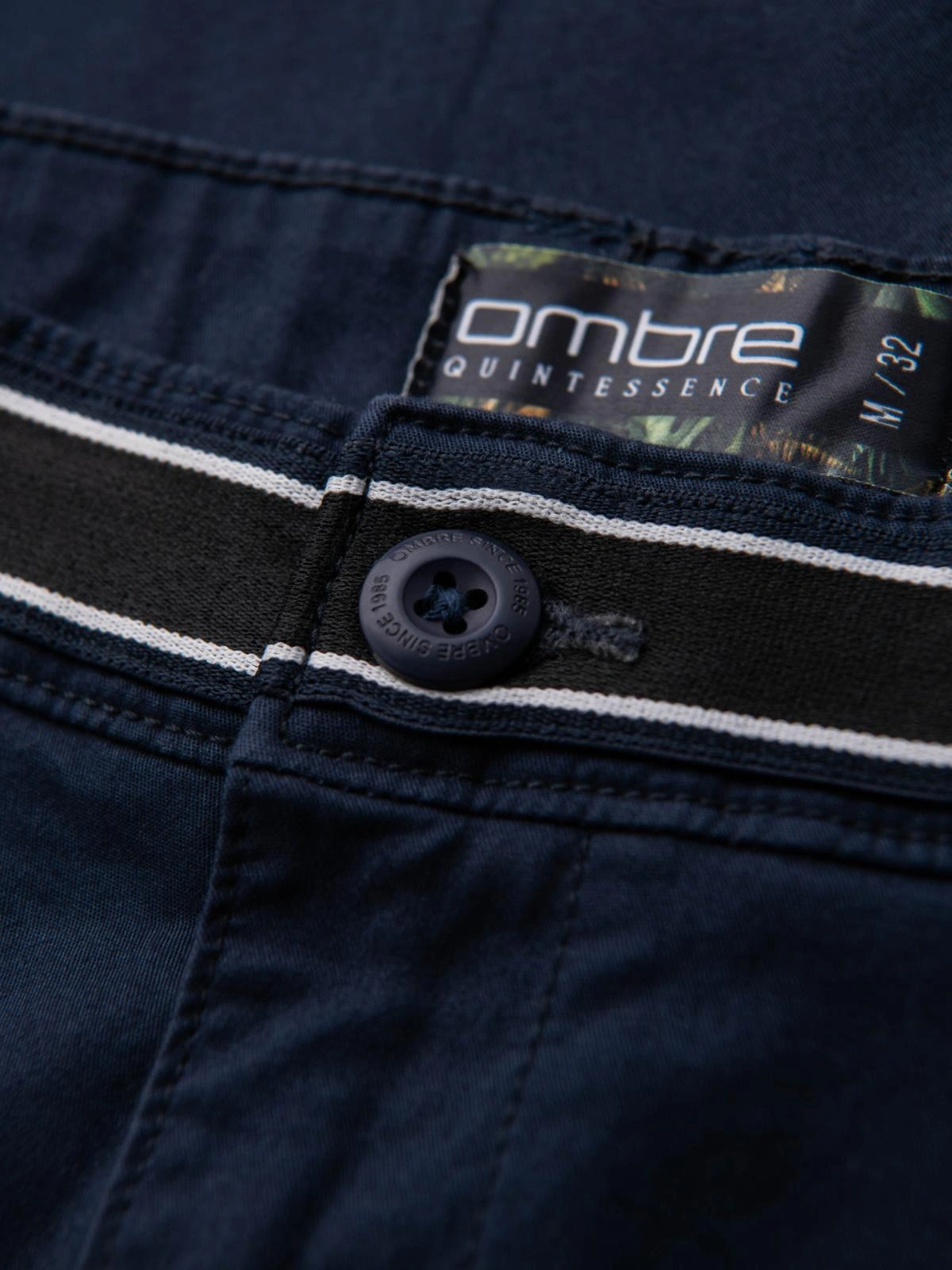 Męskie spodnie chino z ozdobną taśmą w pasie SLIM FIT – granatowe V2 OM-PACP-0118