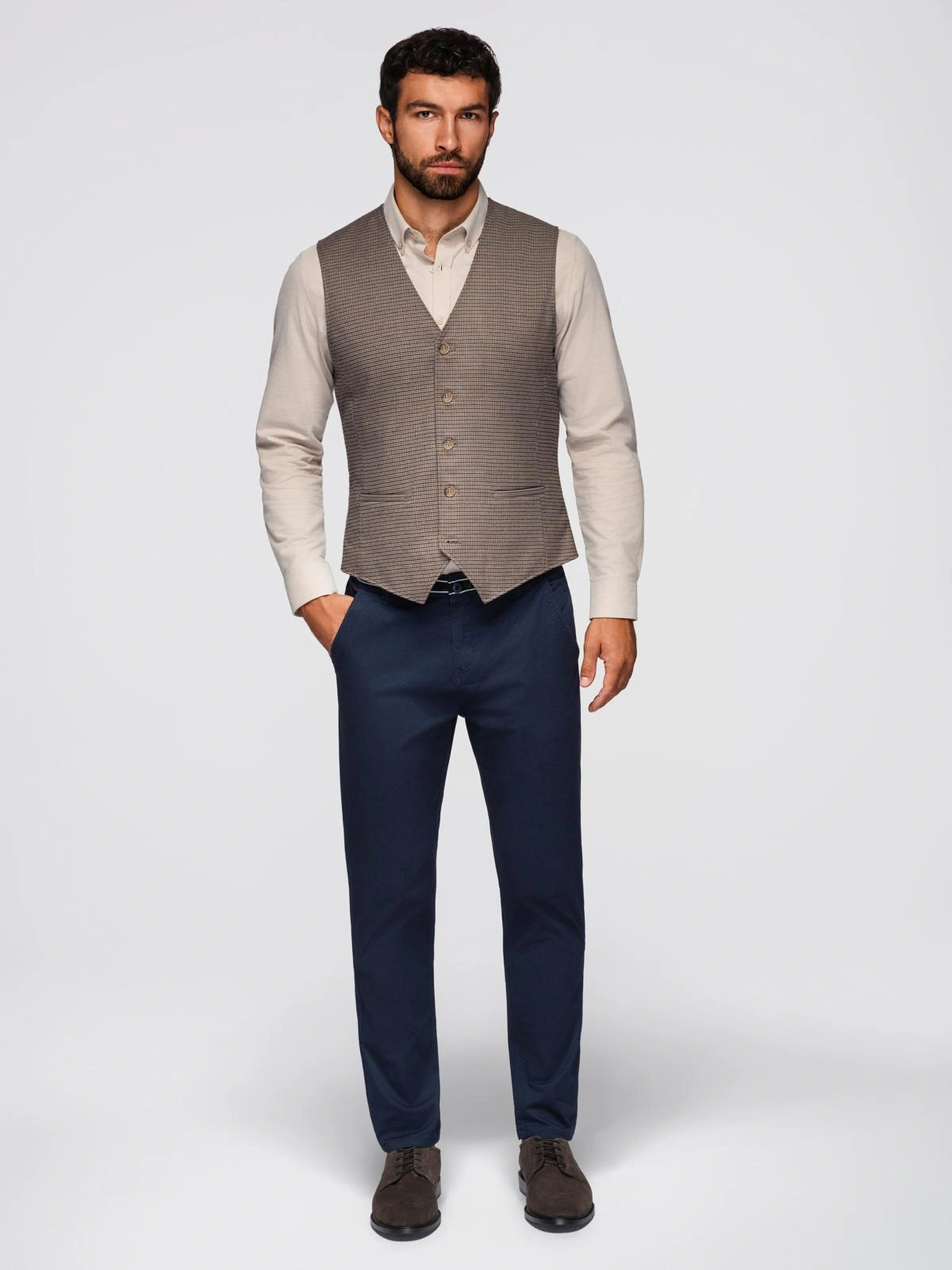 Opinie o Męskie spodnie chino z ozdobną taśmą w pasie SLIM FIT – granatowe V2 OM-PACP-0118