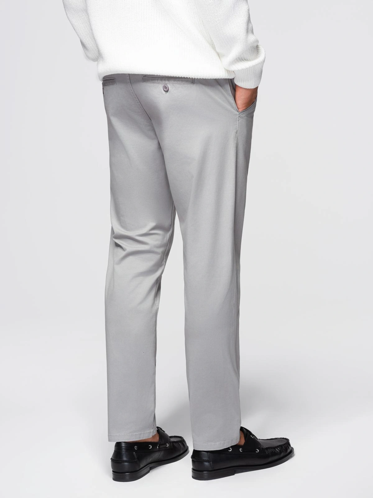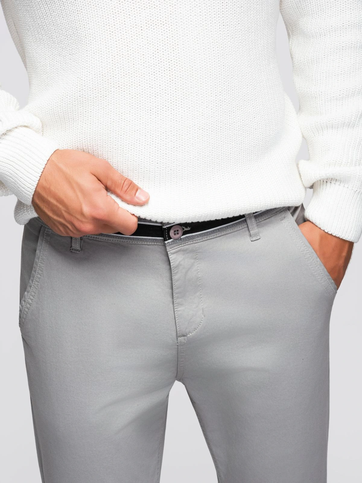 Spodnie męskie chino z ozdobną taśmą w pasie SLIM FIT – szare V6 OM-PACP-0118