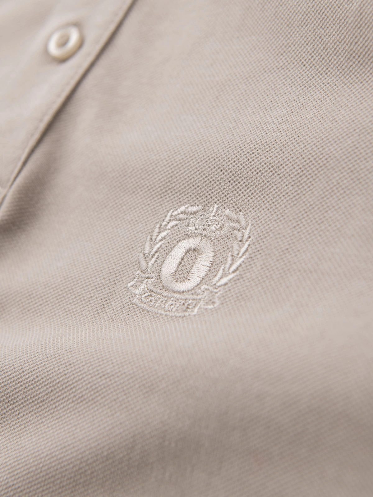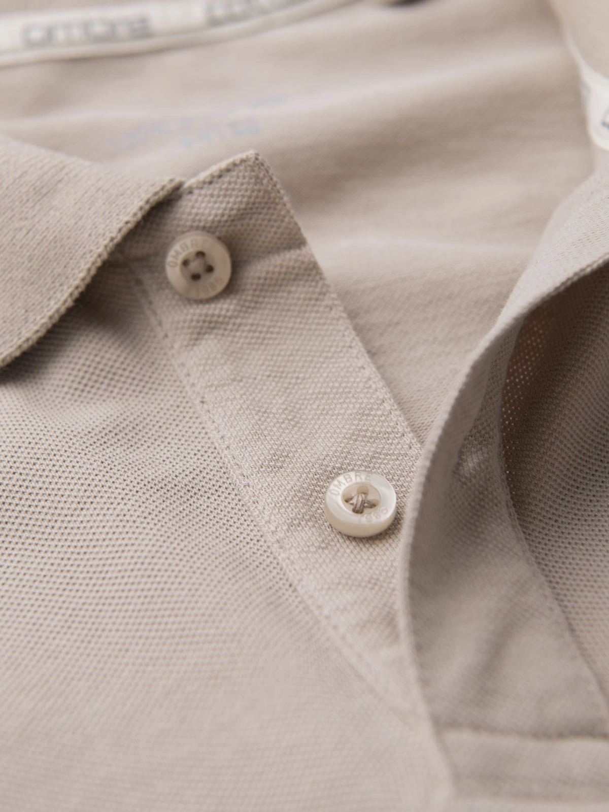 Opinie o Jednokolorowa koszulka męska polo BASIC z dzianiny pique - ciemnobeżowa V5 OM-POBS-0100
