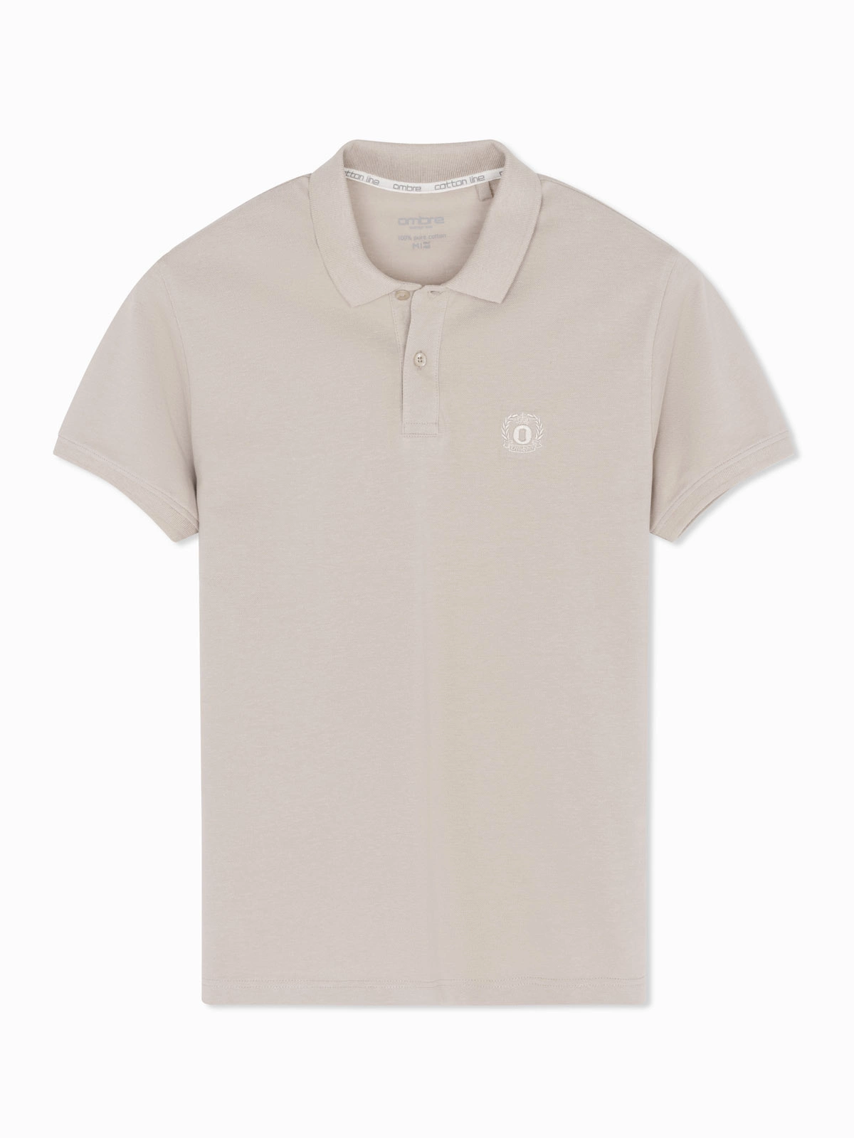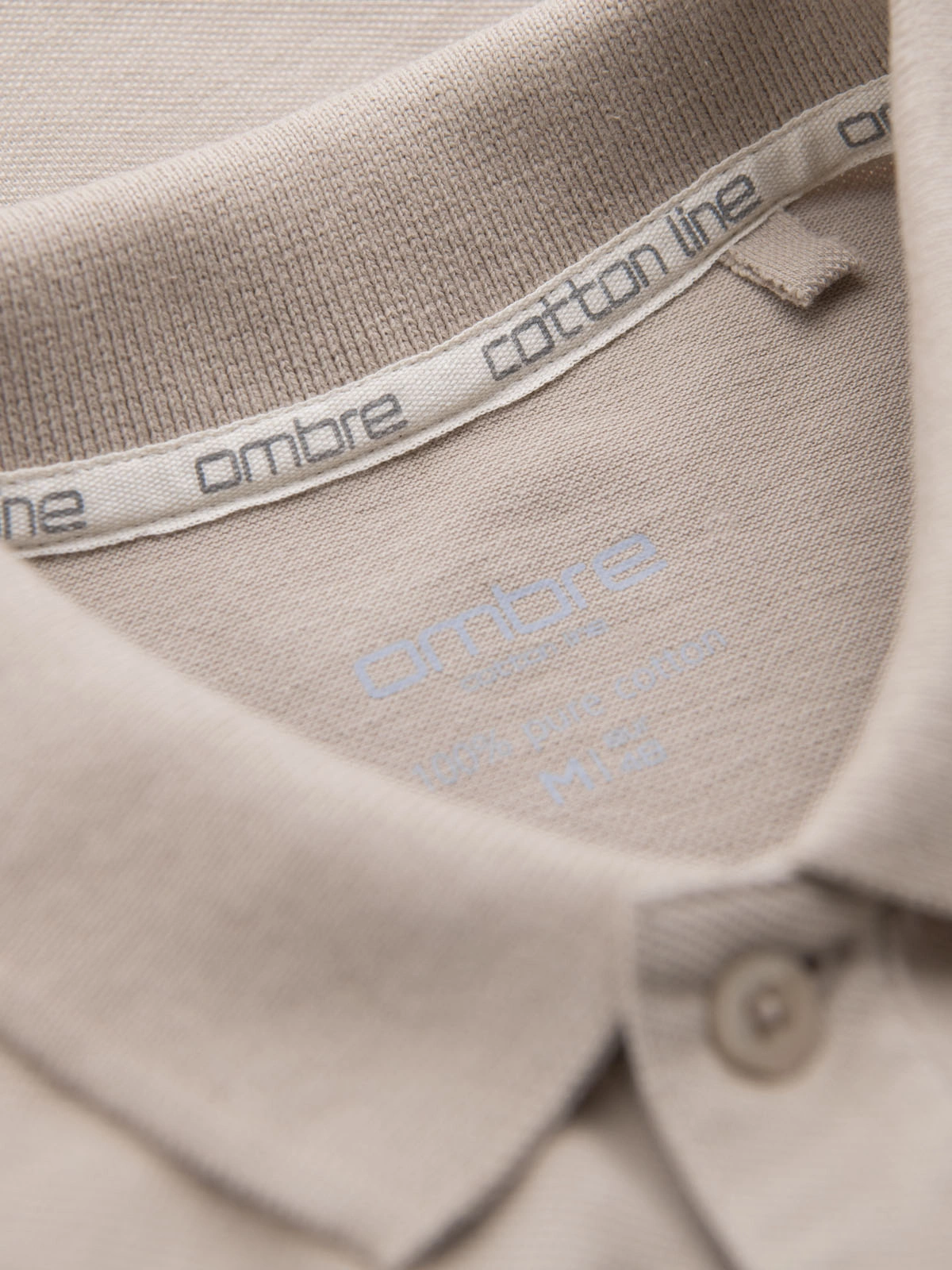 Jednokolorowa koszulka męska polo BASIC z dzianiny pique - ciemnobeżowa V5 OM-POBS-0100