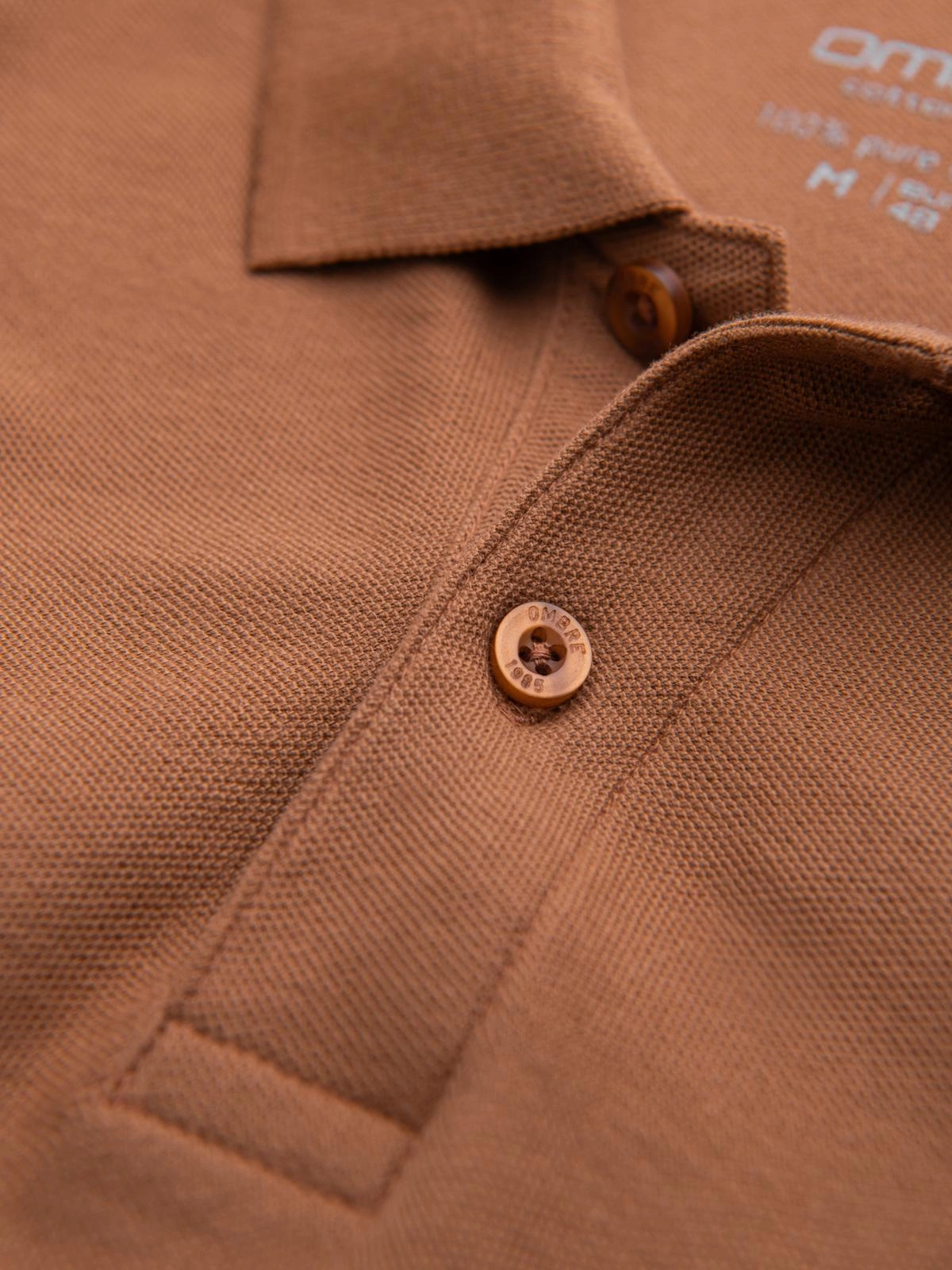 Męska koszulka polo jednokolorowa BASIC z dzianiny pique - brązowa V23 OM-POBS-0100