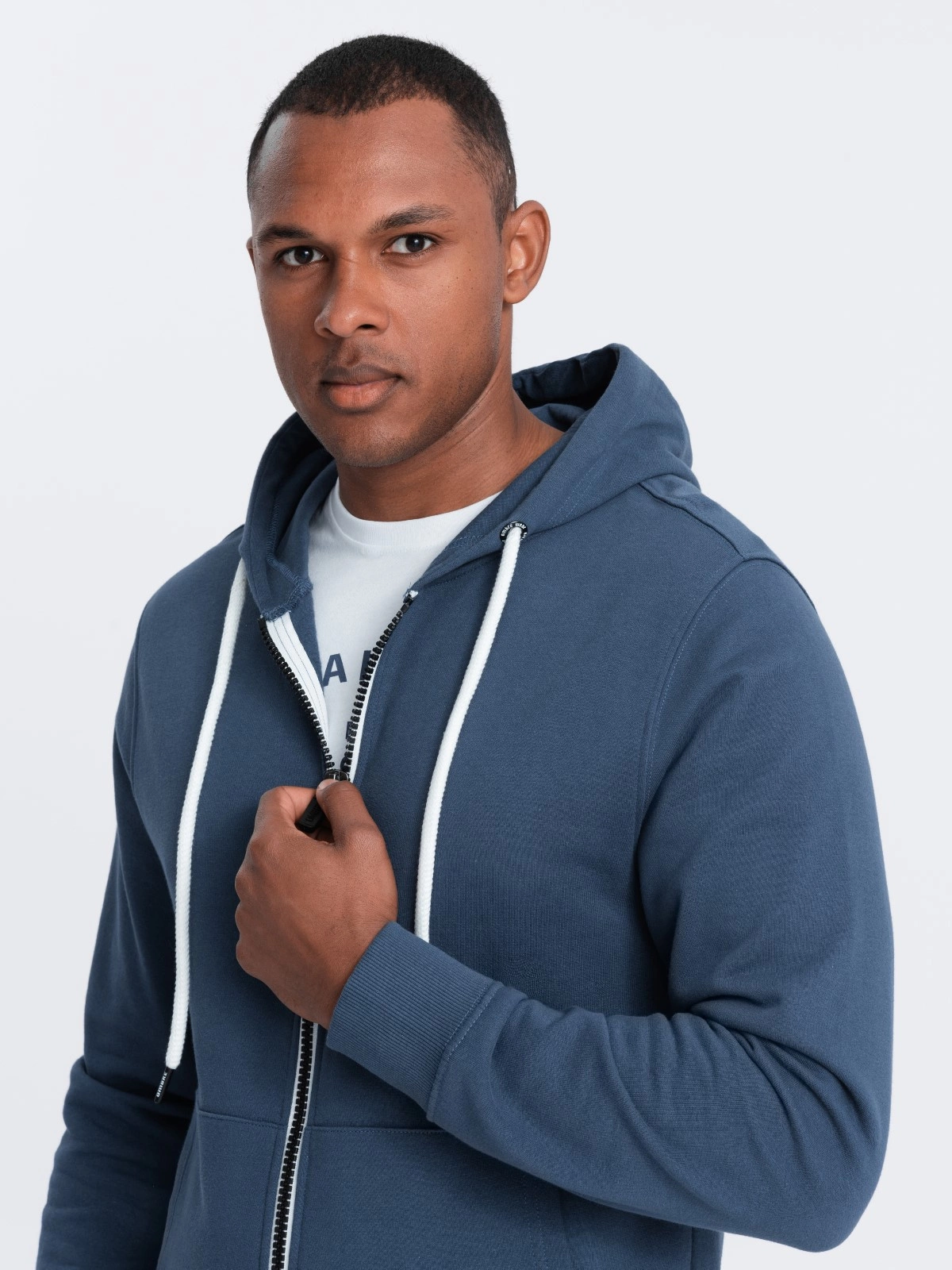 Męska bluza z kontrastowymi przeszyciami i kapturem – granatowa V2 OM-SSNZ-0250