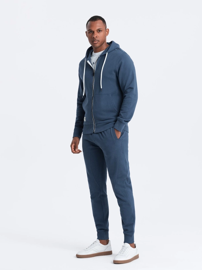 Bluza męska rozpinana z lampasami i wysoką stójką – granatowa V3 OM-SSZP-0224