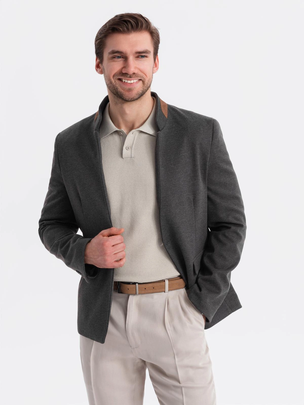 - męska marynarka zapinana na pojedynczy guzik