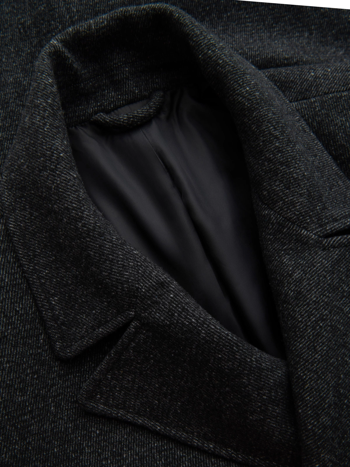 Opinie o Krótki dwurzędowy męski płaszcz z wełną – grafitowy V1 OM-COWC-0115
