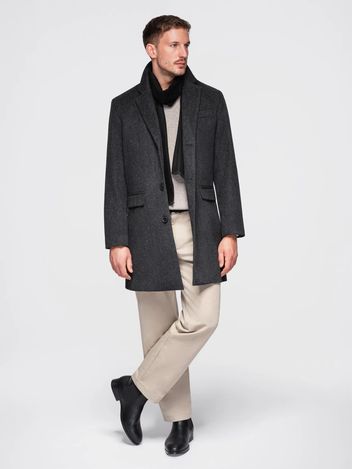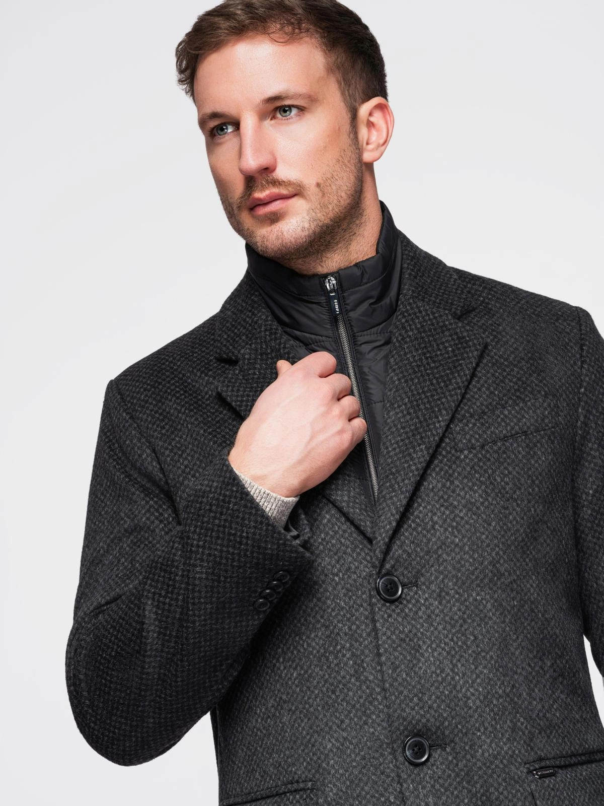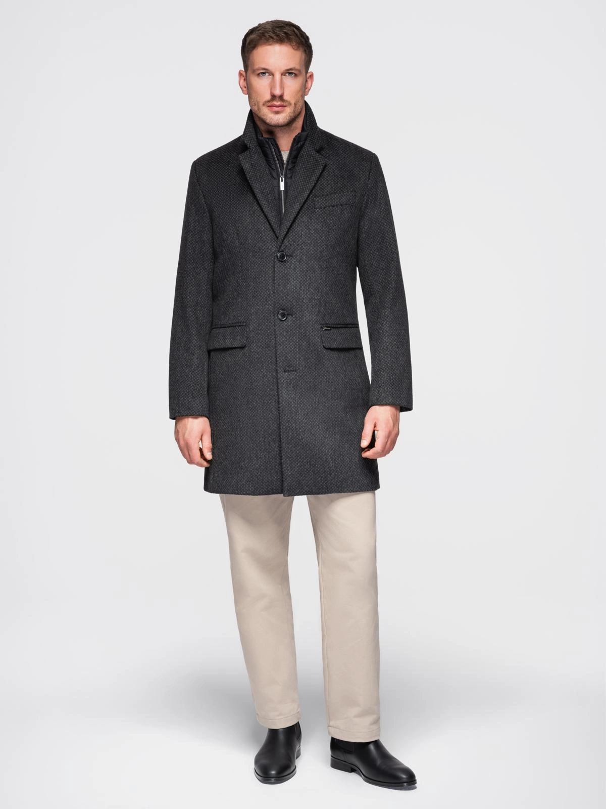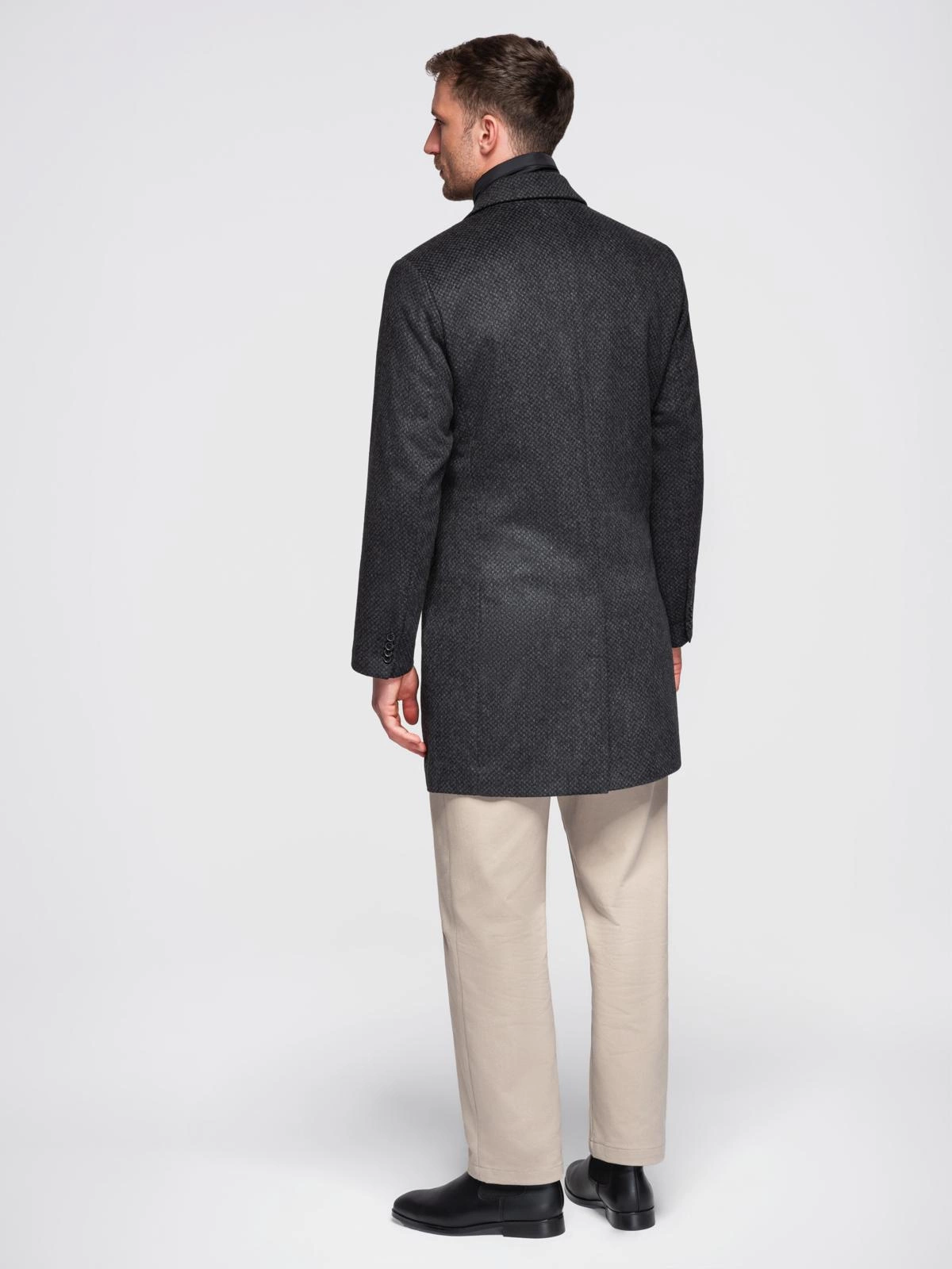 Długi rozpinany męski płaszcz z wełną – grafitowy V2 OM-COWC-0121