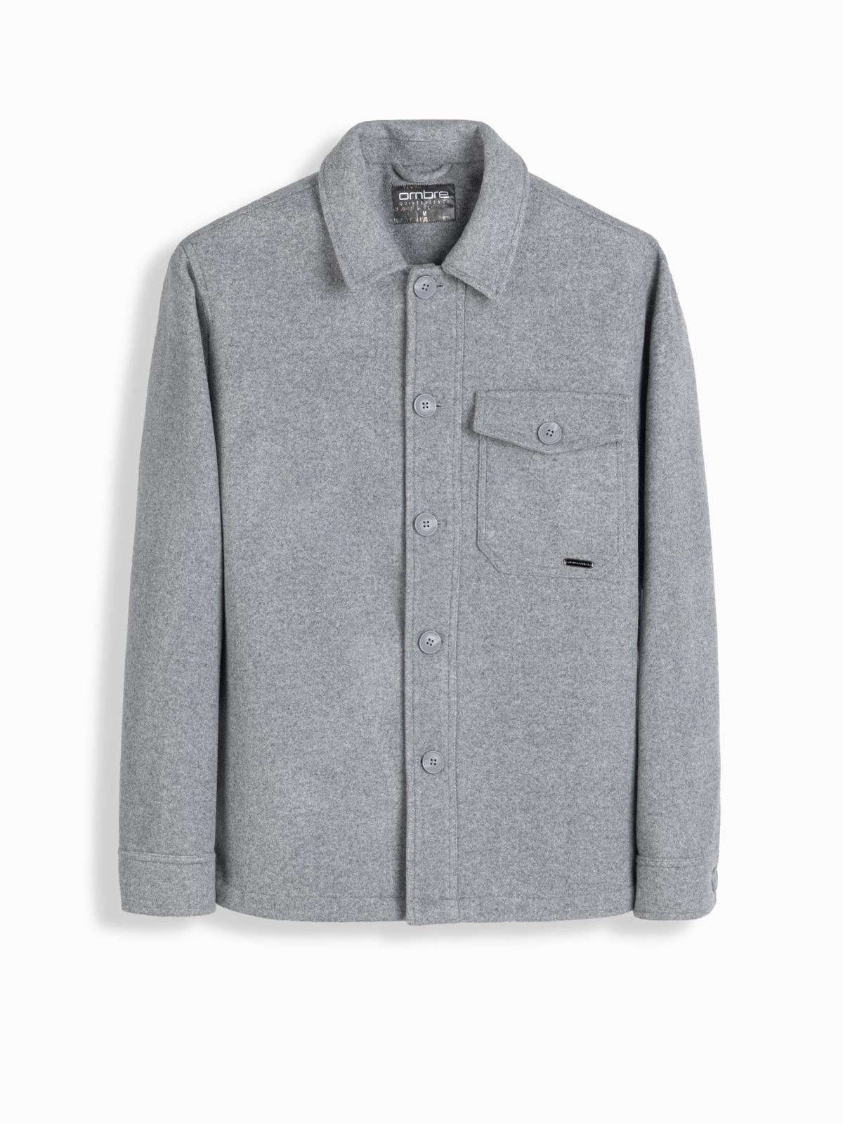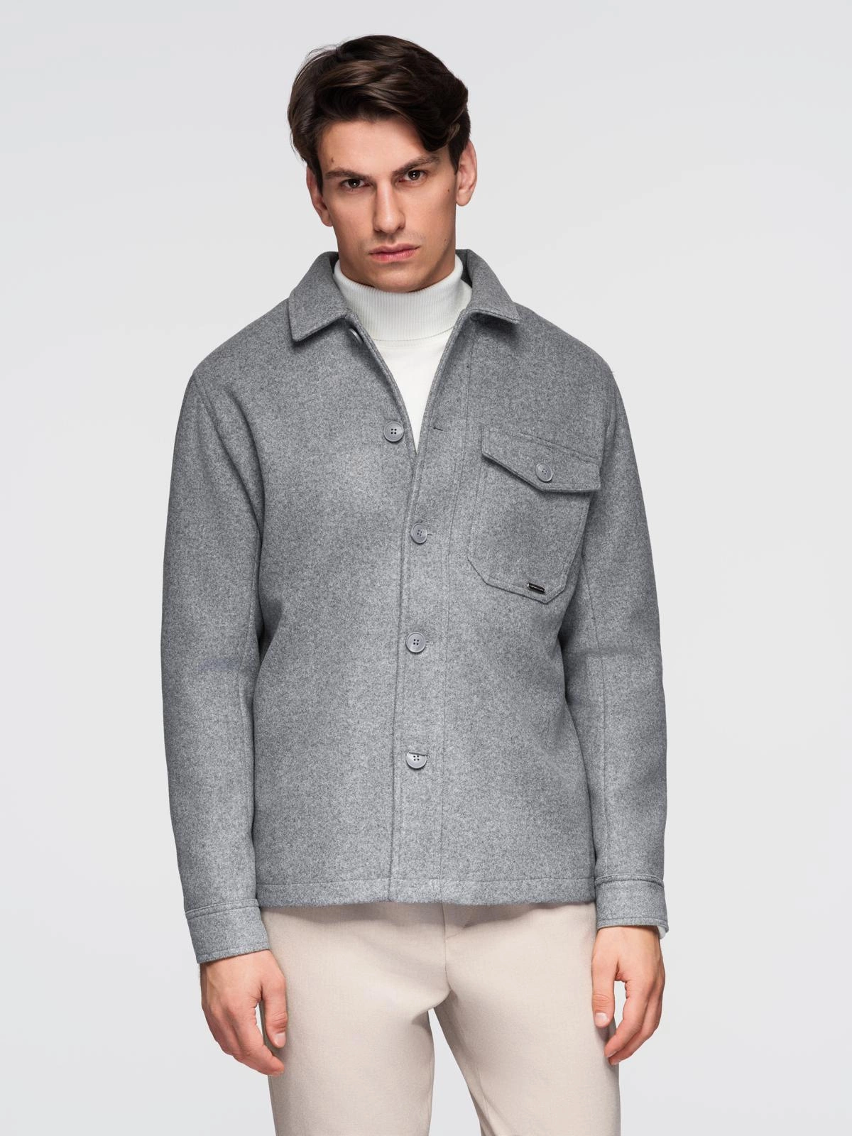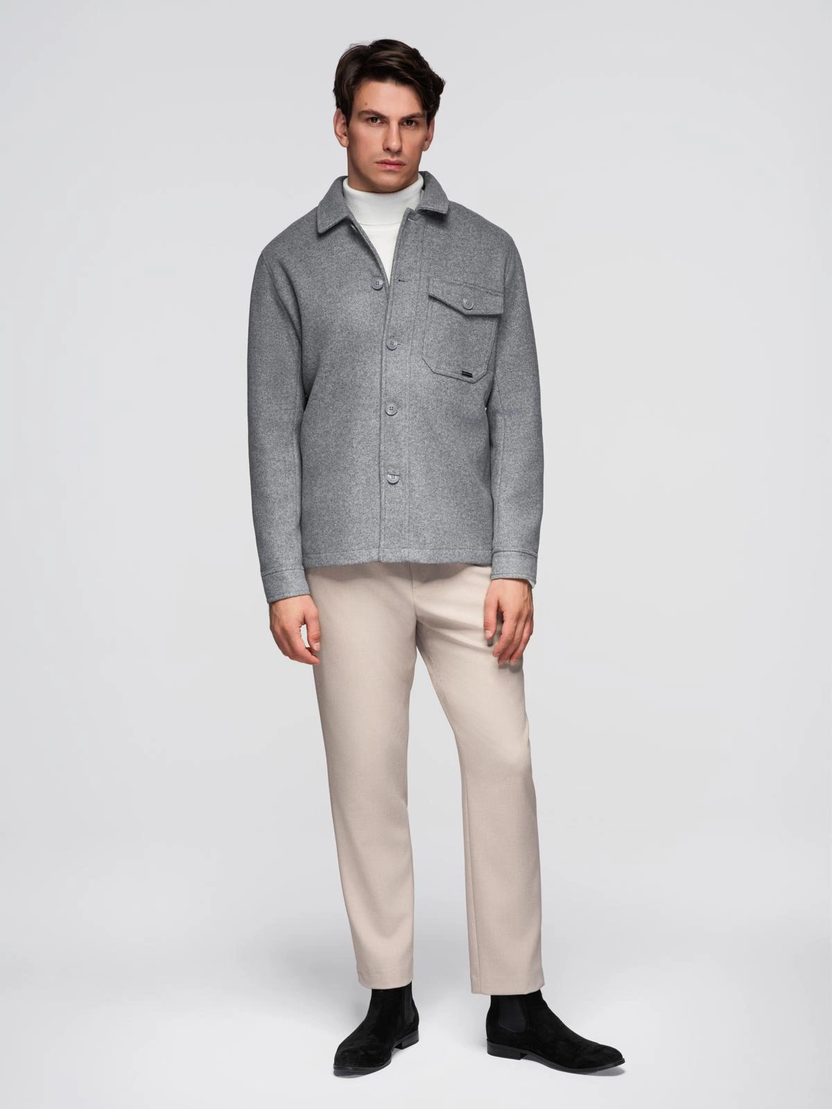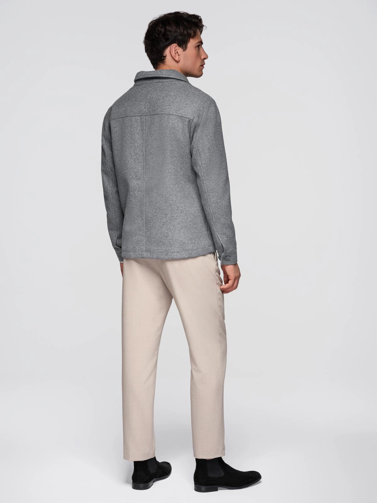 Lekka flauszowa kurtka męska z dodatkiem wiskozy – szara V2 OM-JANP-0199