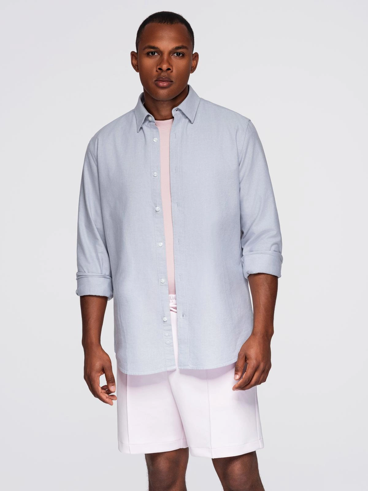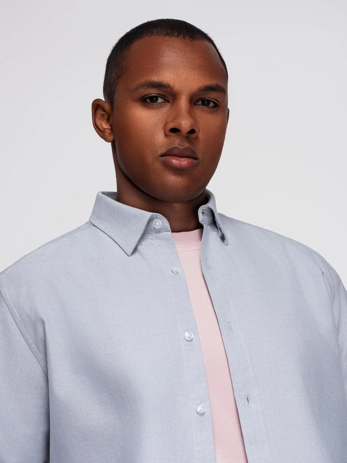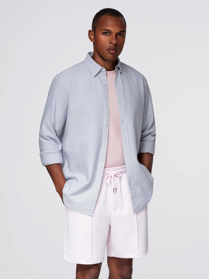 Elegancka męska koszula oxford z haftem – błękitna V1 OM-SHOS-0172