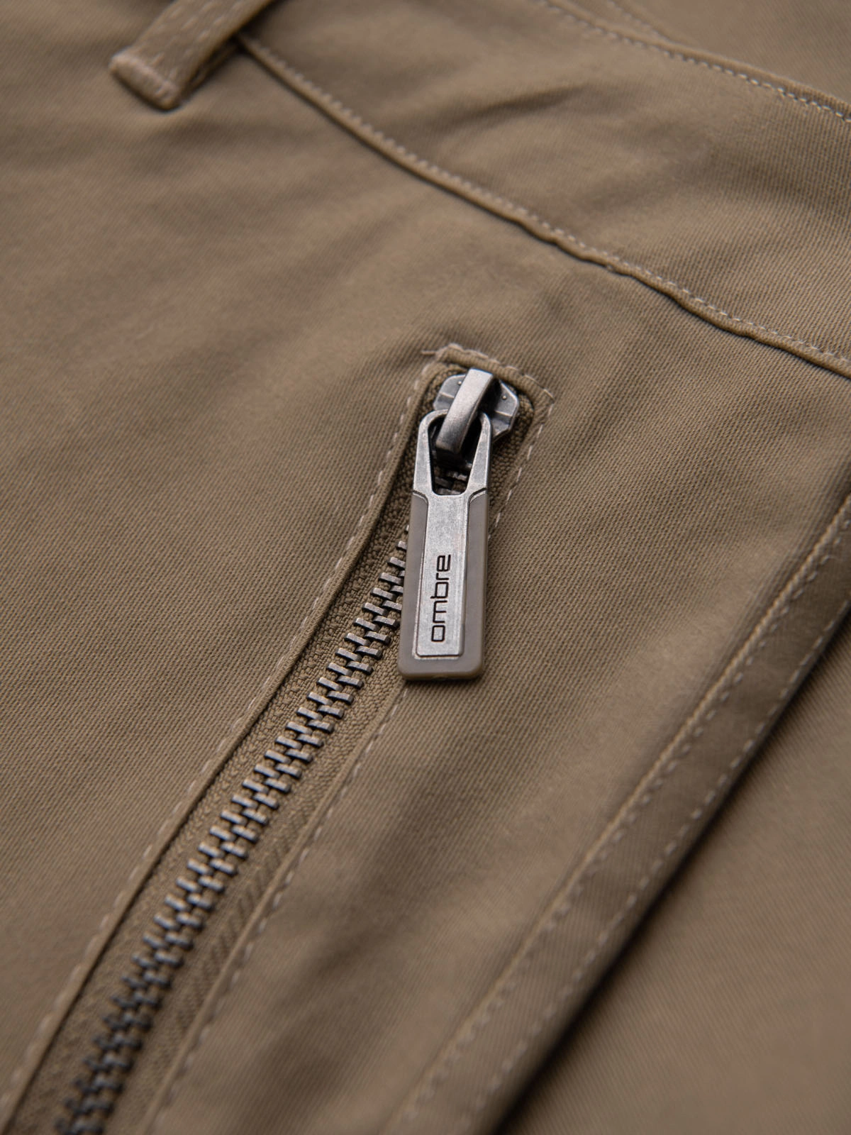 Spodnie męskie cargo STRAIGHT LEG z kieszeniami zapinanymi na zamek – khaki V3 OM-PACG-0204
