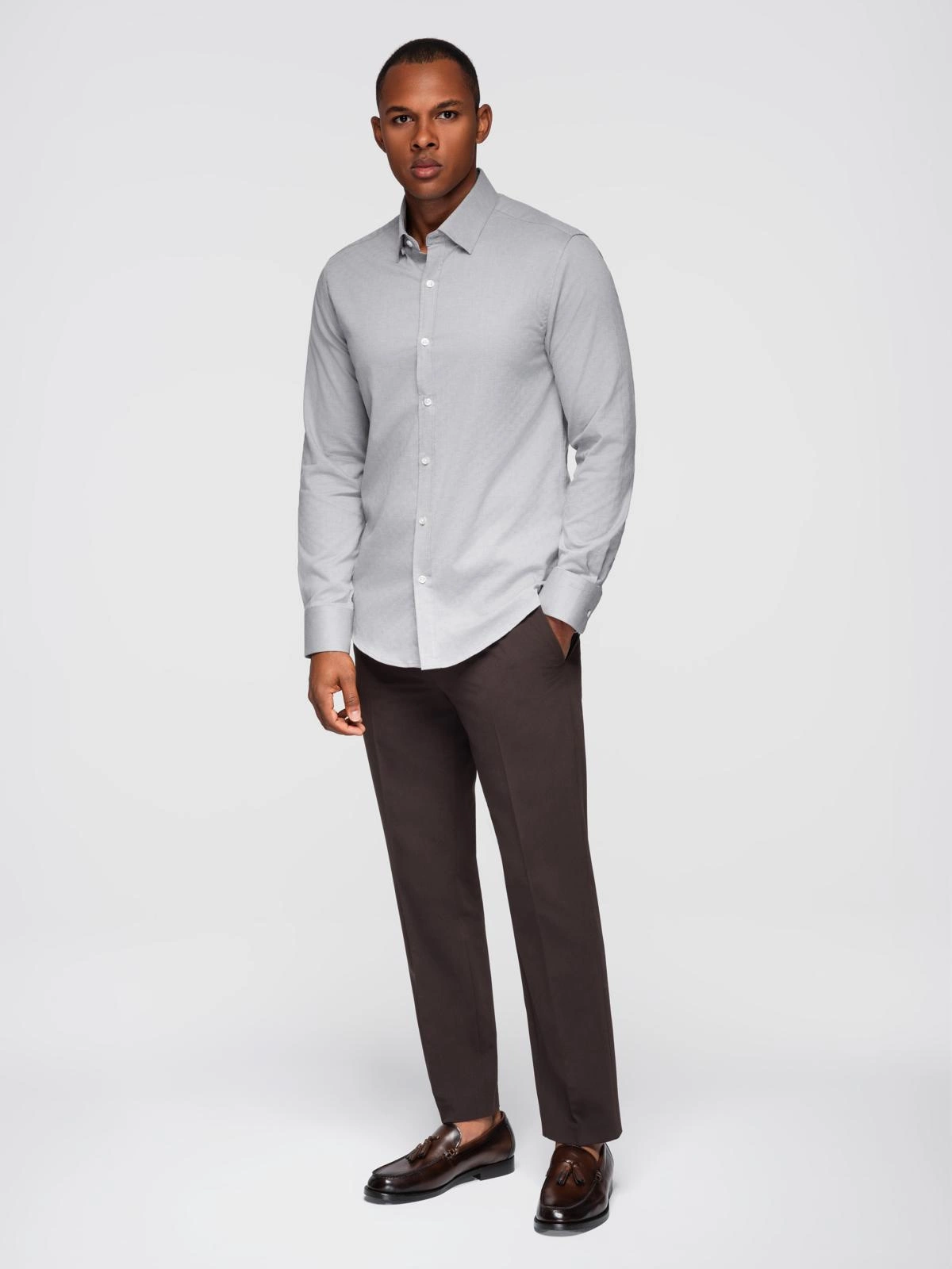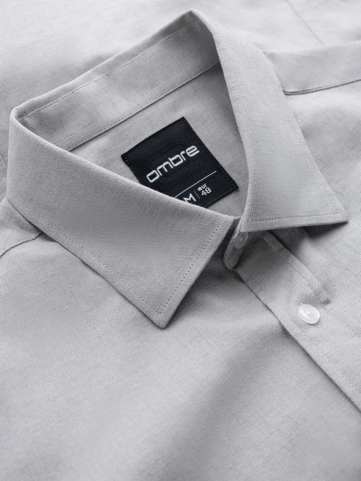Męska koszula SLIM FIT z ozdobnej tkaniny – szara V2 OM-SHCS-0175