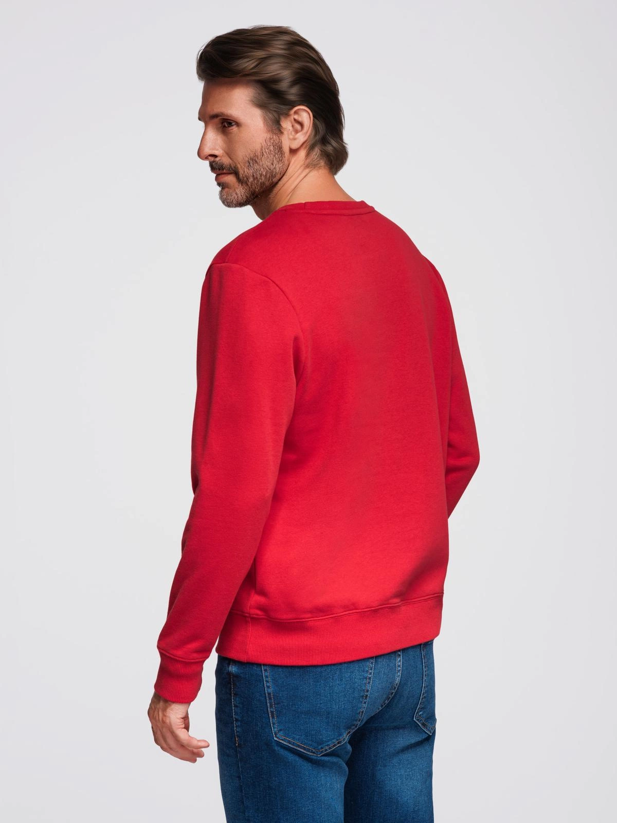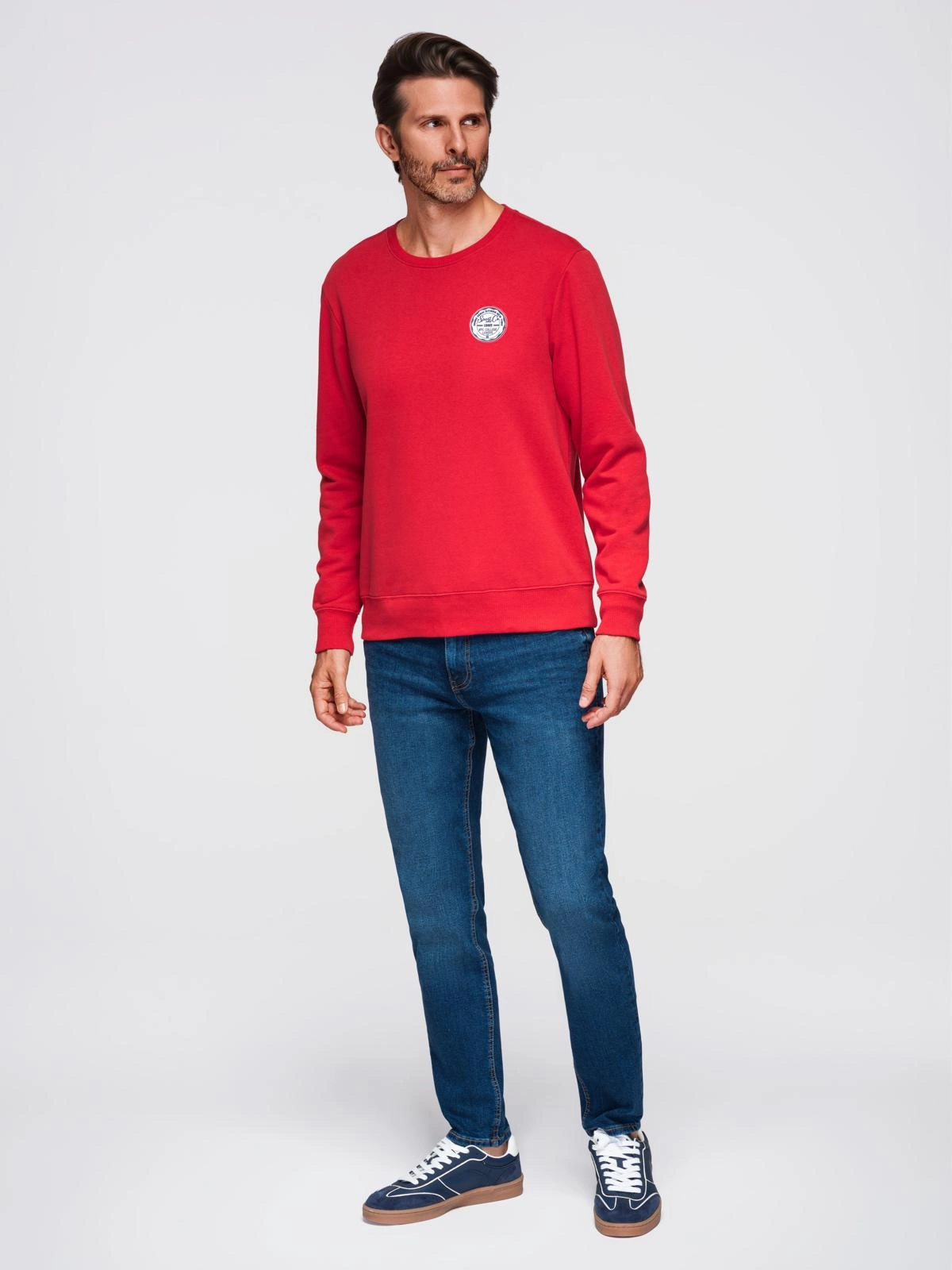 - Nierozpinana męska bluza dresowa z naszywką w stylu college – czerwona V1 OM-SSNZ-0134
