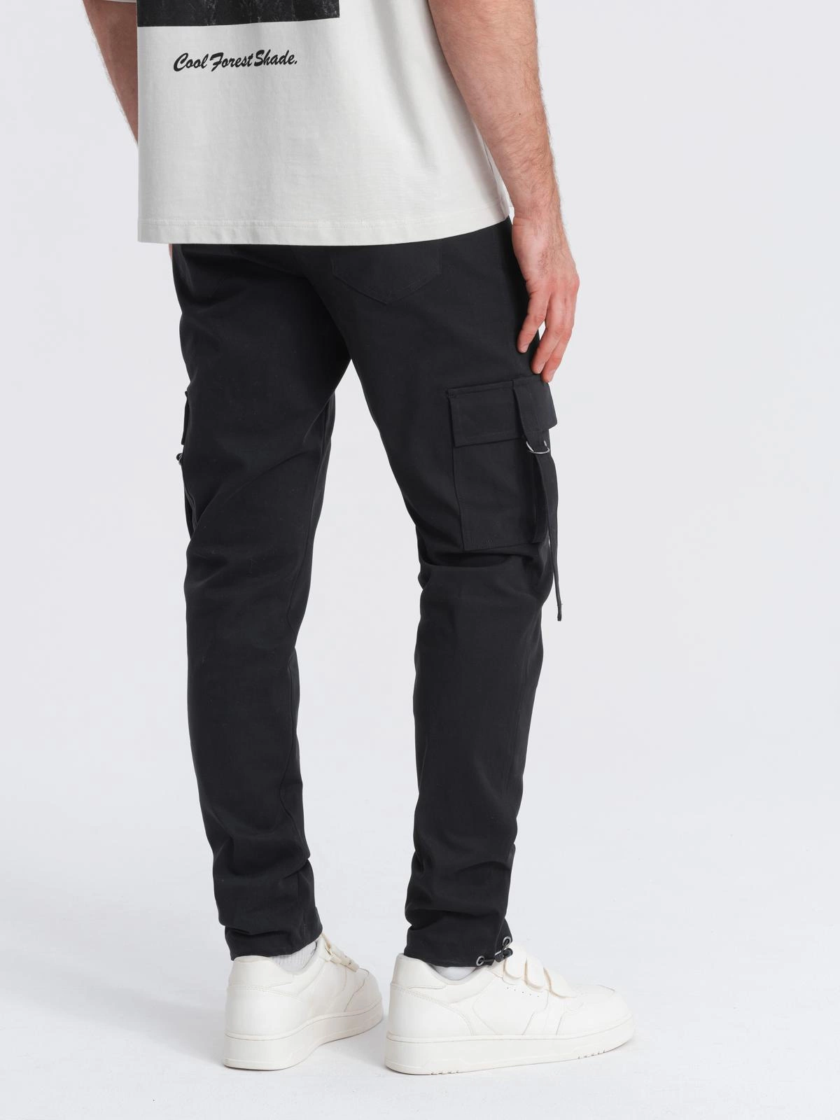 Spodnie męskie cargo STRAIGHT LEG z paskami na kieszeniach – czarne V4 OM-PACG-0197