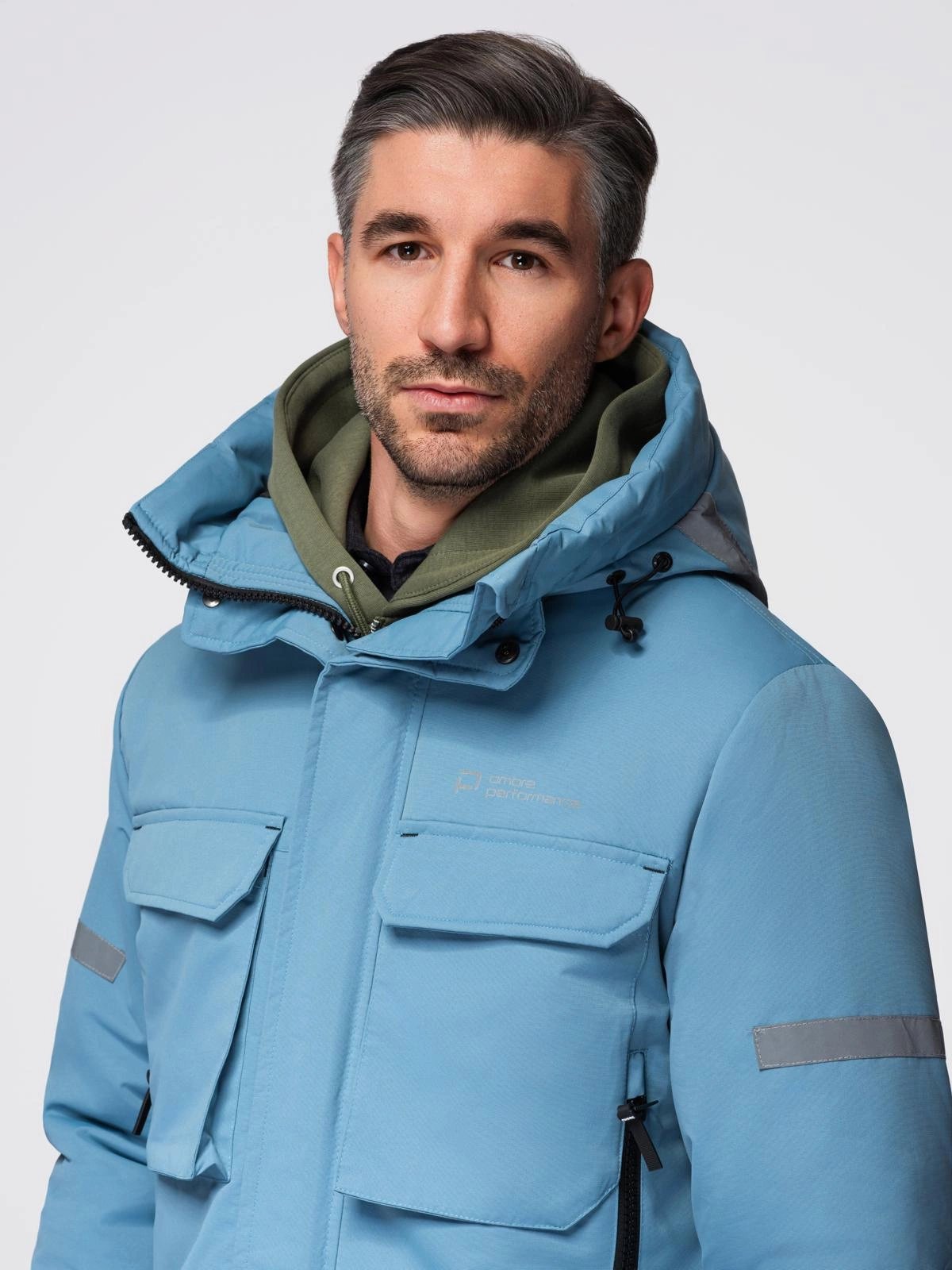 Opinie o Ocieplana długa męska kurtka z odblaskowymi elementami – niebieska V4 OM-JALJ-0169