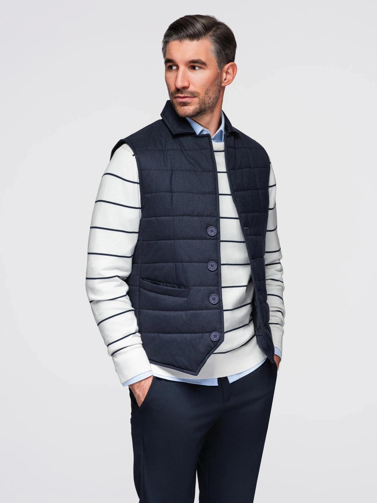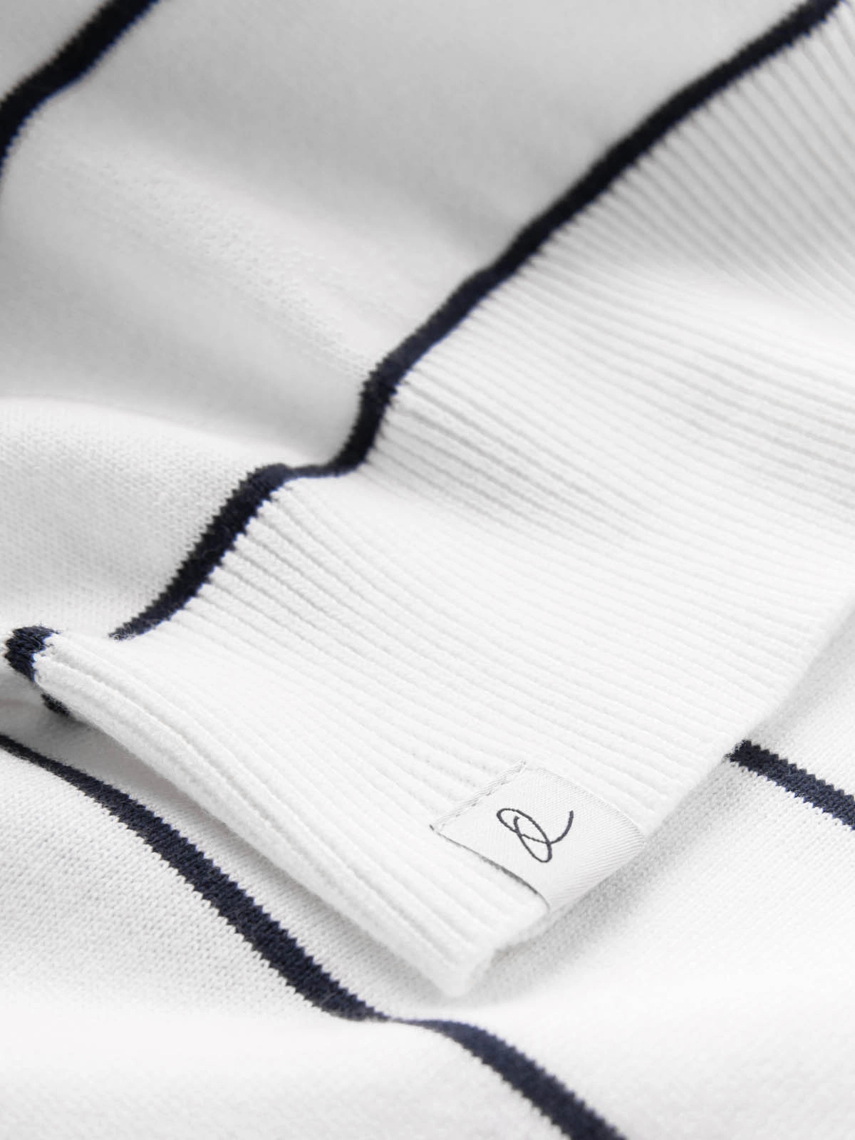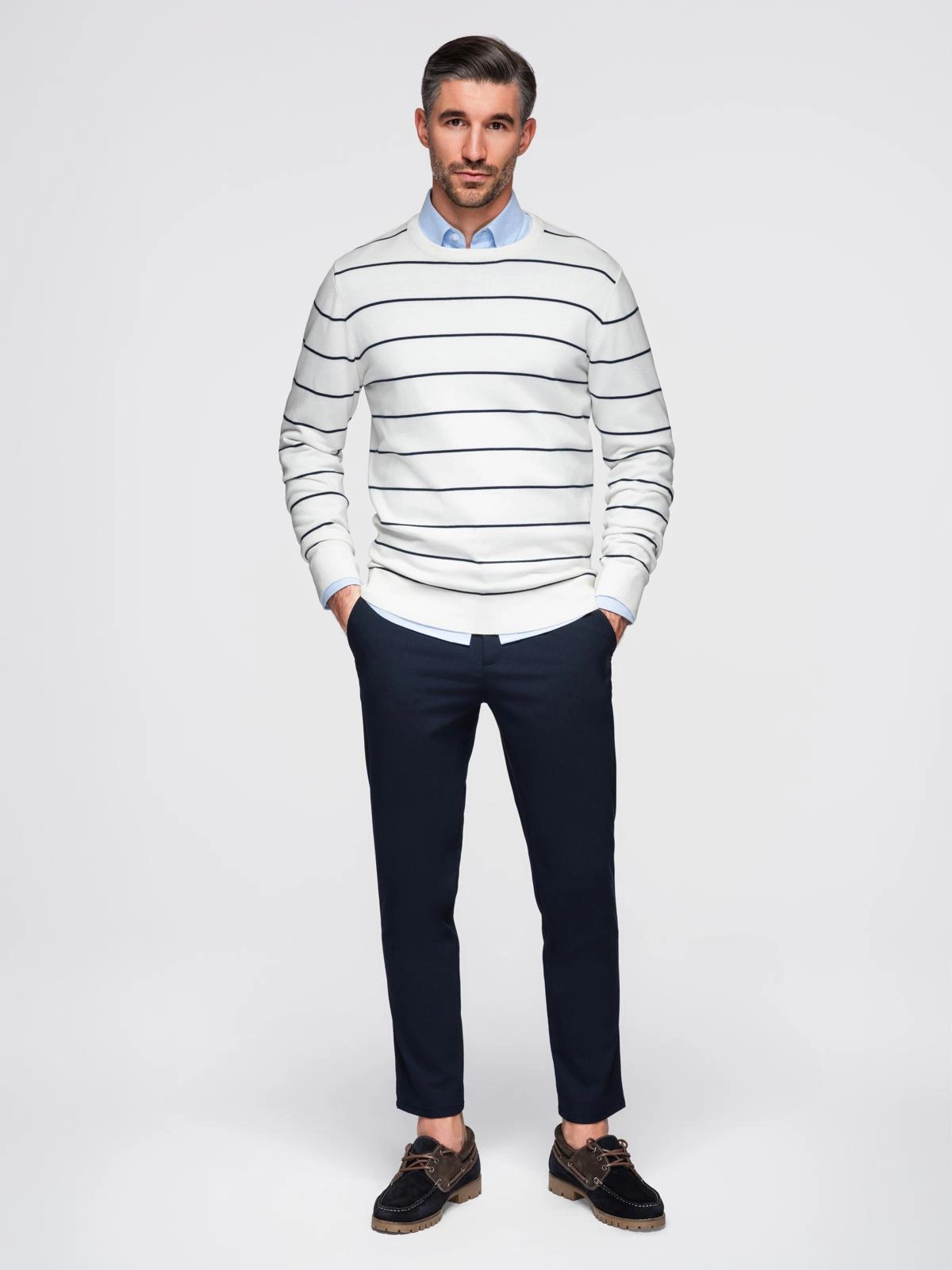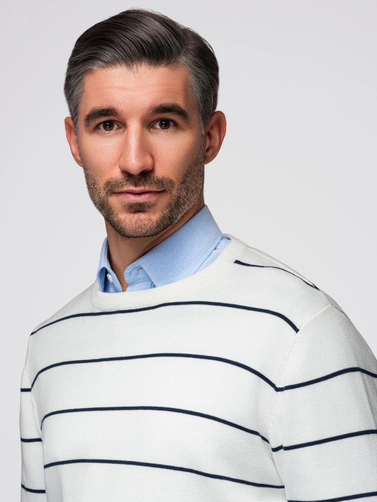 Opinie o Męski casualowy sweter w poziome paski – kremowy V2 OM-SWSW-0143