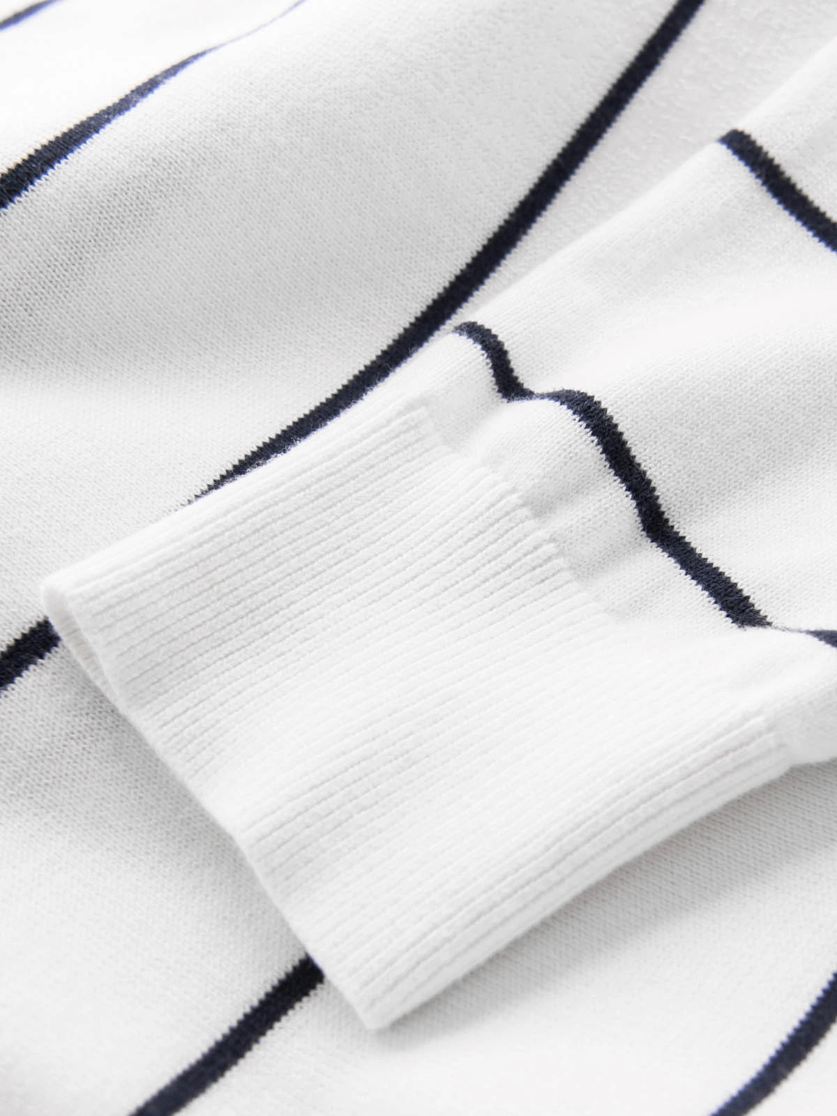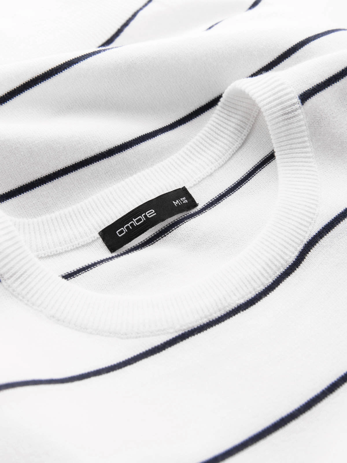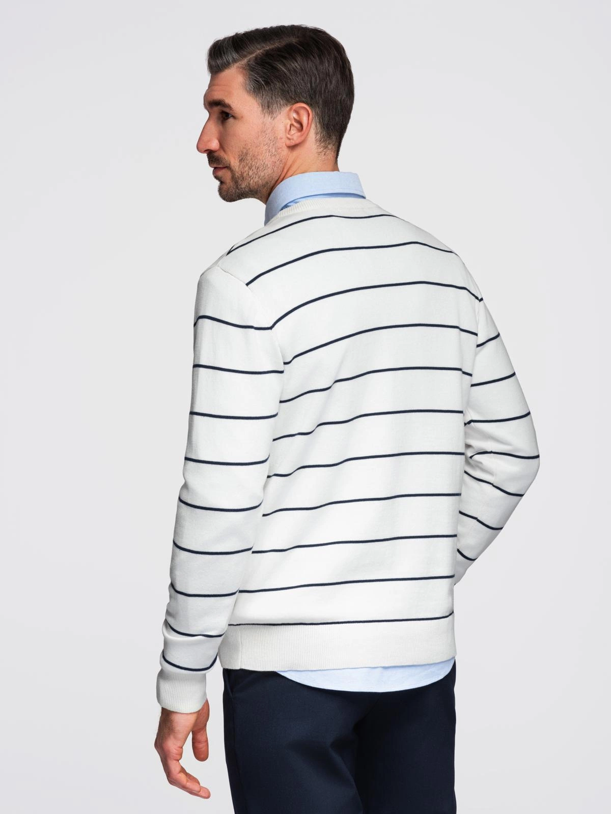 Męski casualowy sweter w poziome paski – kremowy V2 OM-SWSW-0143