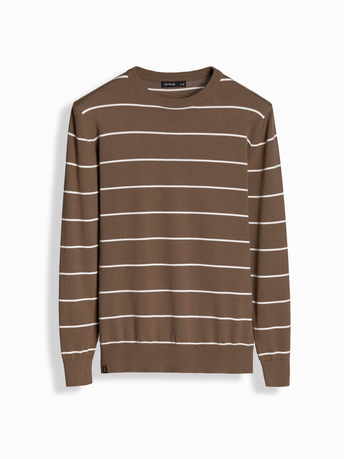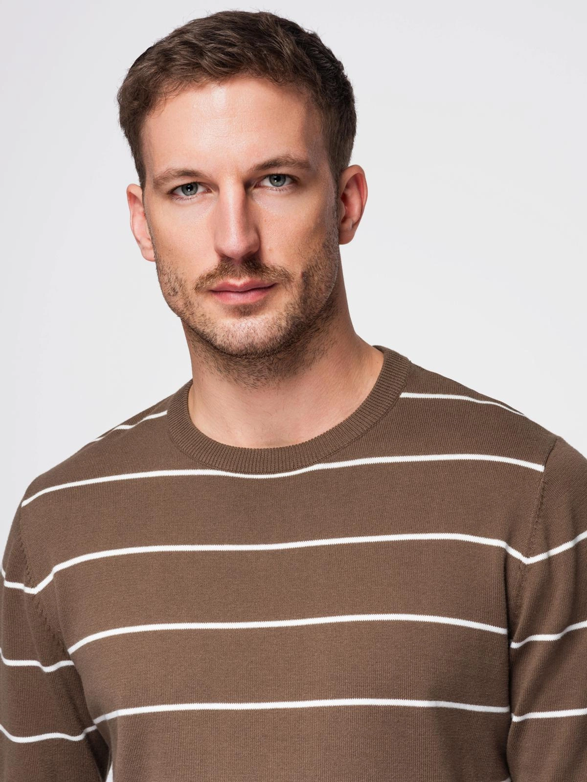 Męski sweter casualowy w poziome paski – brązowy V3 OM-SWSW-0143