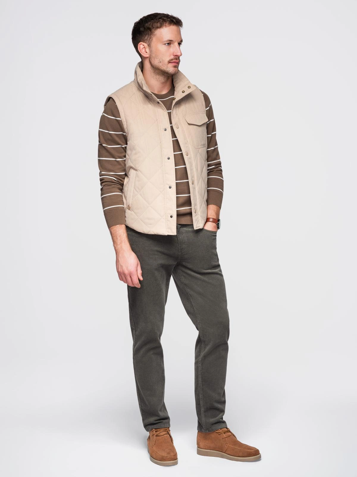 Opinie o Męski sweter casualowy w poziome paski – brązowy V3 OM-SWSW-0143