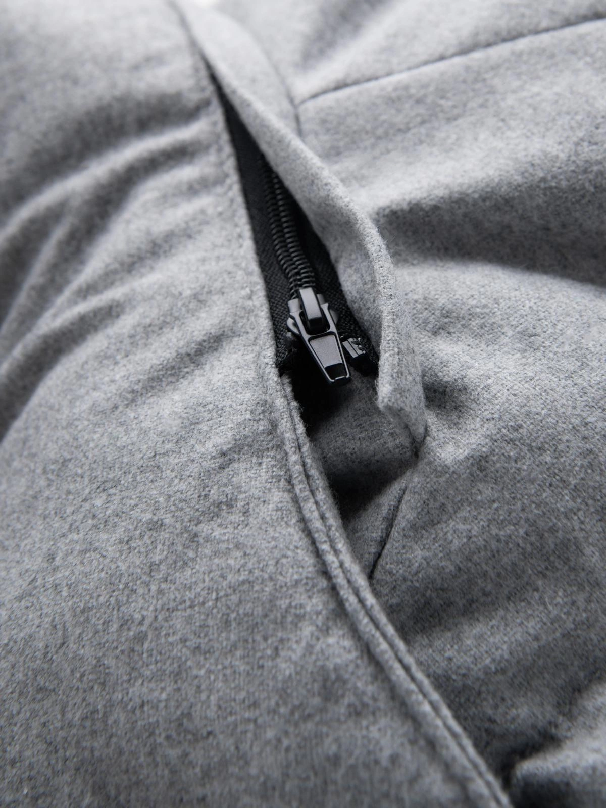 - strukturalna tkanina z widocznymi włóknami wełny oraz wewnętrzną wiatroszczelną powłoką