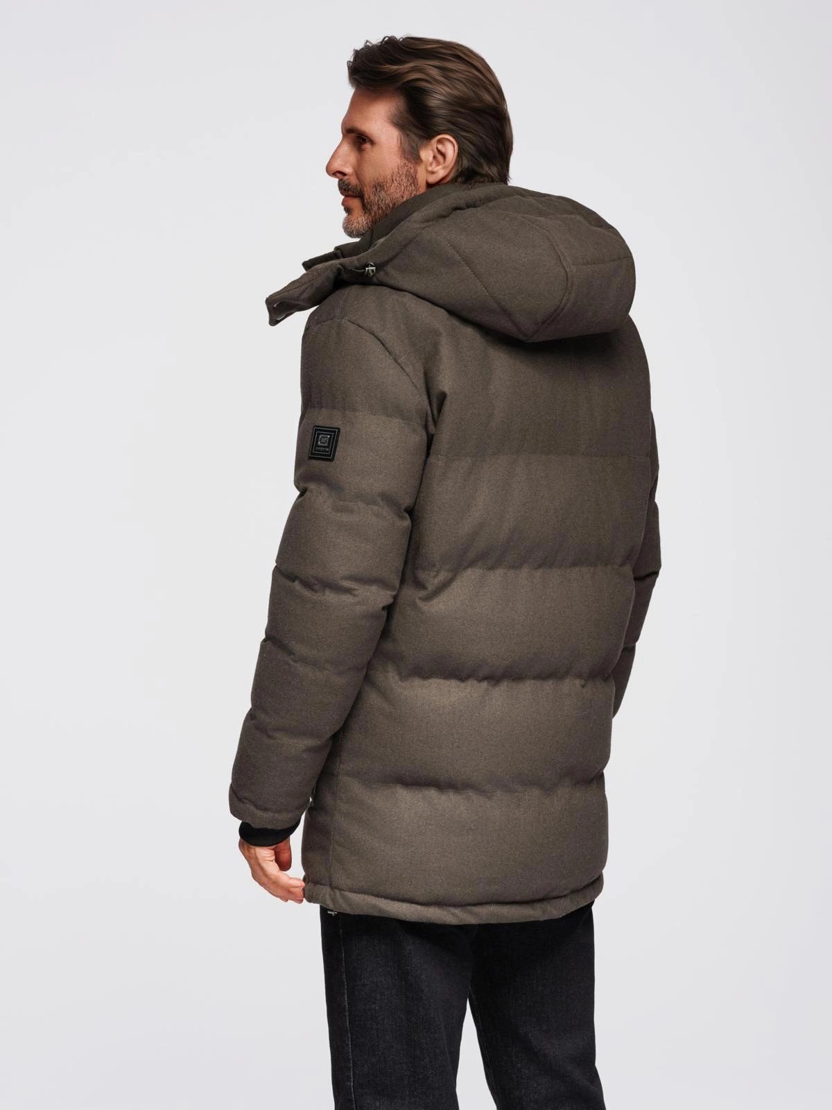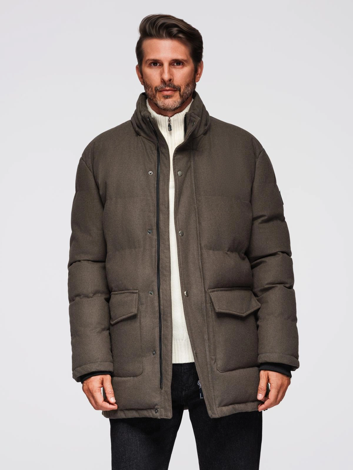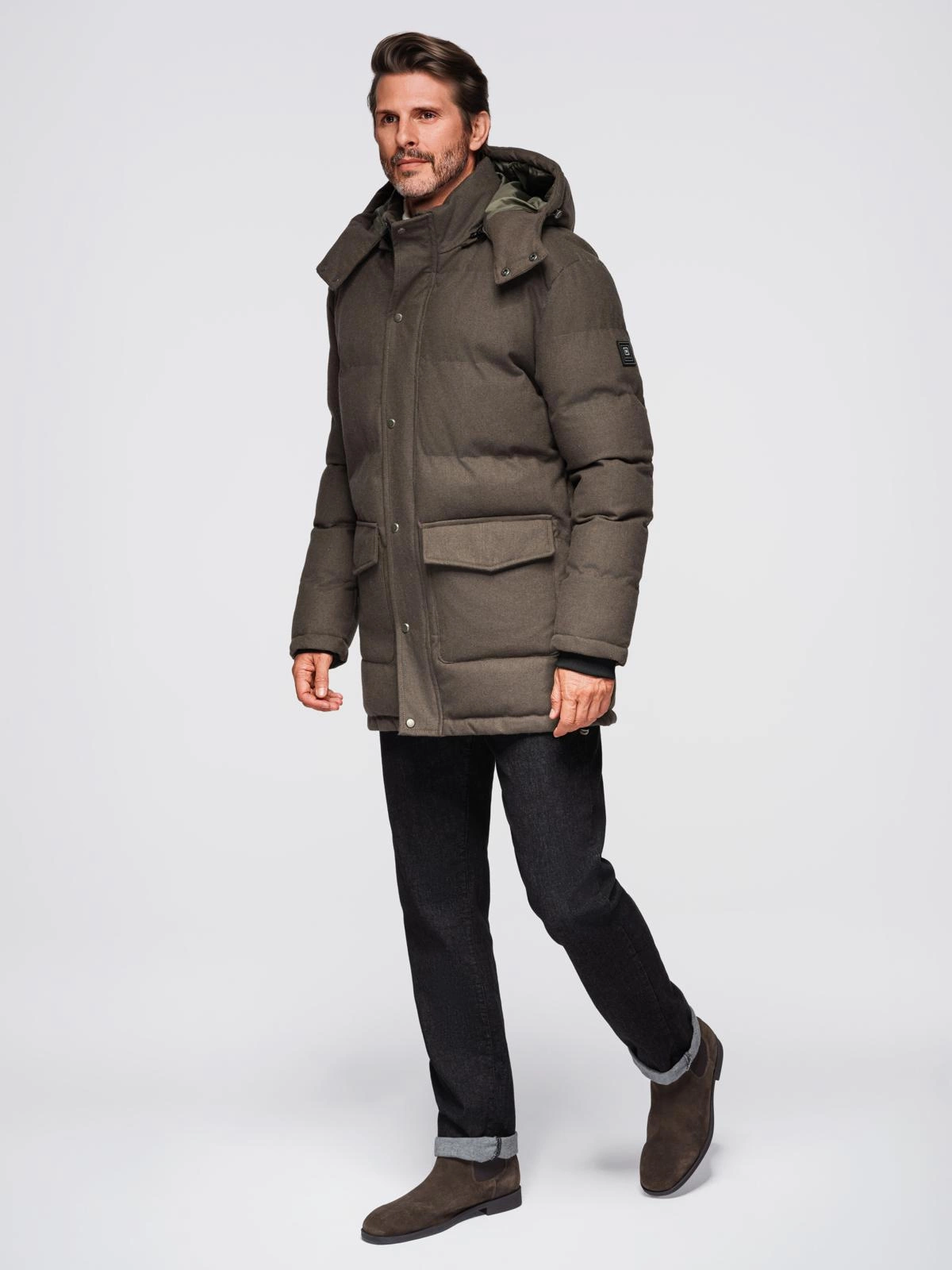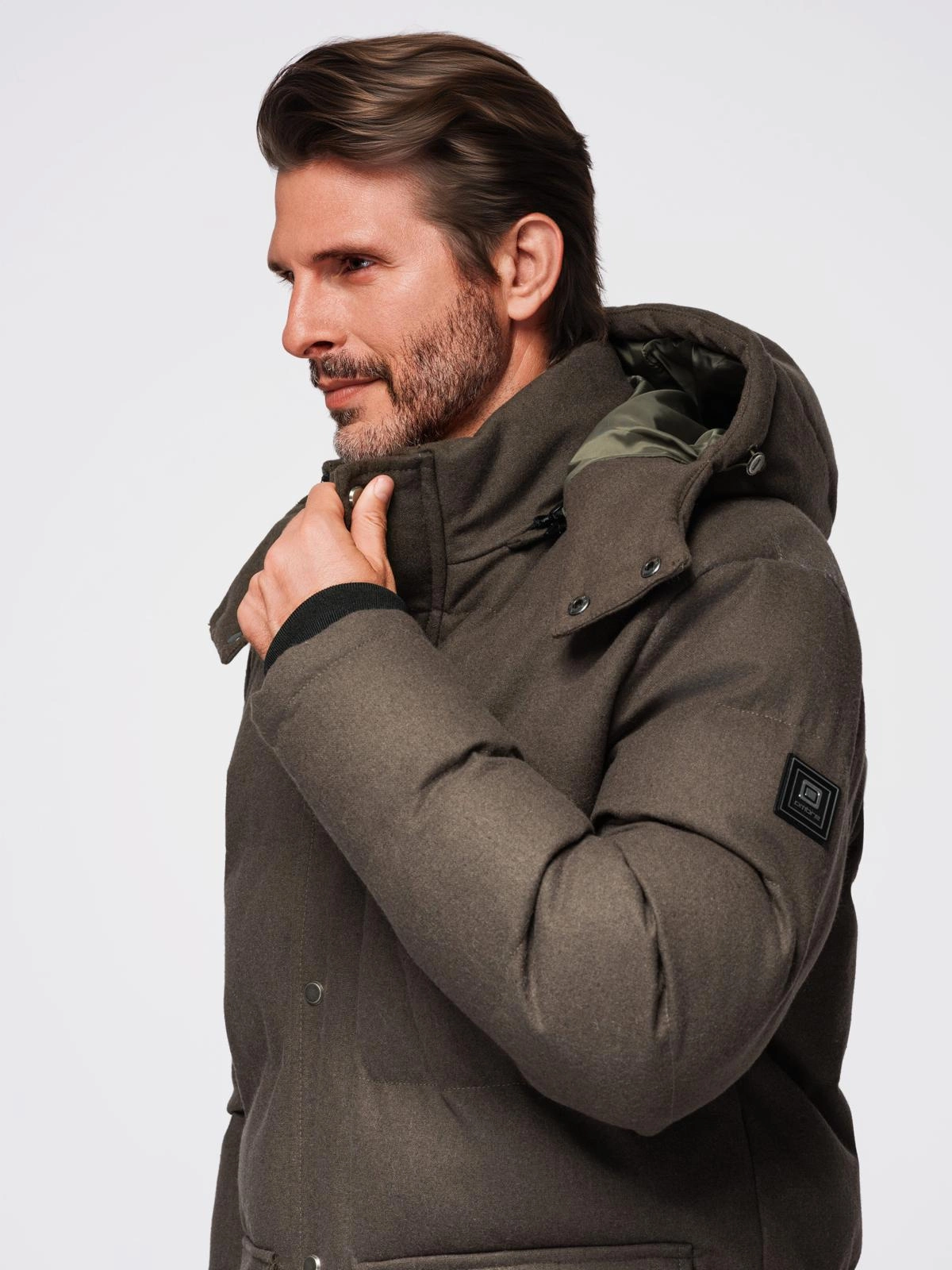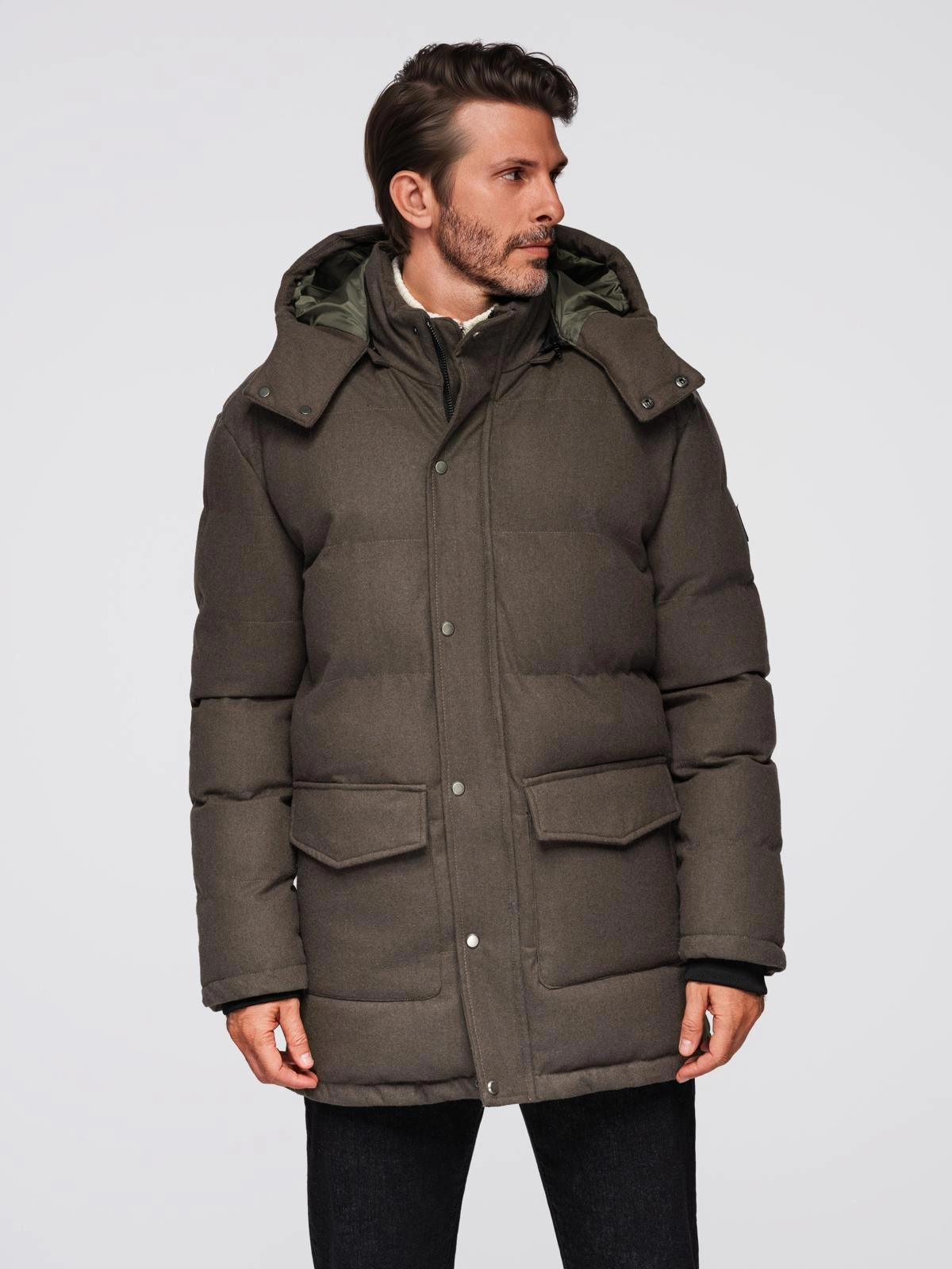 - Długa ciepła męska kurtka typu parka z wełną – ciemnooliwkowy melanż V4 OM-JALJ-0217