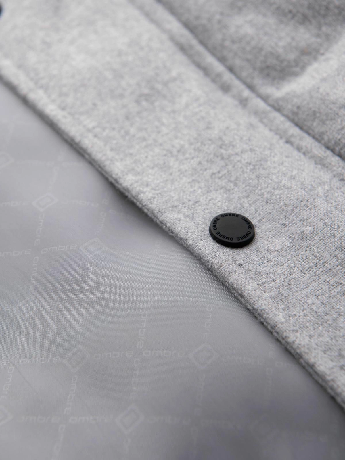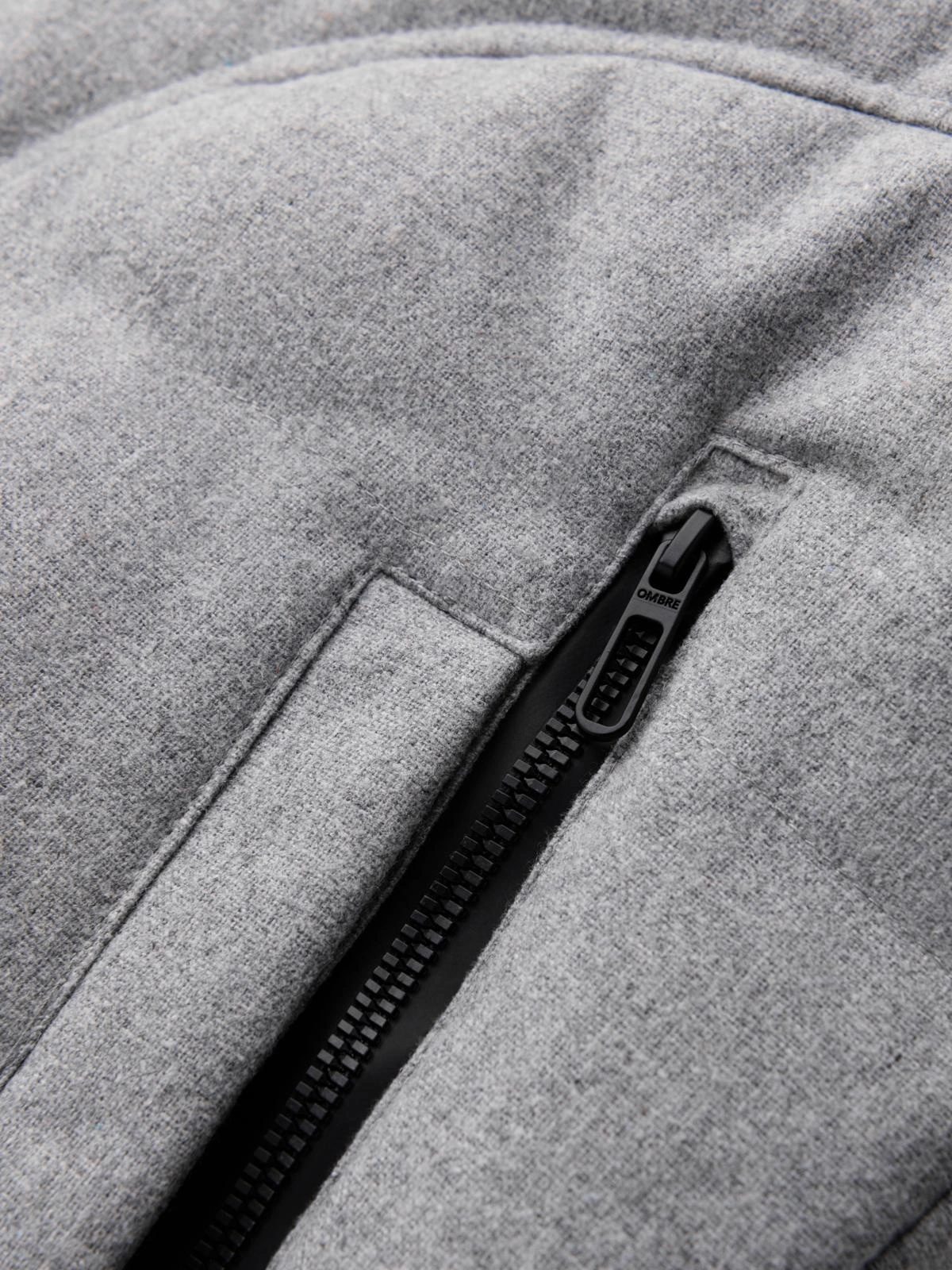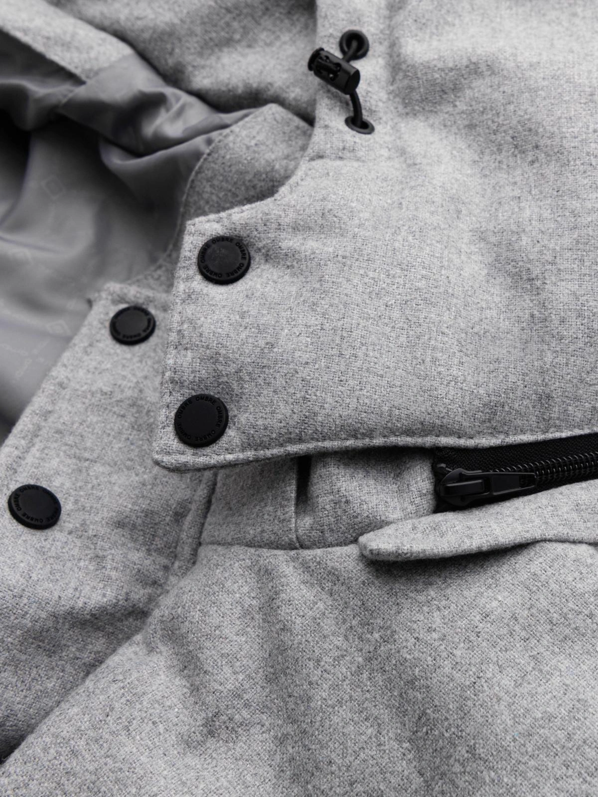 Męska casualowa kurtka puffer z wełną – jasnoszary melanż V3 OM-JAHP-0203