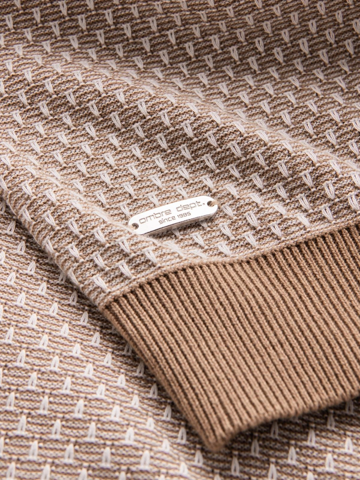 Sweter męski dzianinowy RELAXED FIT we wzory – jasnobrązowy V3 OM-SWSW-0111