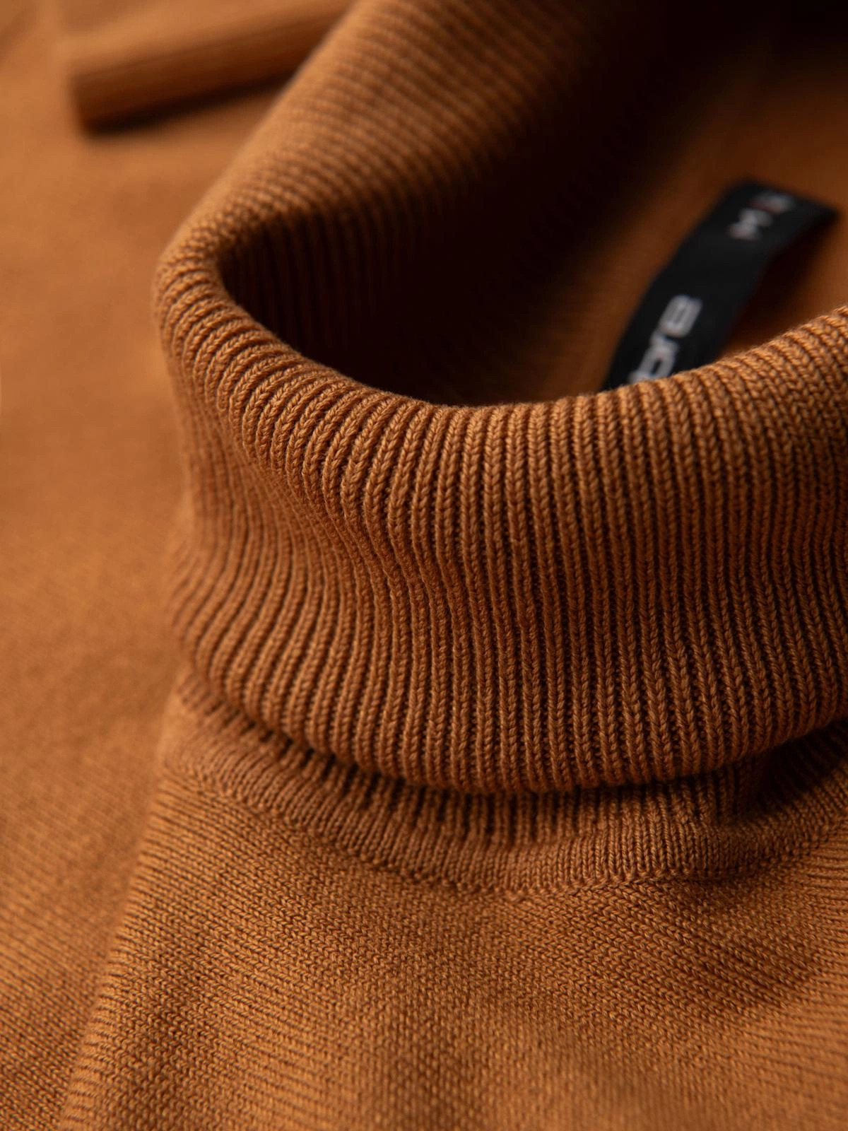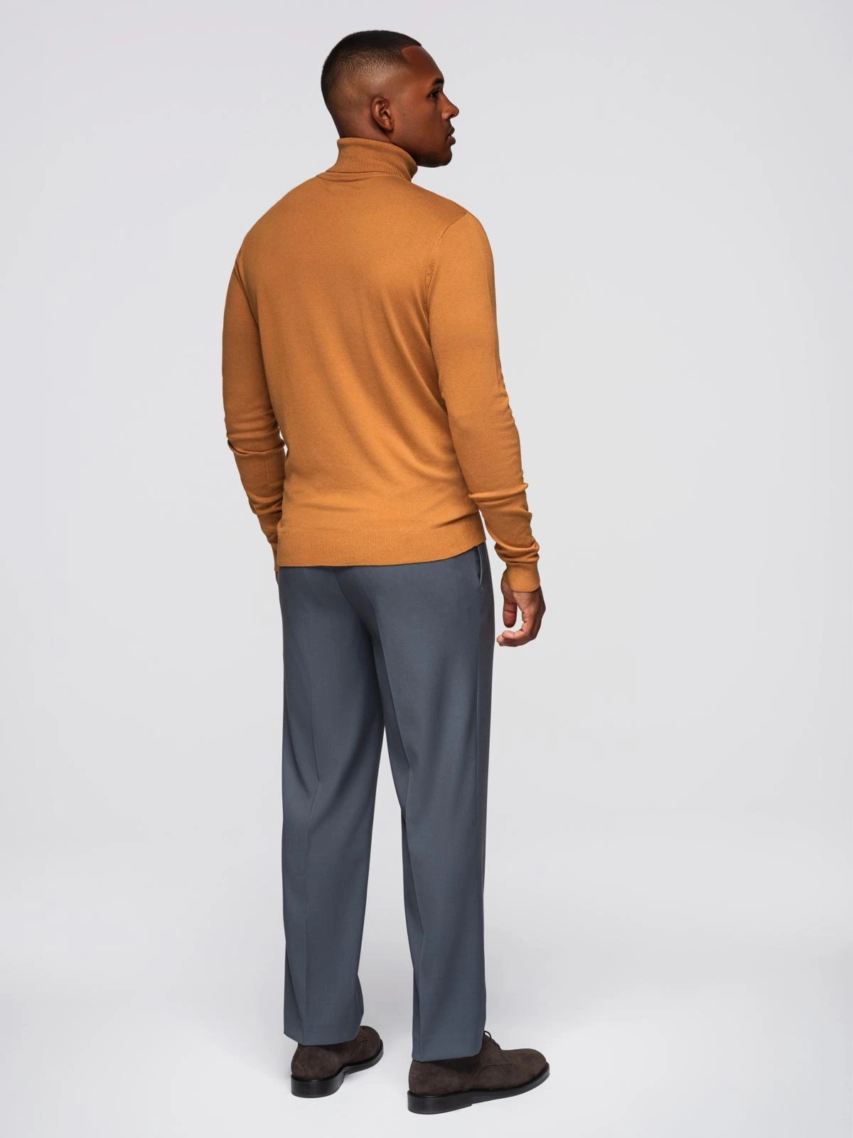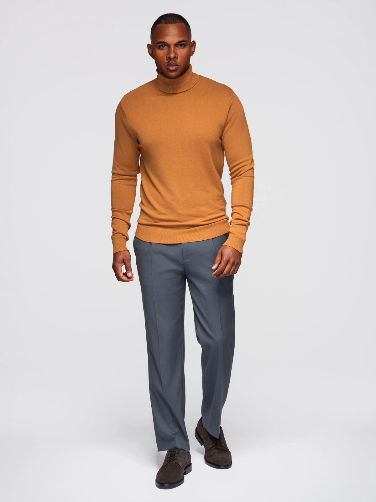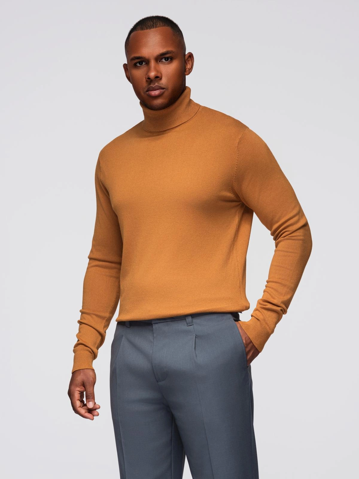 - Dzianinowy męski jednokolorowy golf z wiskozą – camel V8 OM-SWTN-0101
