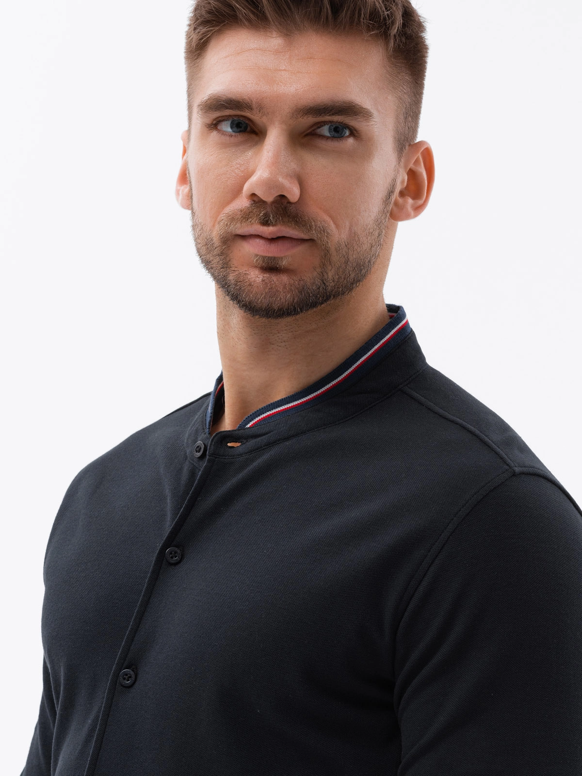 Opinie o Bawełniana koszula męska SLIM FIT ze stójką w kolorowe paski – czarna V4 OM-SHCS-0178