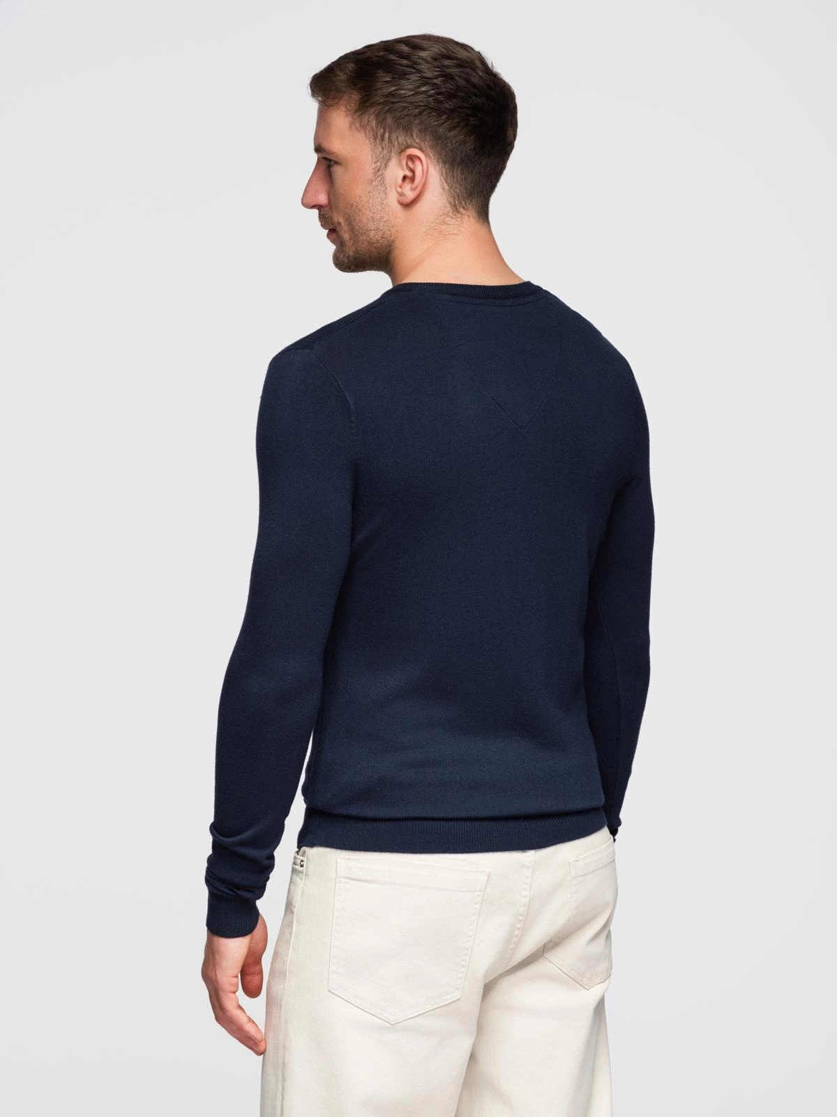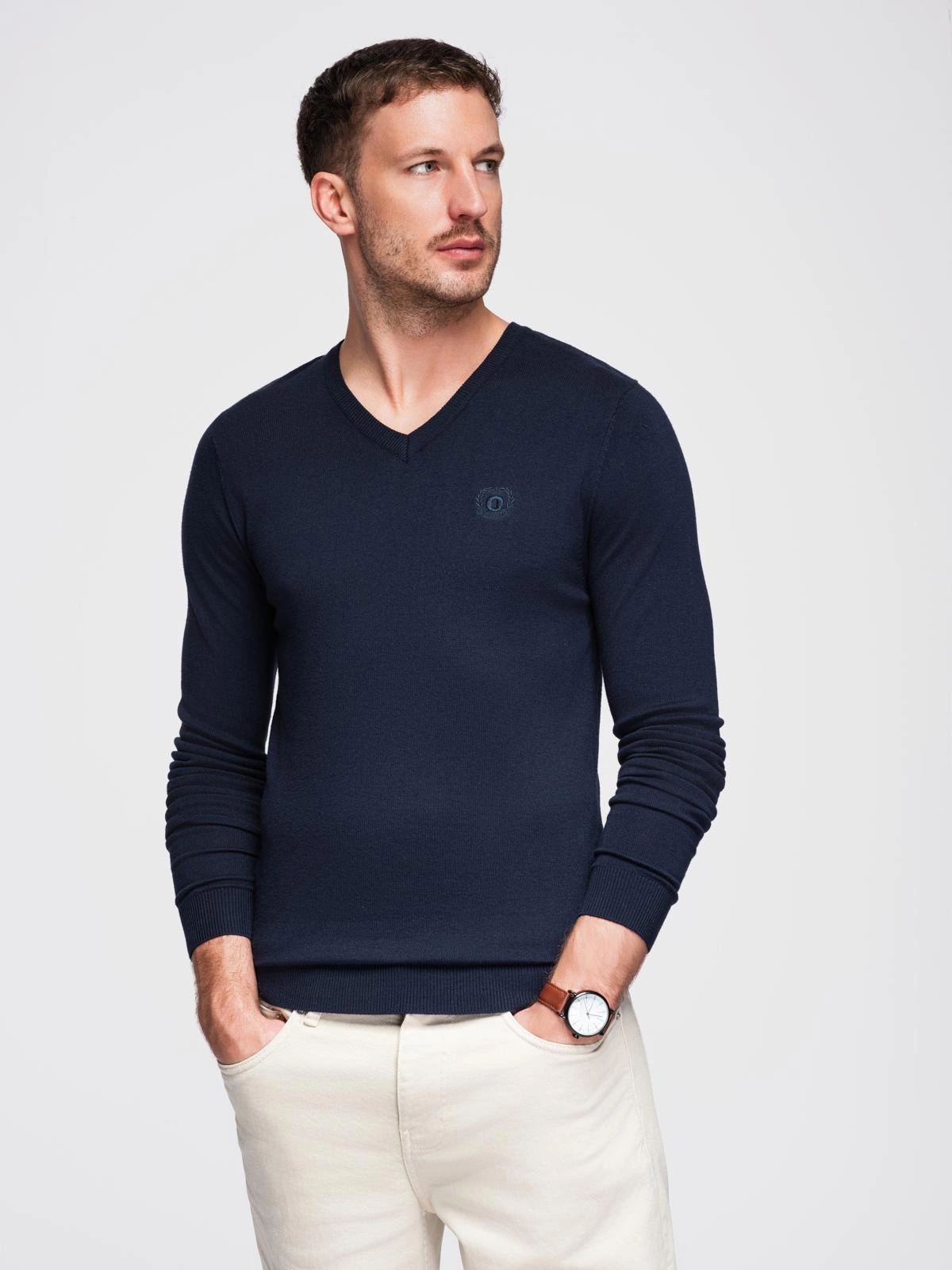 Opinie o Męski elegancki sweter BASIC V-neck z wiskozą – granatowy V2 OM-SWBS-0107