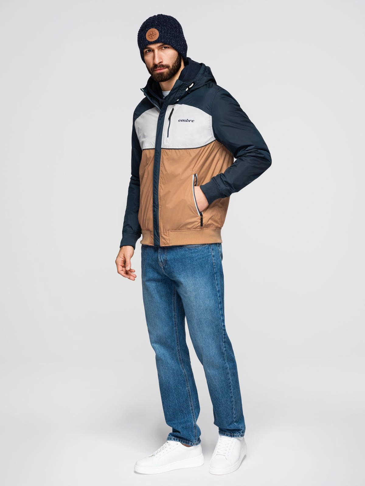 Lekka kolorowa męska kurtka sportowa z polarem – brązowo-granatowa V1 OM-JANP-0194