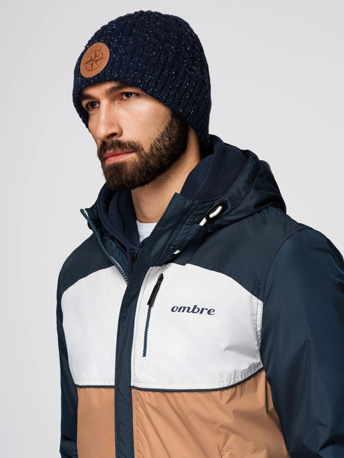 Opinie o Lekka kolorowa męska kurtka sportowa z polarem – brązowo-granatowa V1 OM-JANP-0194