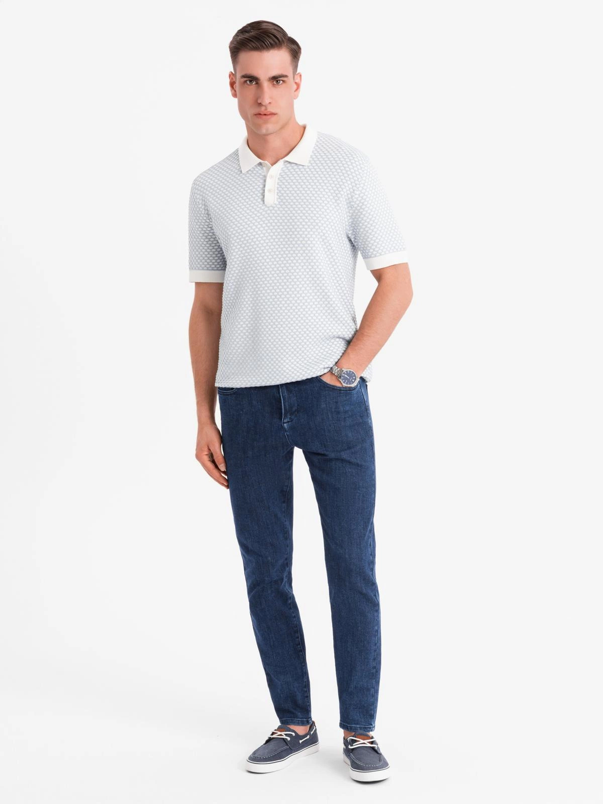 Opinie o Klasyczne spodnie męskie jeansy SLIM FIT z elastanem – ciemnoniebieskie V3 OM-PADP-0216