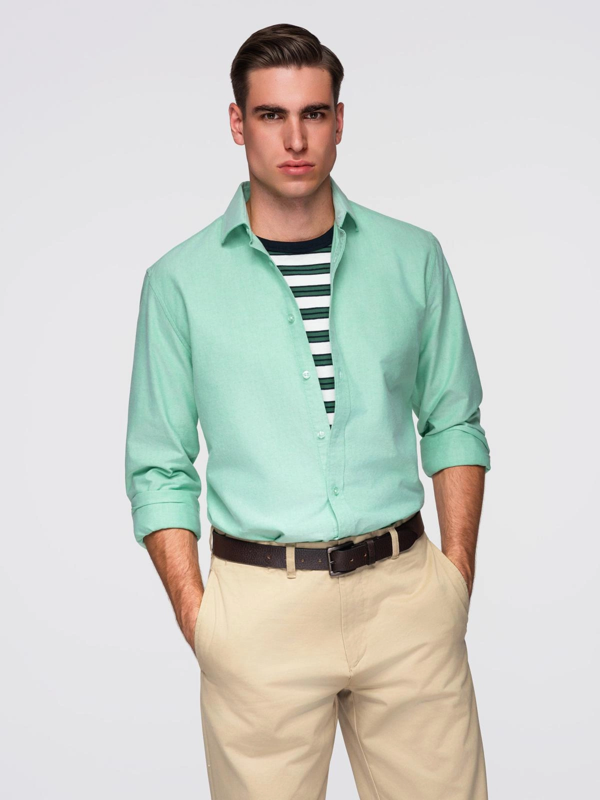 Bawełniana pastelowa koszula męska typu oxford – miętowa V4 OM-SHOS-0183