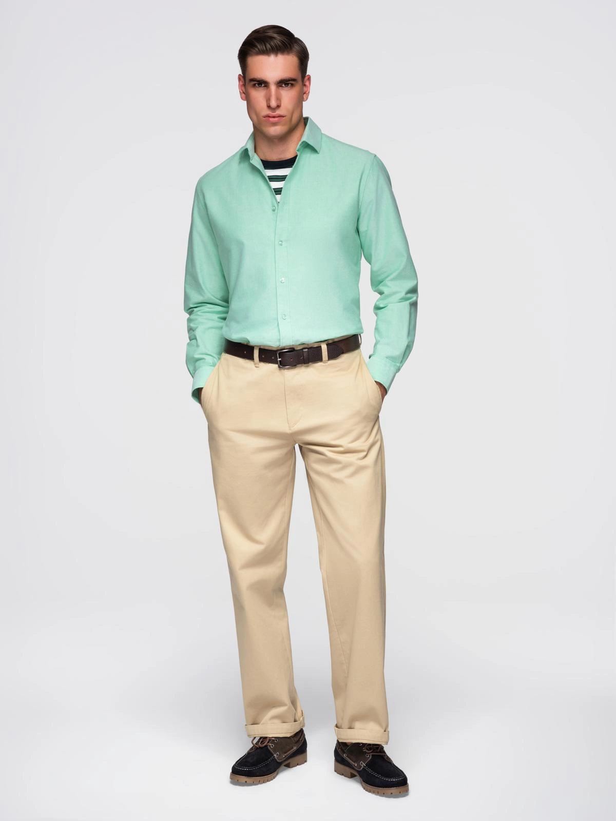 - Bawełniana pastelowa koszula męska typu oxford – miętowa V4 OM-SHOS-0183