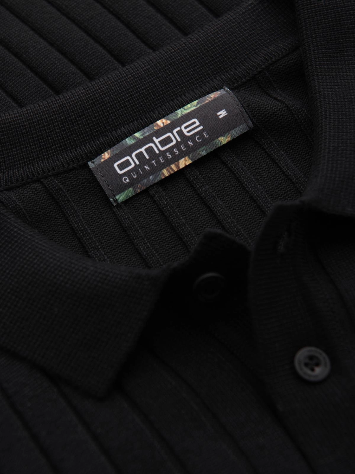 Opinie o Męska koszulka polo z wiskozą SLIM FIT w pionowy prążek – czarna V1 OM-POSS-0143