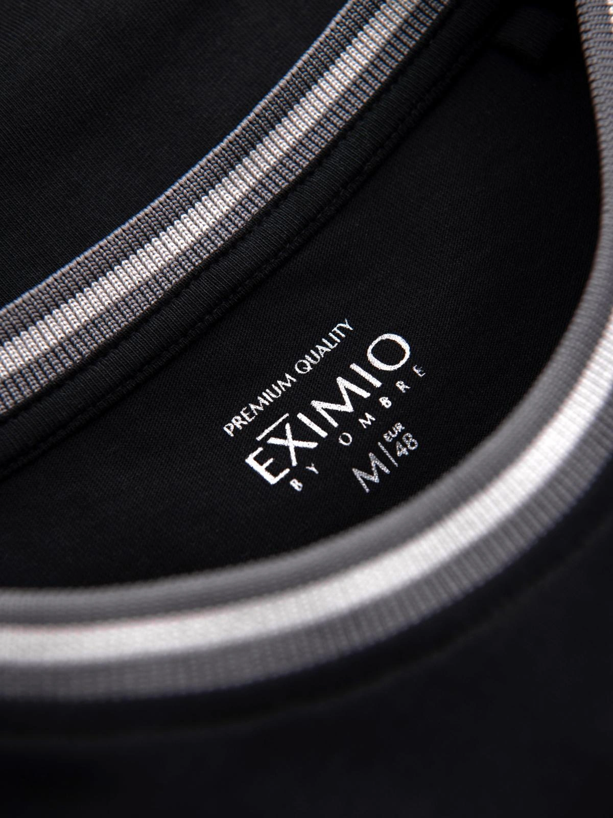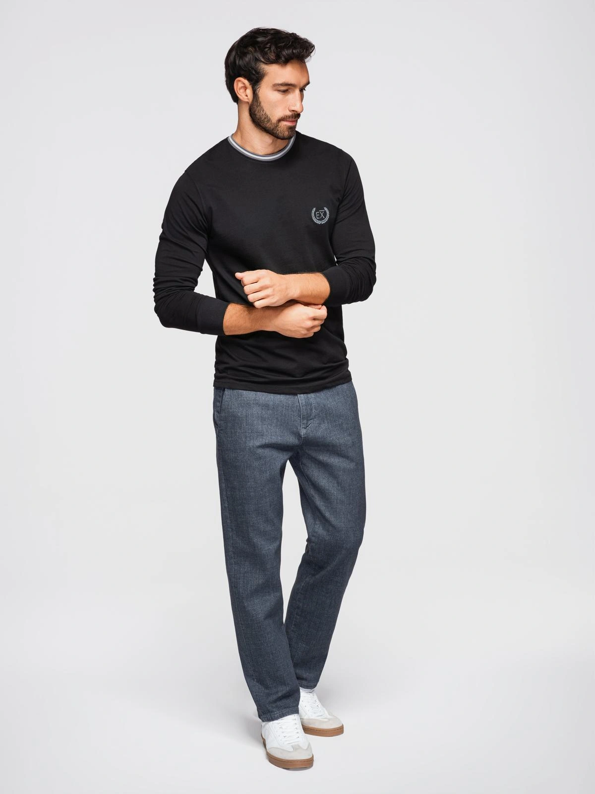 Bawełniany longsleeve męski z dekoltem U w paski i haftem – czarny V4 OM-LSCL-0128
