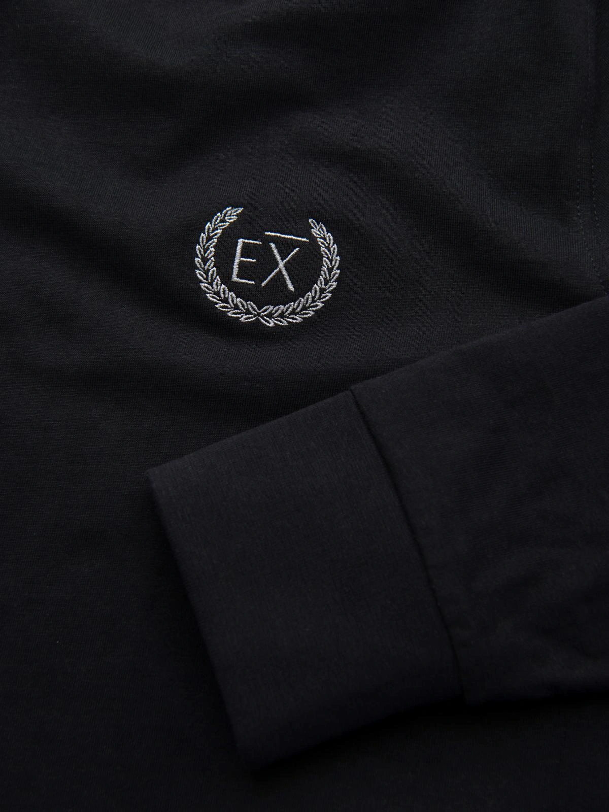 Ten longsleeve z kolekcji Ombre Eximio wyróżnia charakterystyczny dekolt w paski oraz dopasowany kolorystycznie haft na piersi. Wyrazisty design nawiązuje do obecnie trendującej estetyki sportowej elegancji. Koszulka jest prosta w stylizacji – świetnie pasuje zarówno do jeansów, jak i do spodni chino. Dobrze układa się na ciele oraz swobodnie się nosi dzięki miłej w dotyku bawełnianej dzianinie.