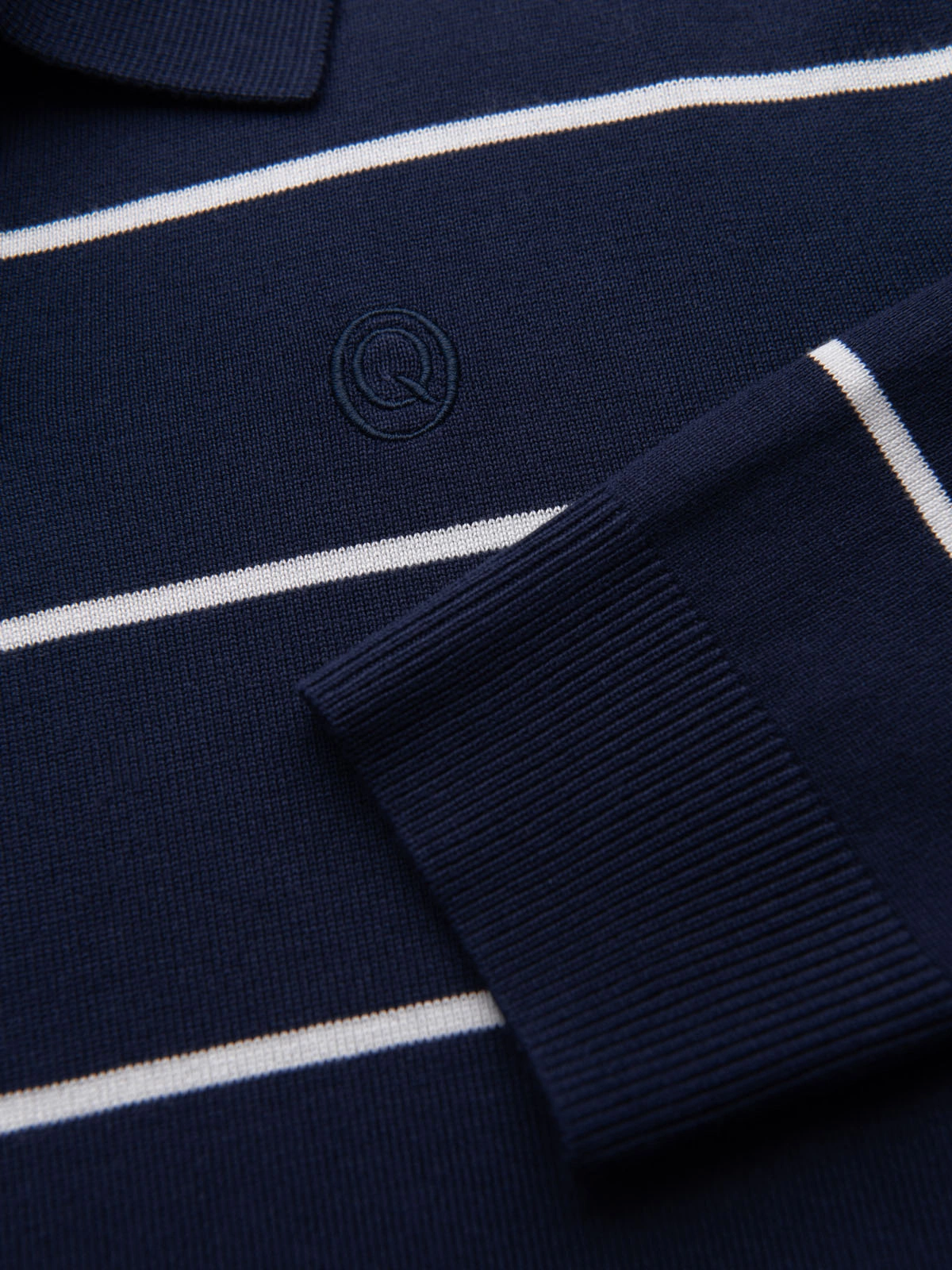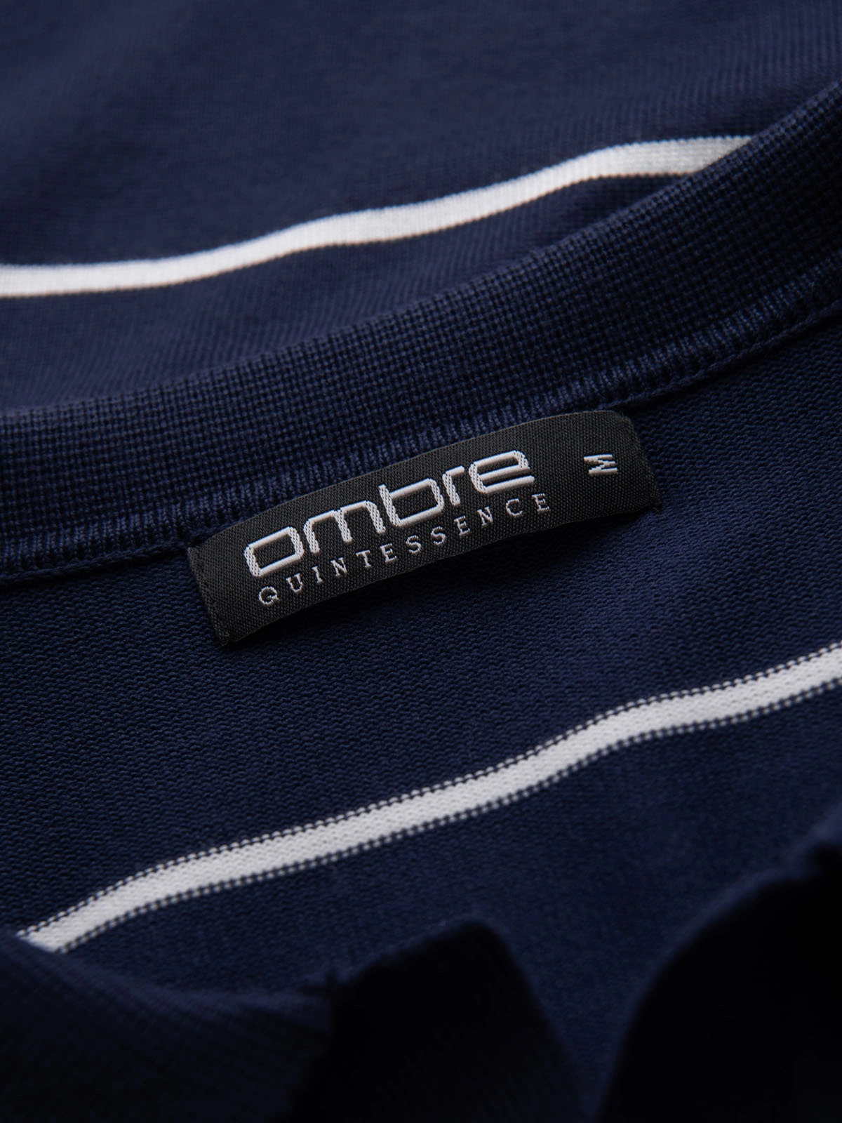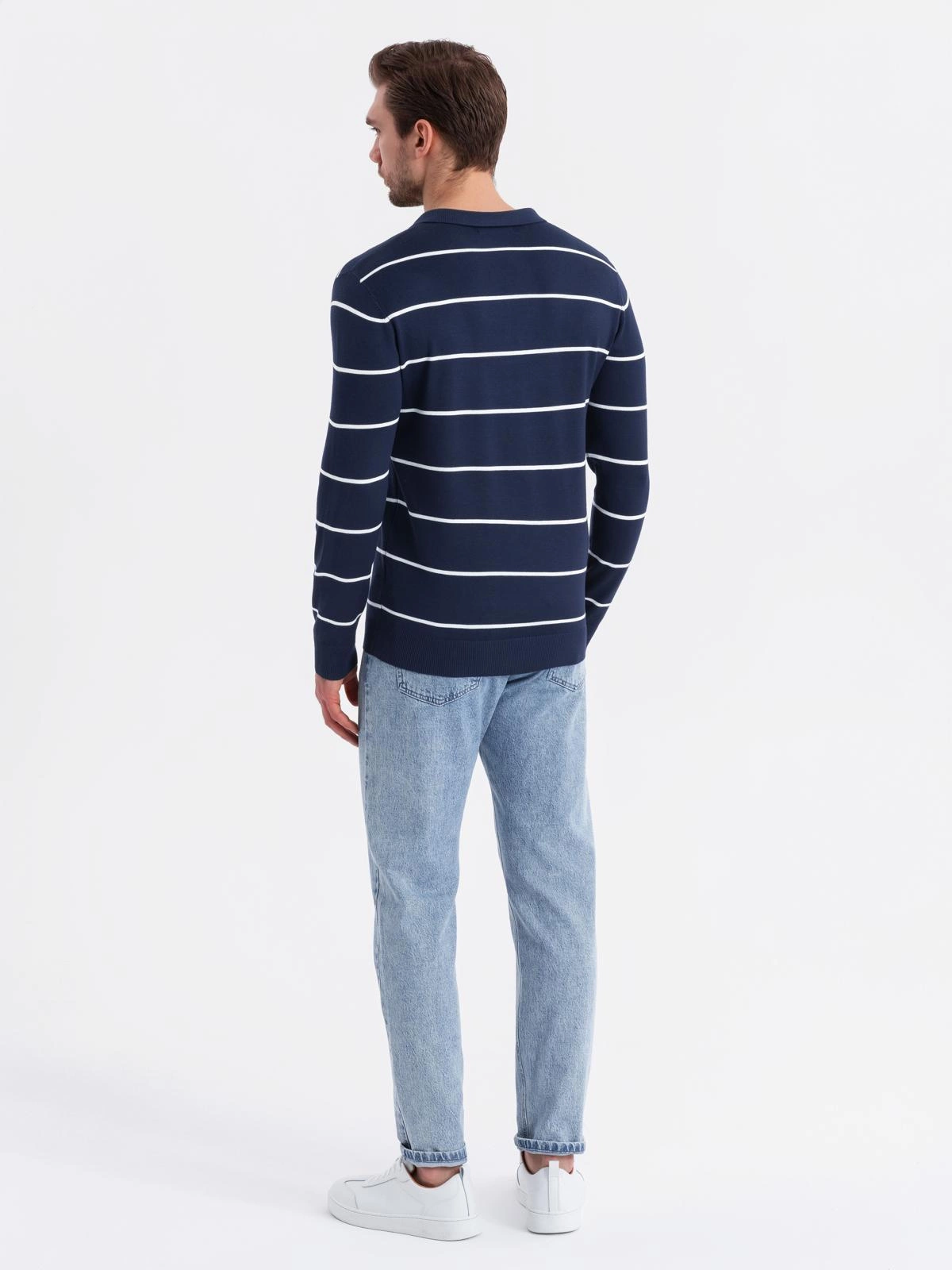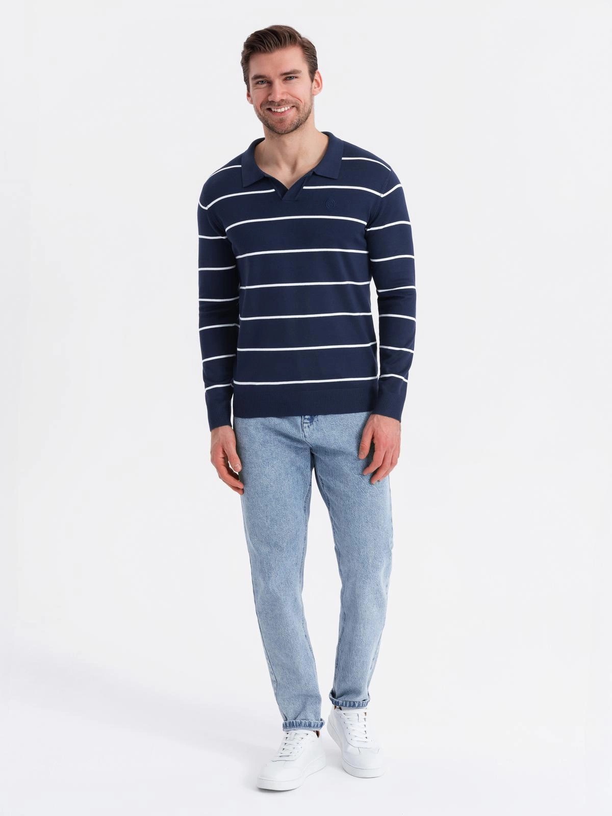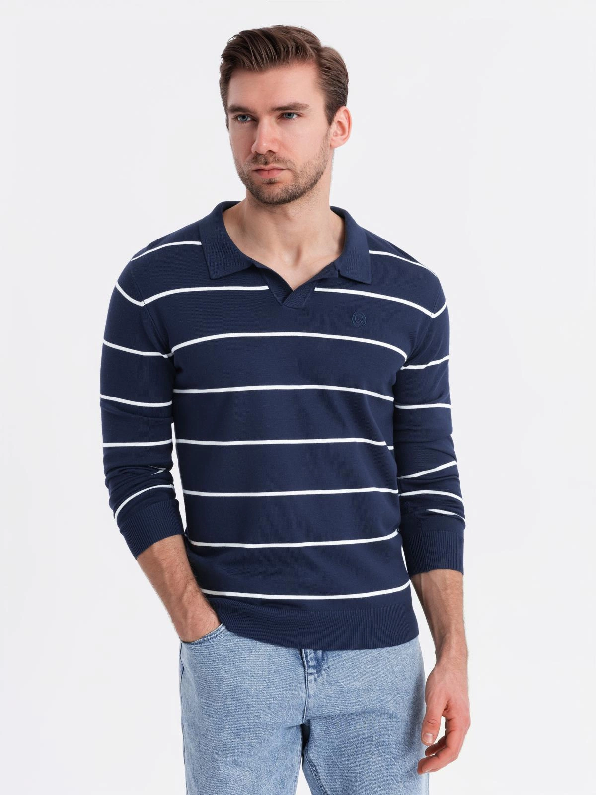 - Męski longsleeve polo w poziome paski z wiskozą – granatowo-biały V1 OM-POLS-0146