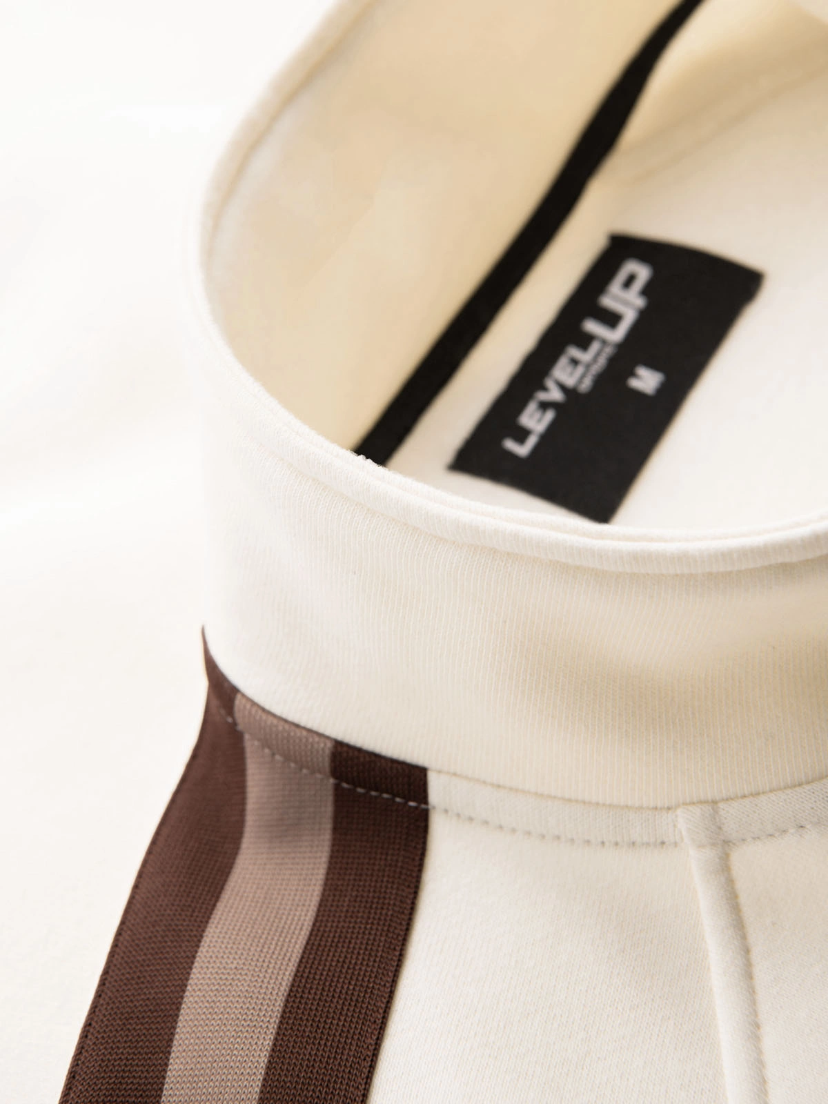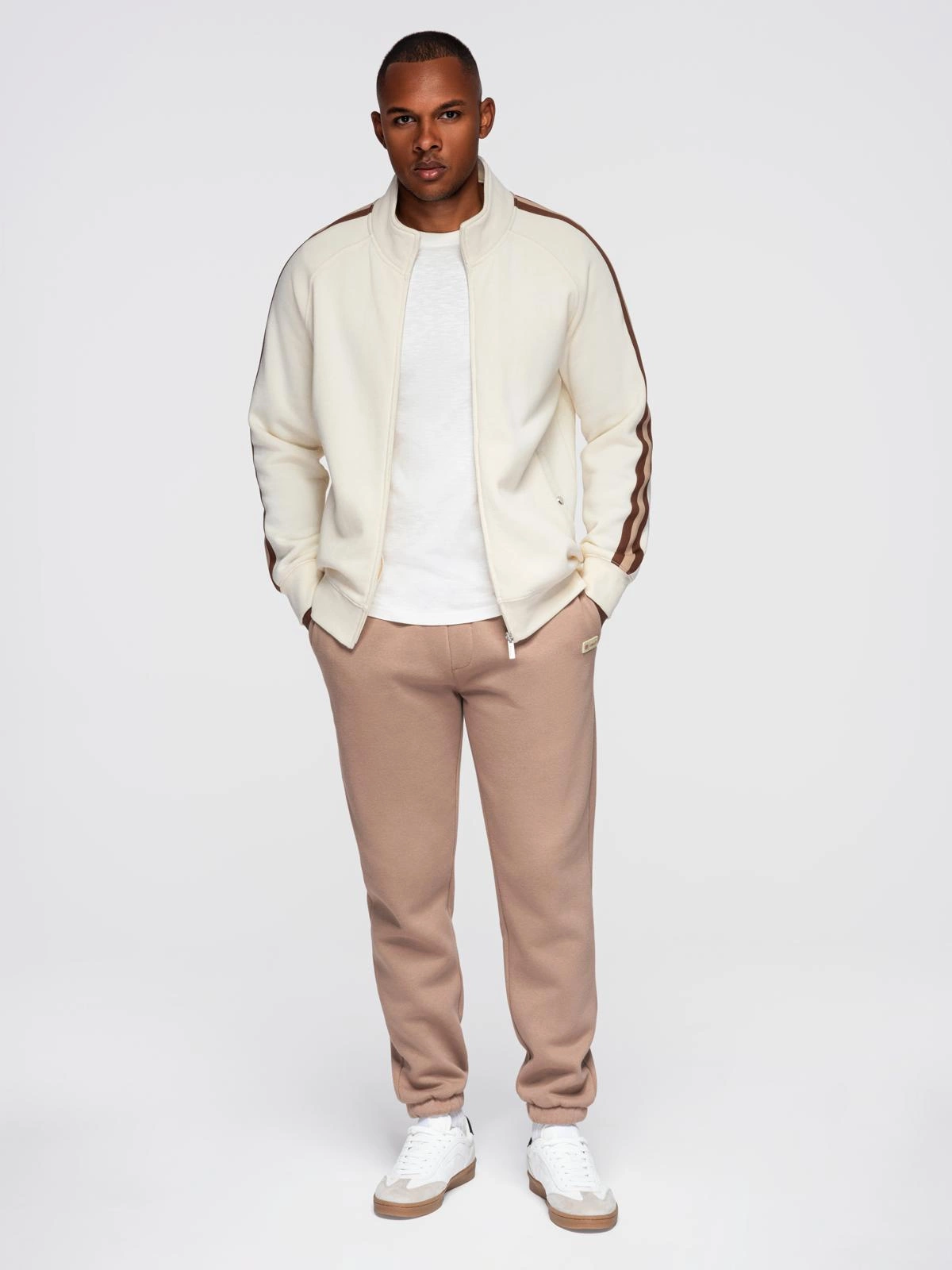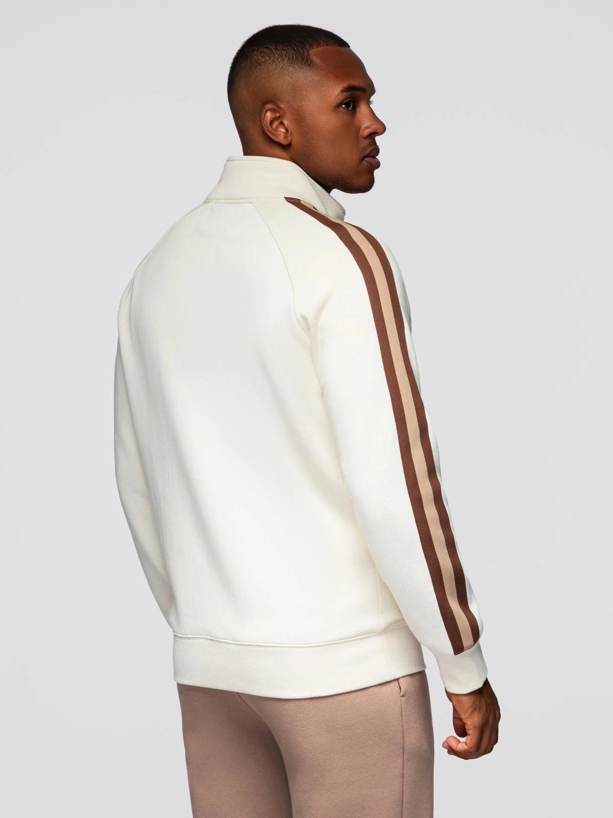 Męska bluza dresowa z wysokim kołnierzem i lampasami – kremowa V3 OM-SSZP-0219