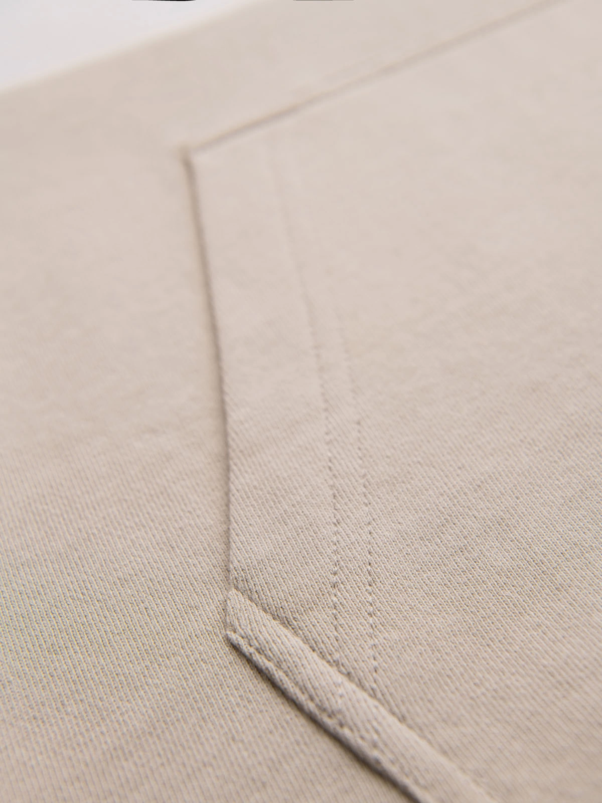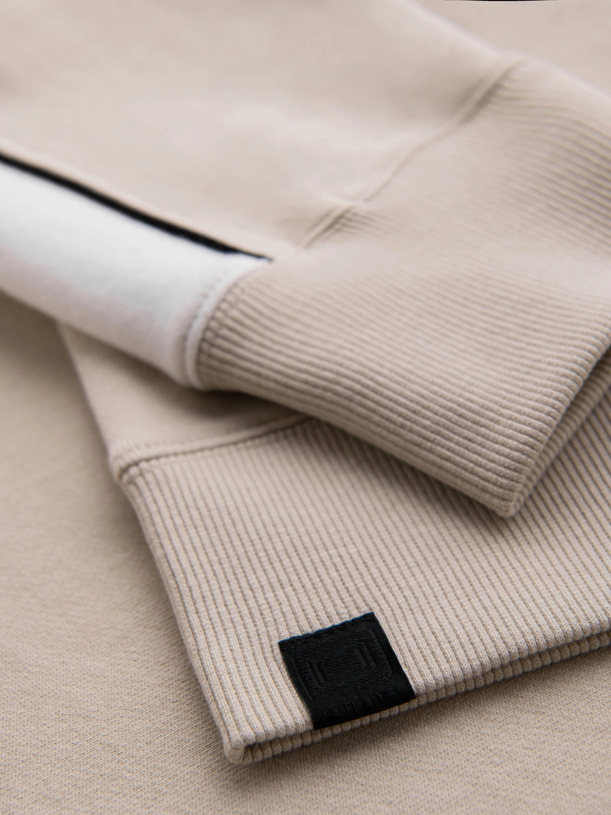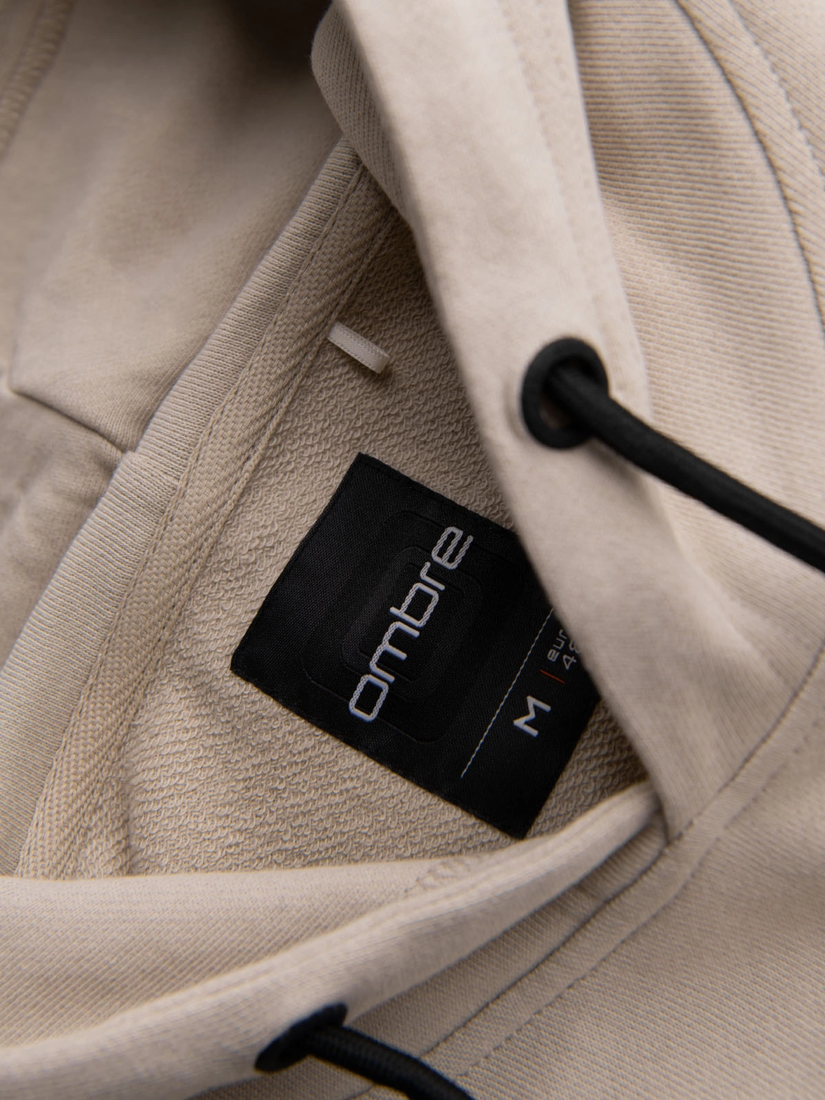 Bawełniana męska bluza z kapturem z kontrastującymi elementami - beżowa V2 OM-SSNZ-0225
