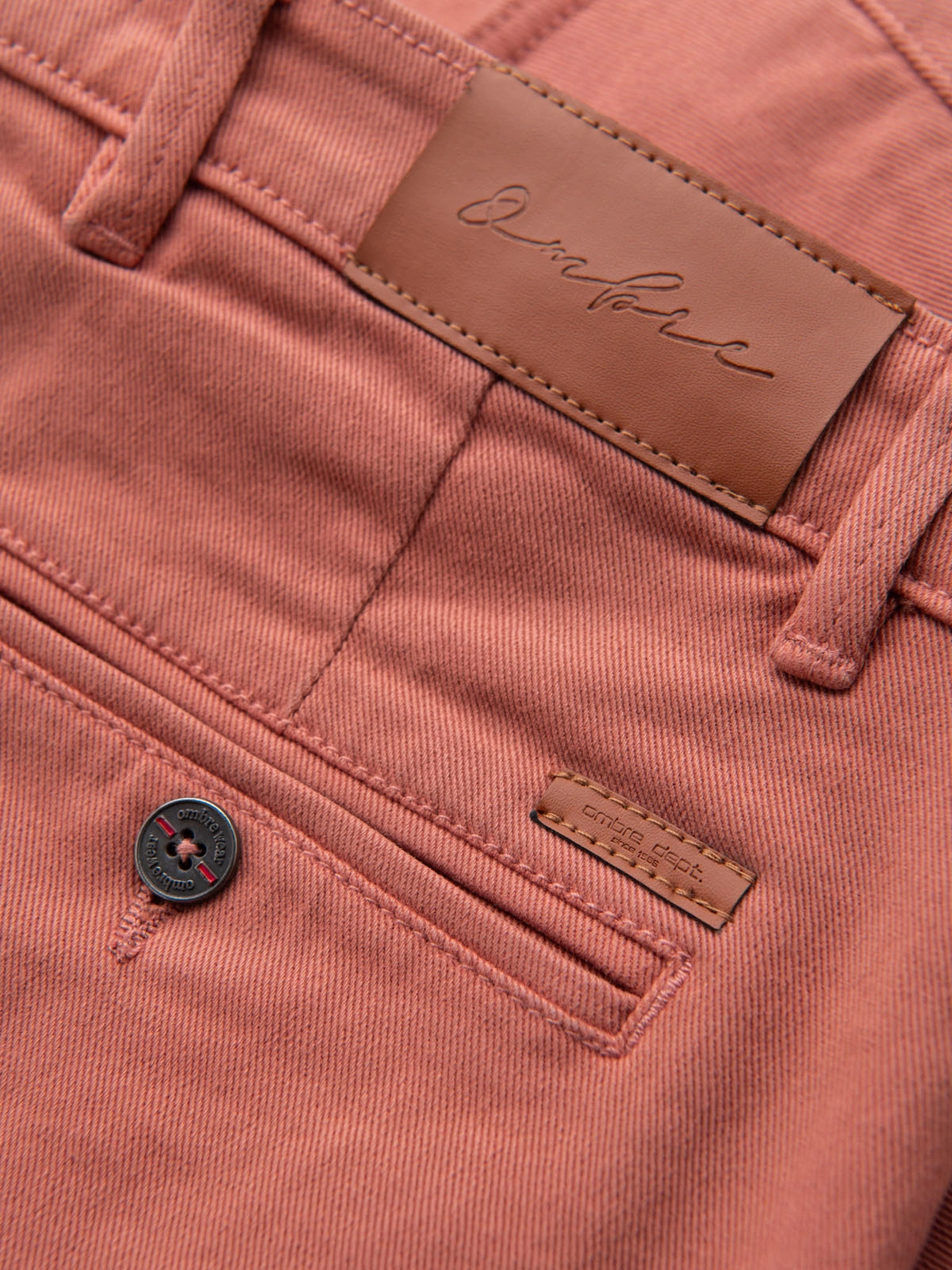 - Męskie jeansowe klasyczne szorty z podwiniętą nogawką – koralowe V6 OM-SRDS-0162