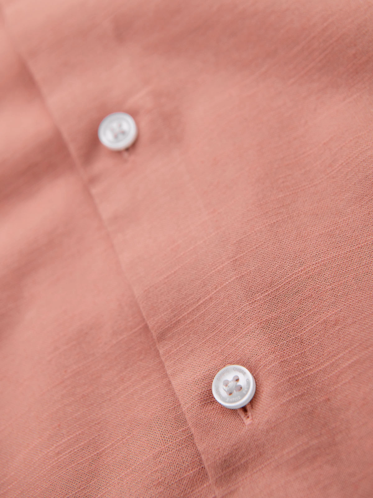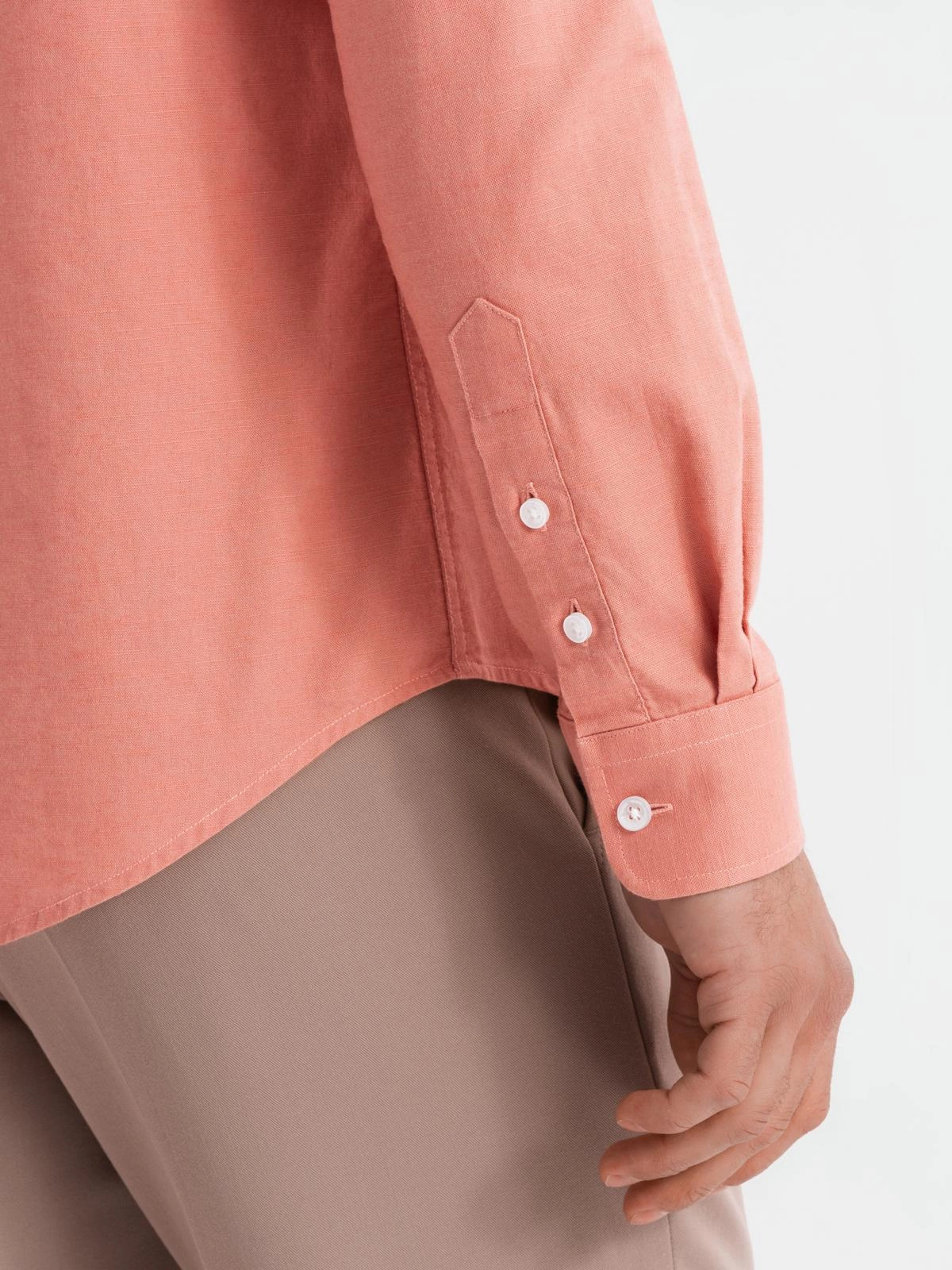 Męska koszula lniana ze stójką i kieszenią REGULAR FIT – brzoskwiniowa V1 OM-SHCS-0161