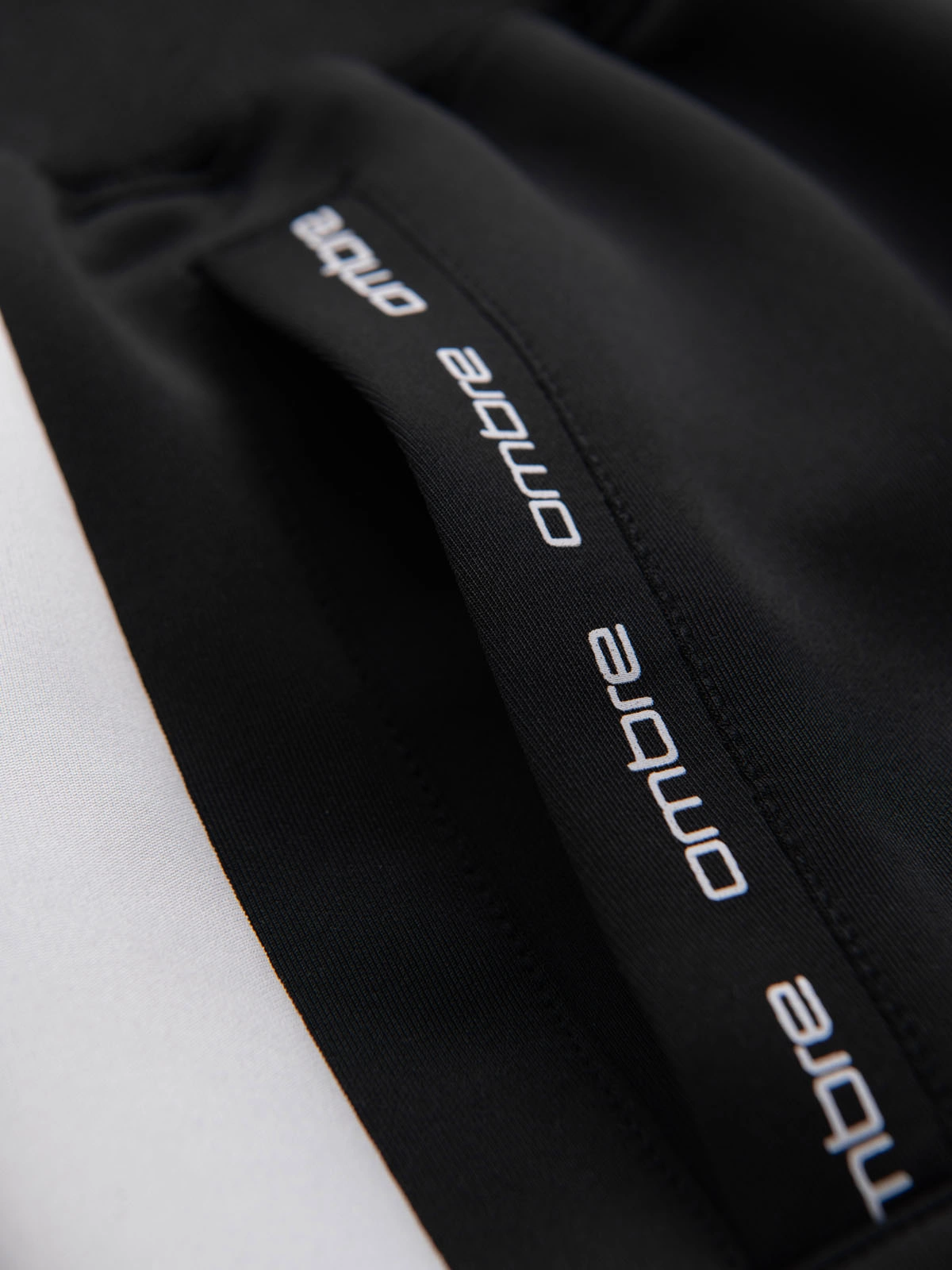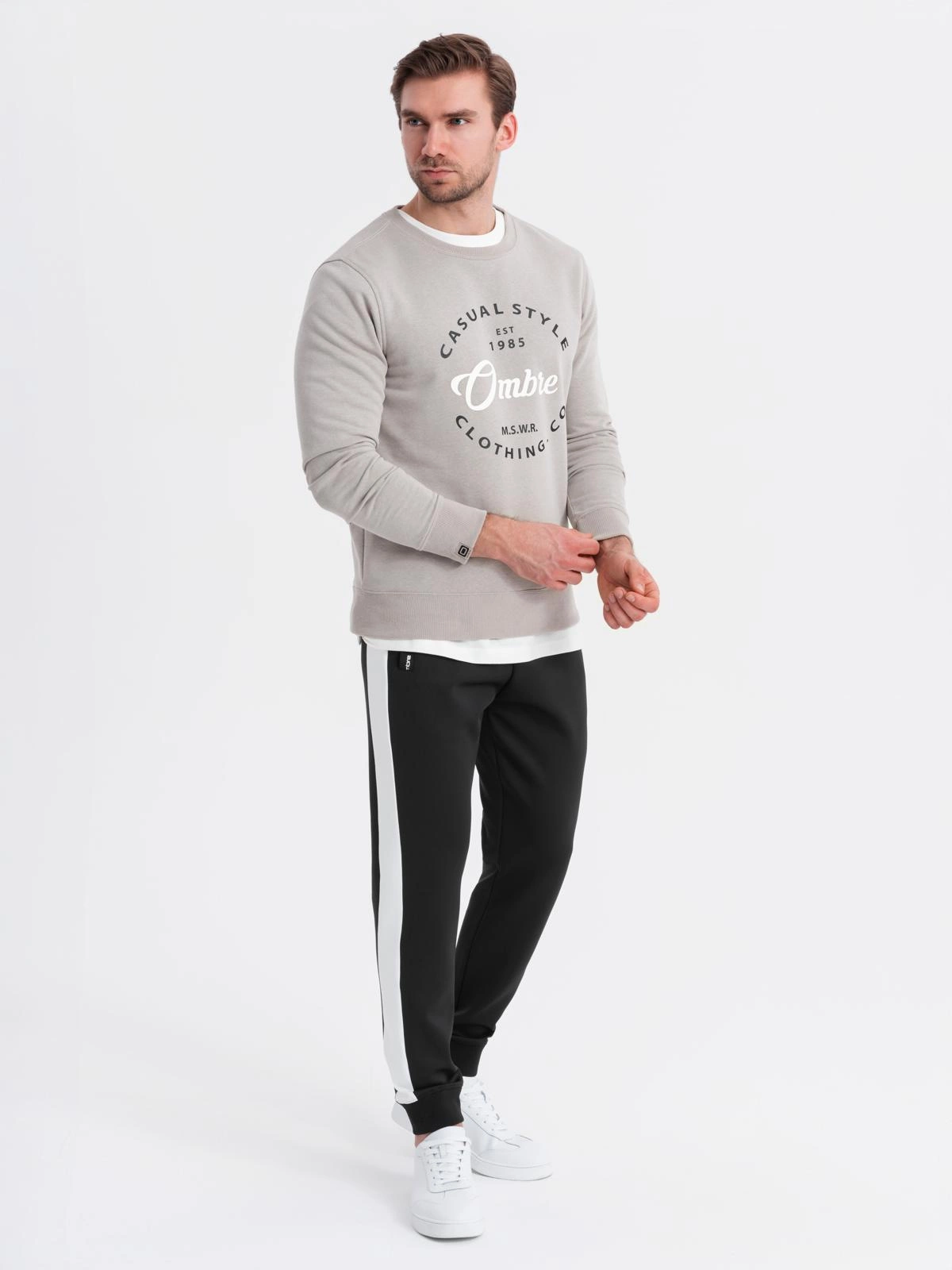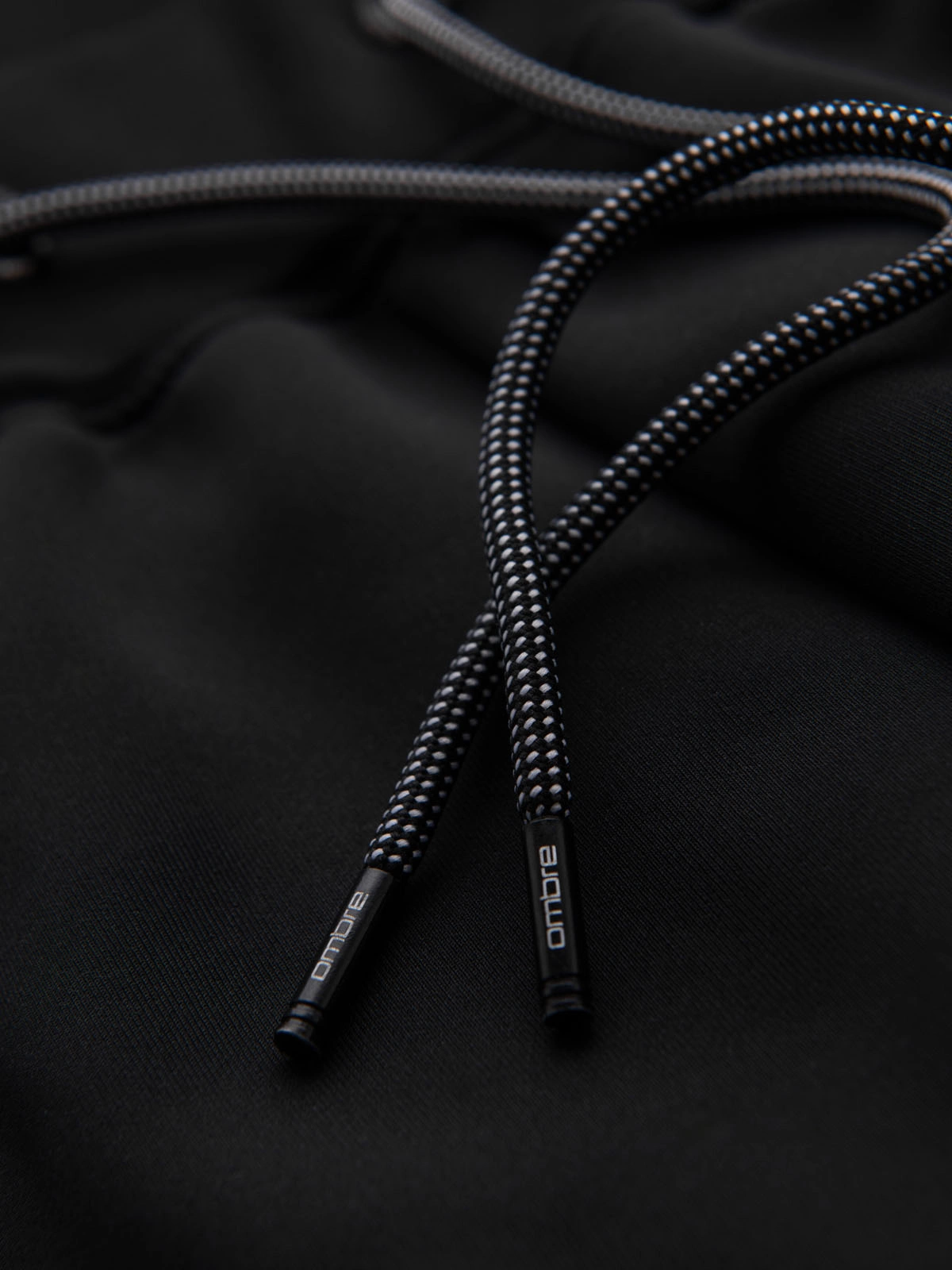 Dresowe męskie spodnie joggery z kontrastowymi lampasami – czarne V1 OM-PASK-0229