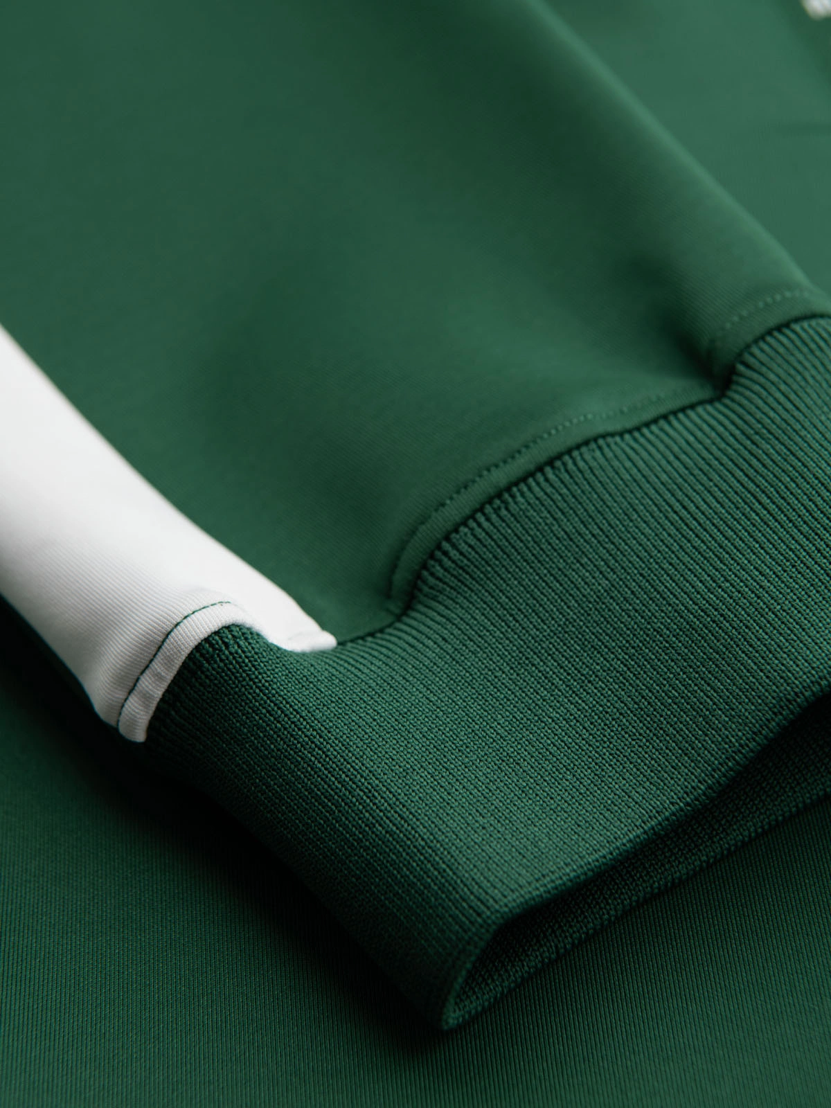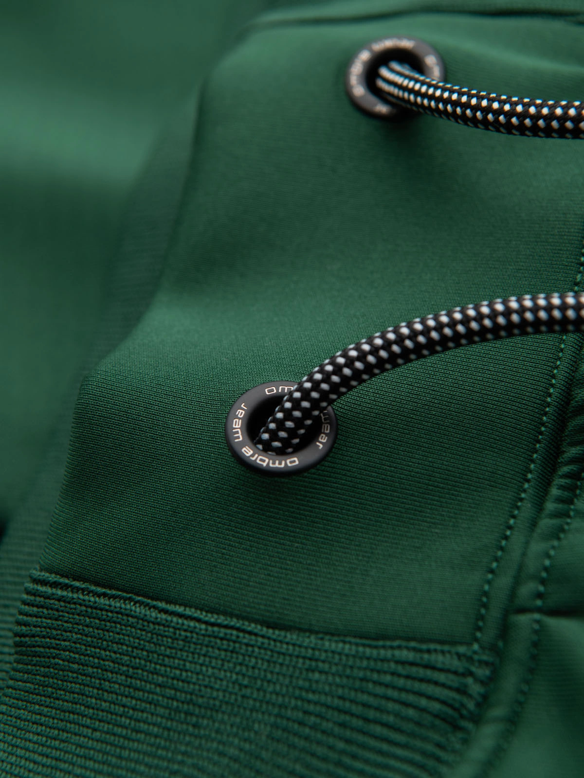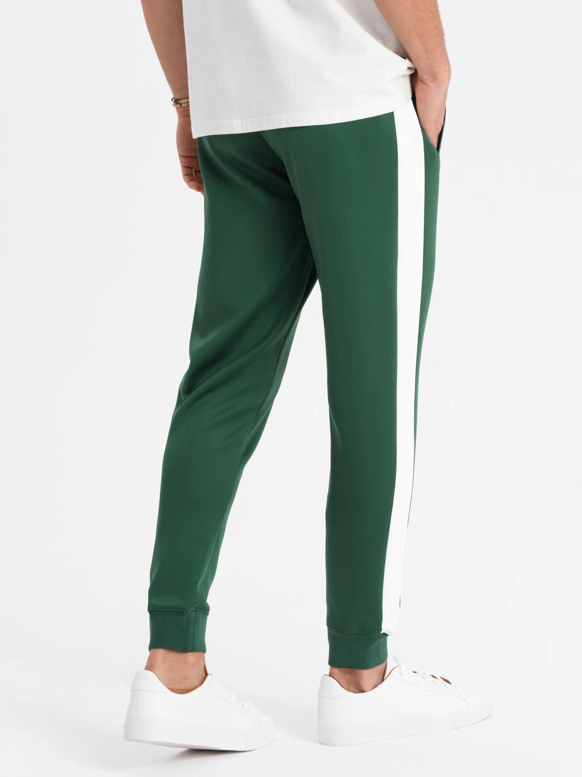 Dresowe męskie spodnie joggery z kontrastowymi lampasami – ciemnozielone V7 OM-PASK-0229