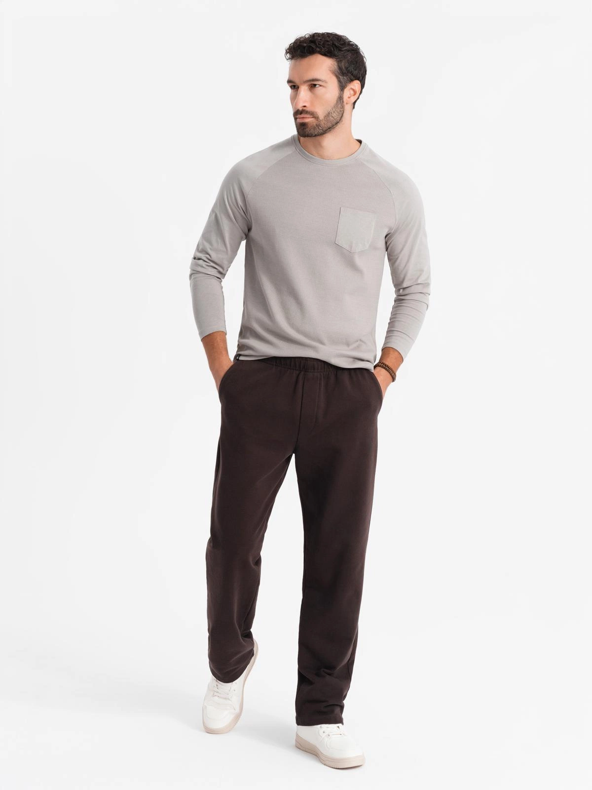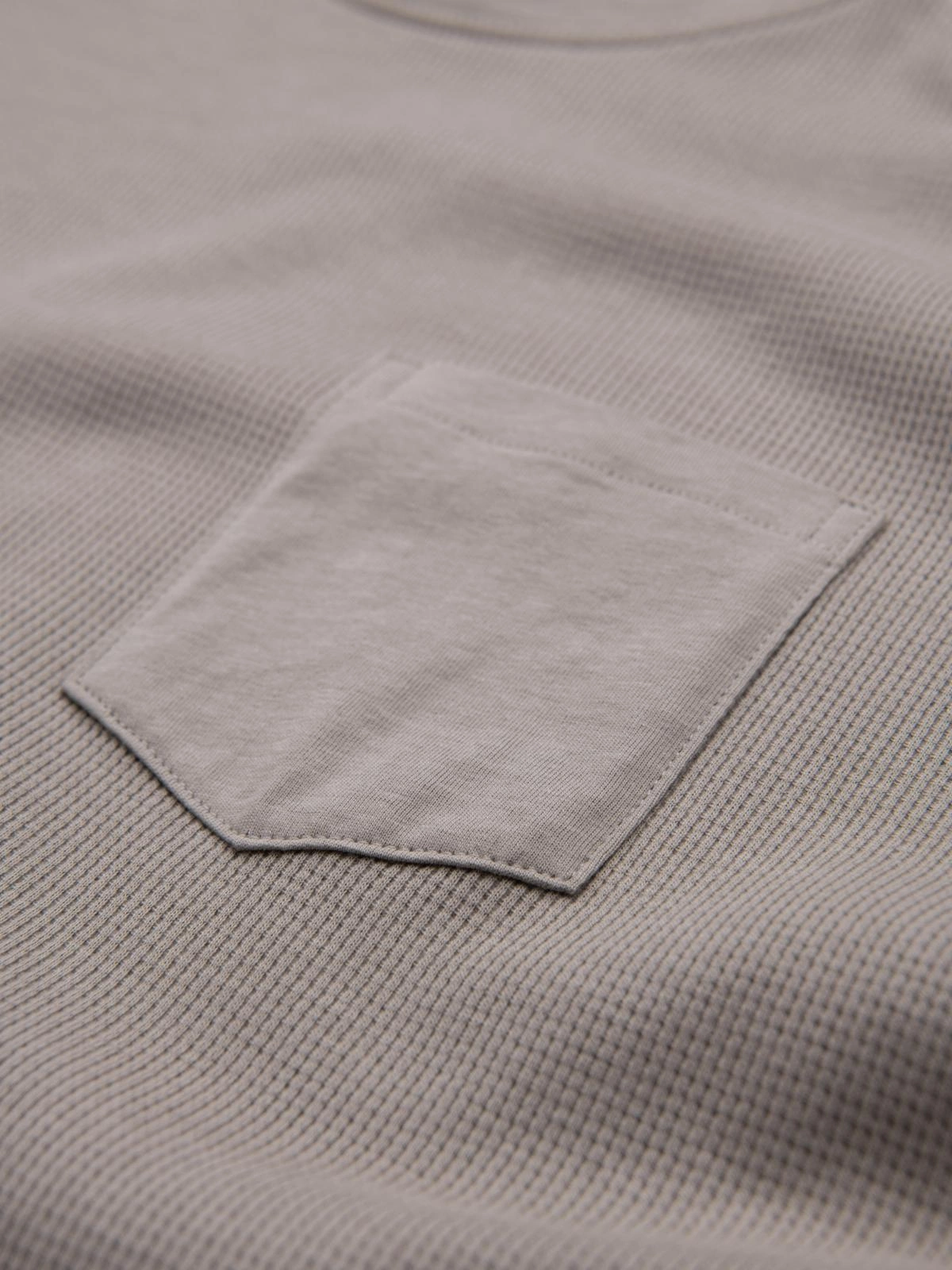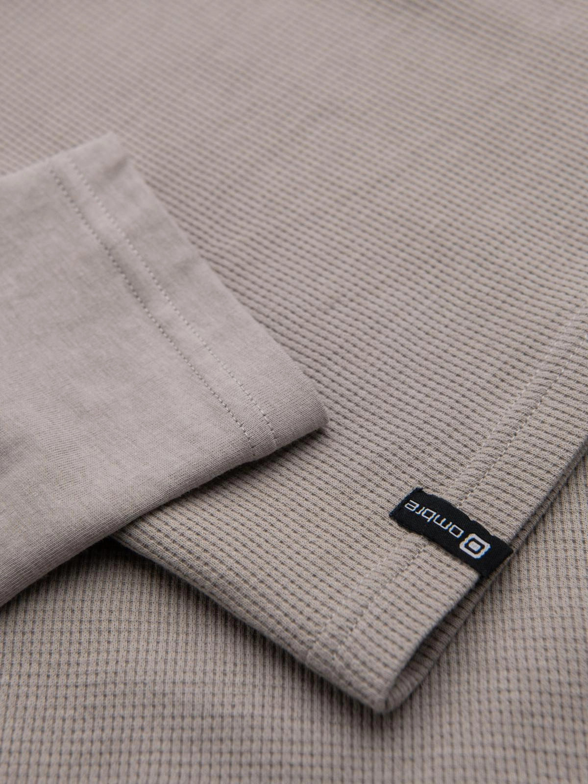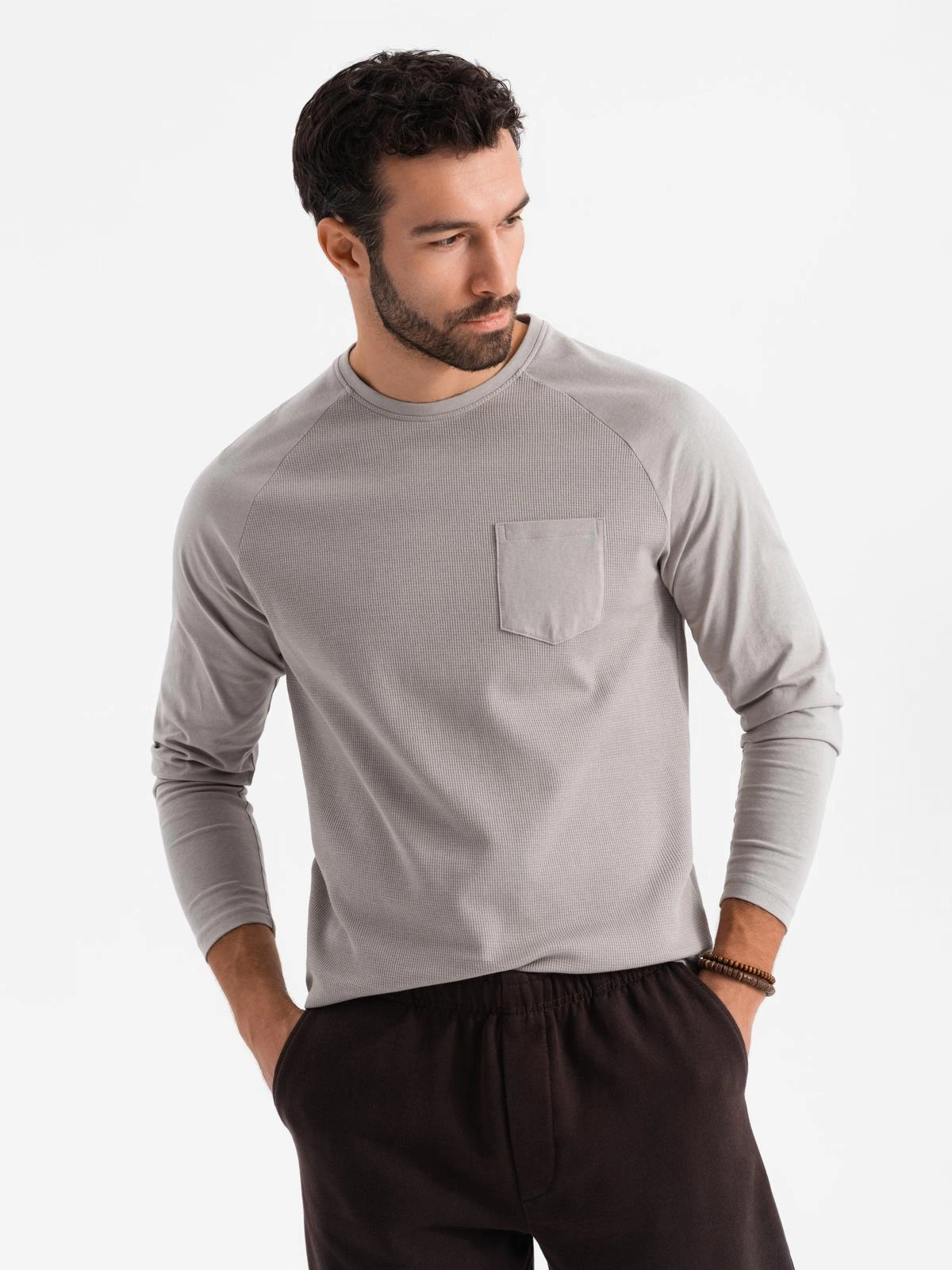Bawełniany męski longsleeve o waflowym splocie z kieszonką – popielaty V1 OM-LSCL-0109