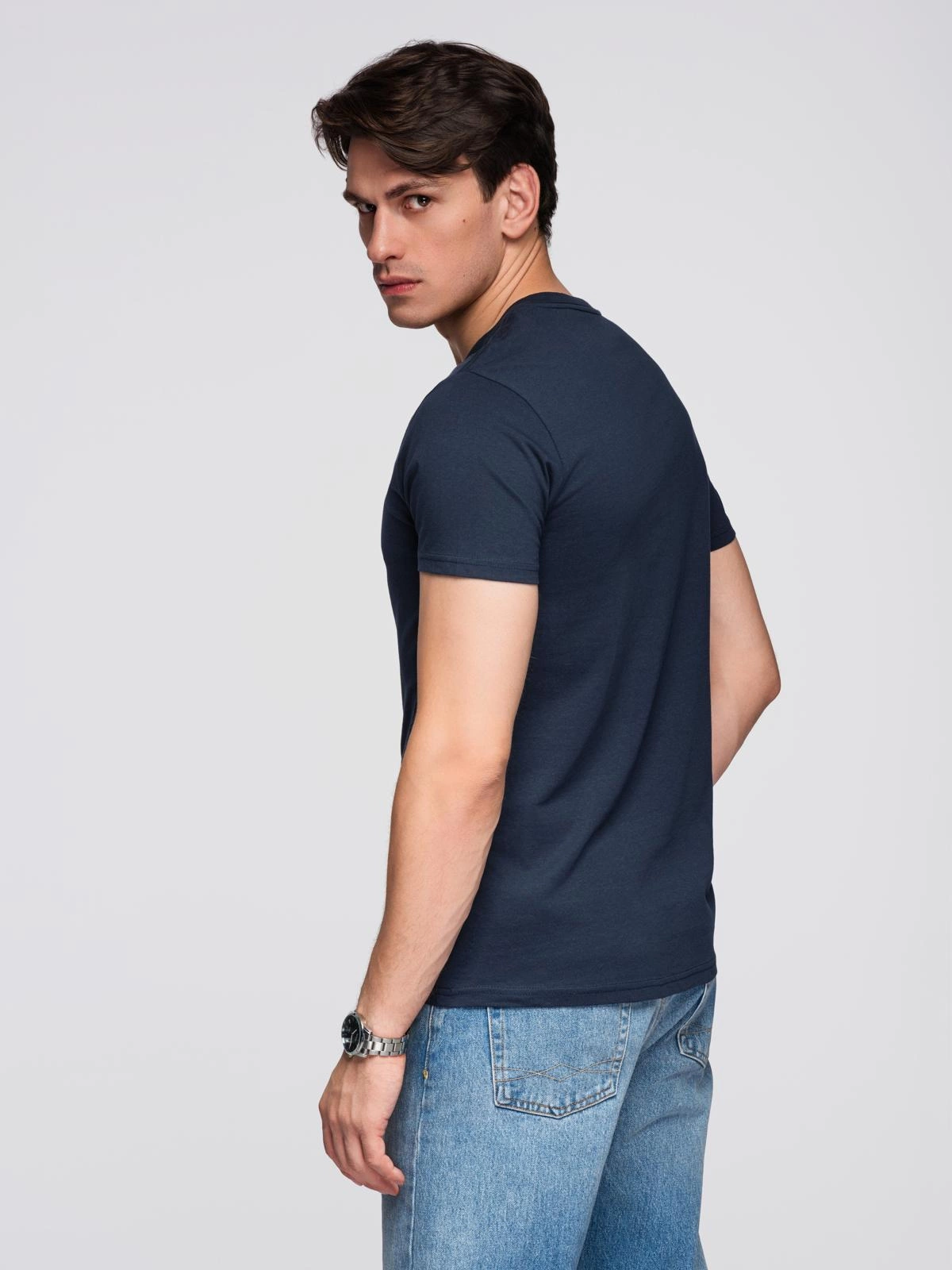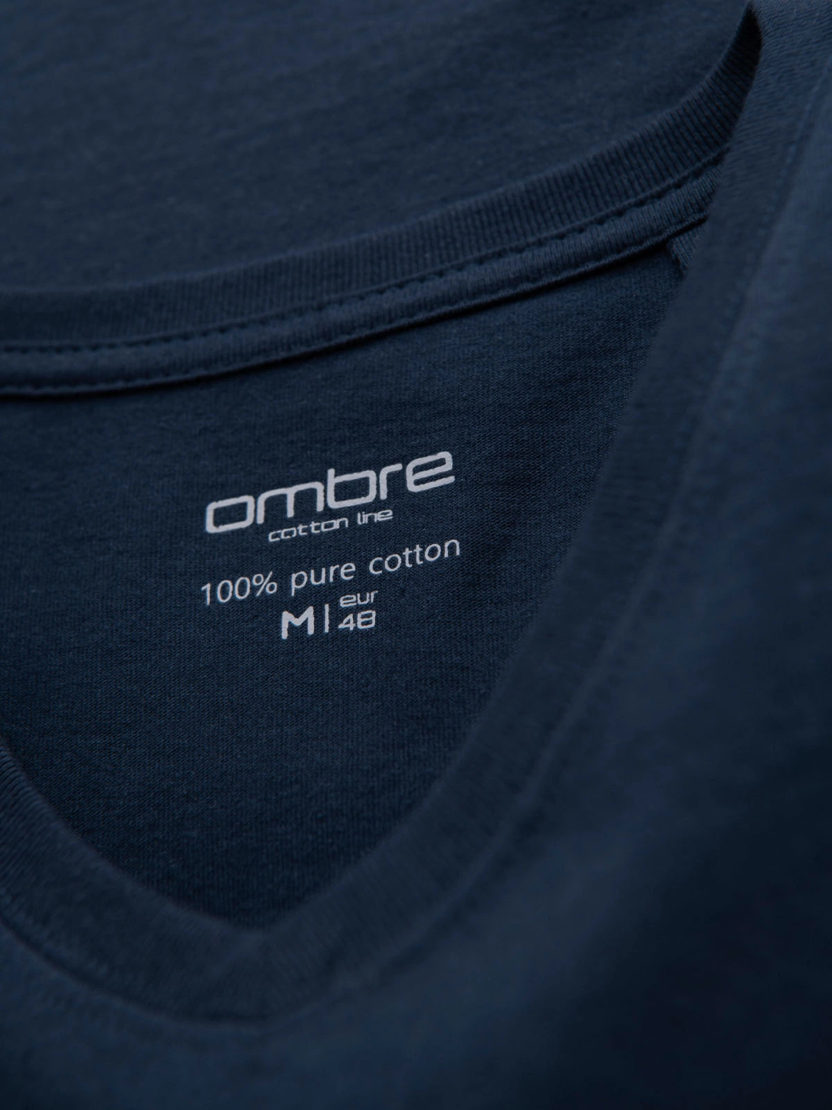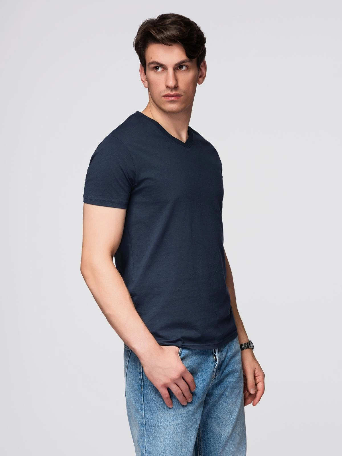 Męska klasyczna bawełniana koszulka z dekoltem w serek BASIC – granatowa V2 OM-TSBS-0237