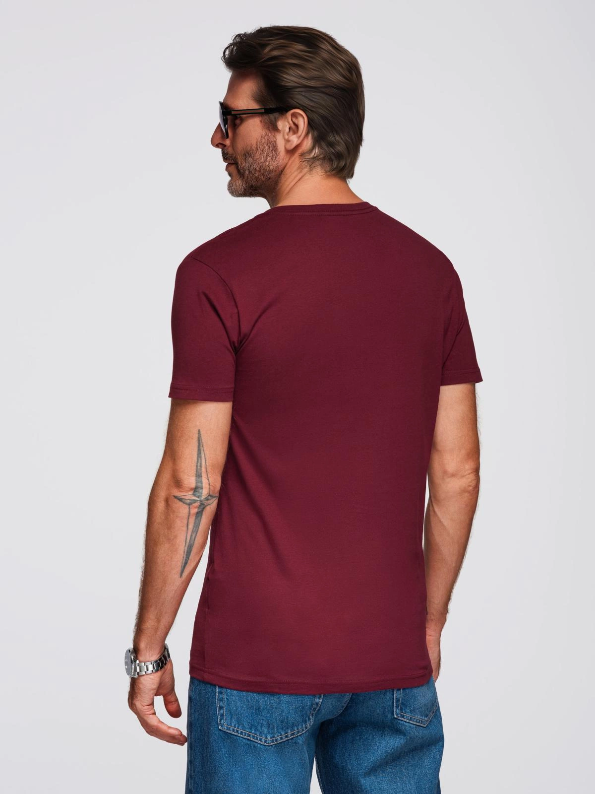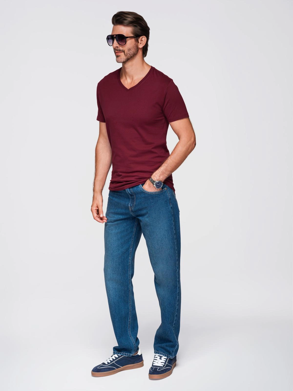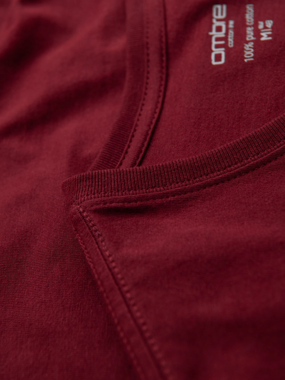 Bawełniana klasyczna męska koszulka z dekoltem w serek BASIC – bordowa V10 OM-TSBS-0237
