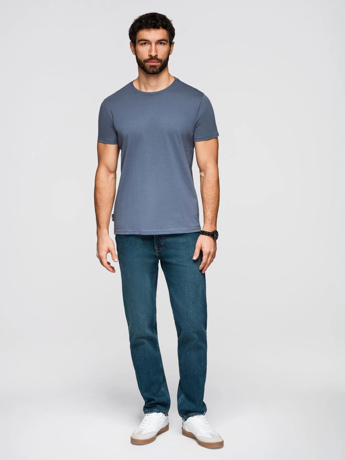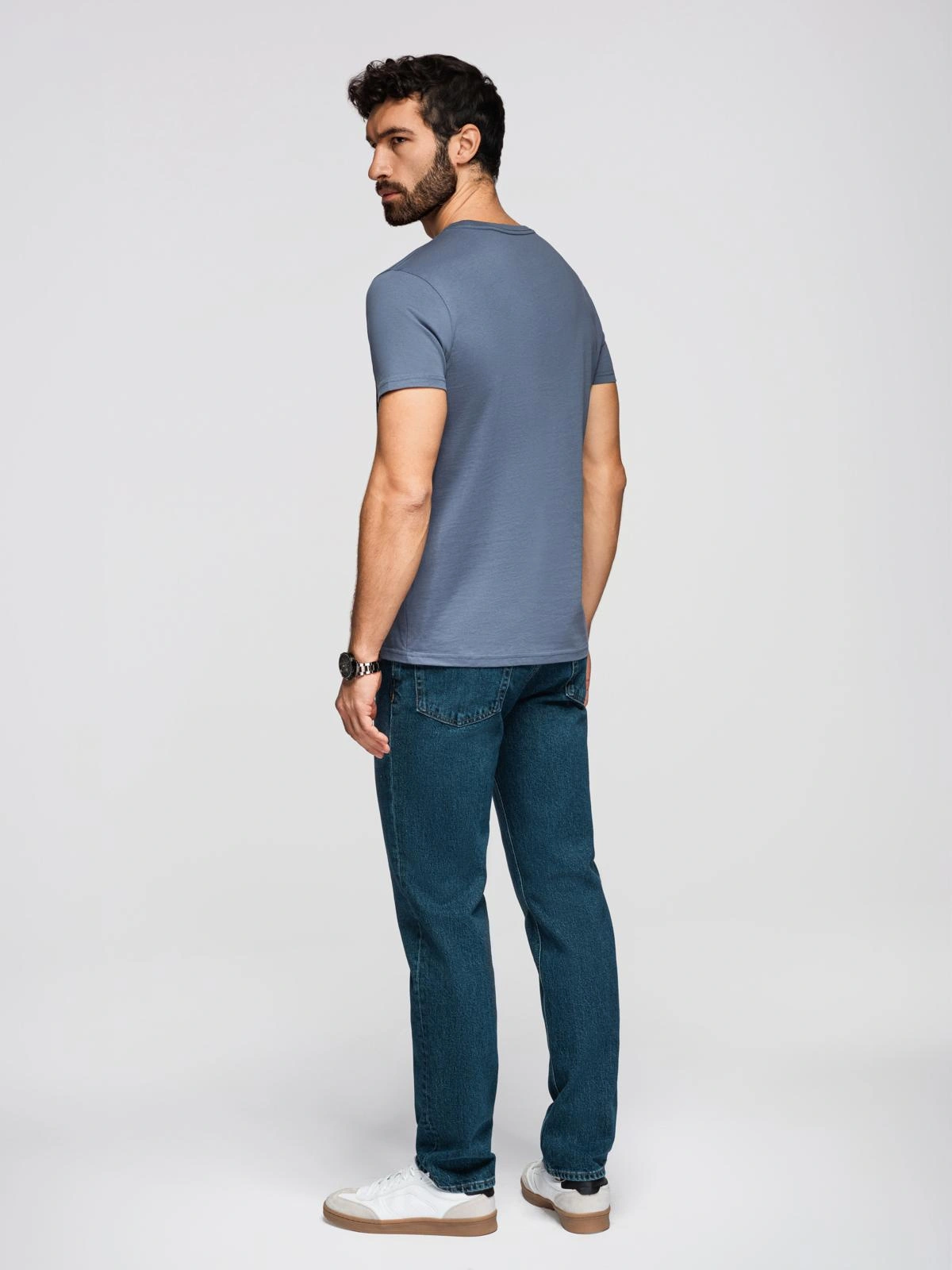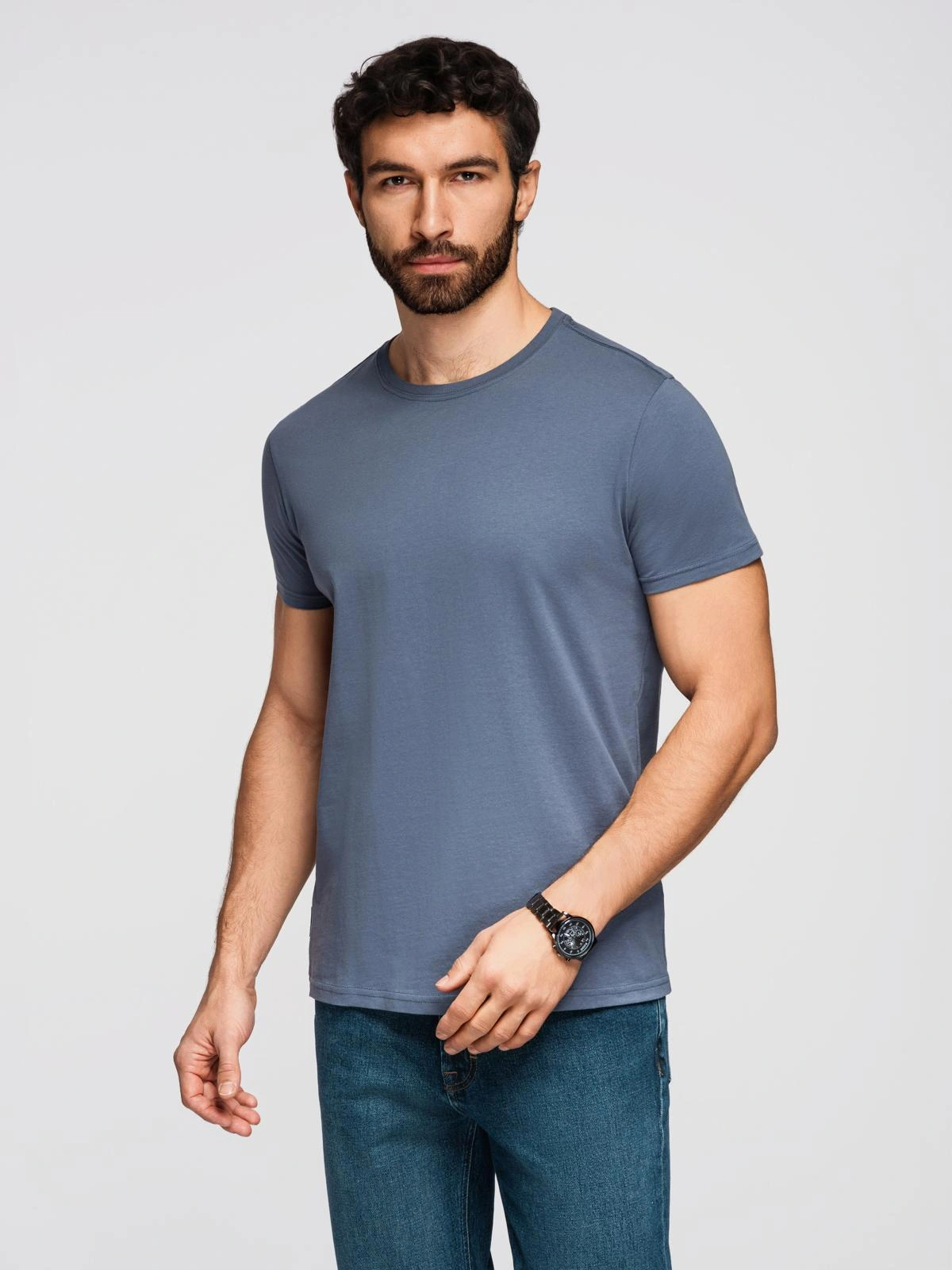 Opinie o T-shirt męski klasyczny bawełniany BASIC - niebieski denim V7 OM-TSBS-0236