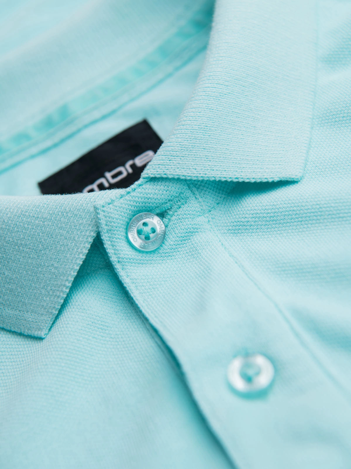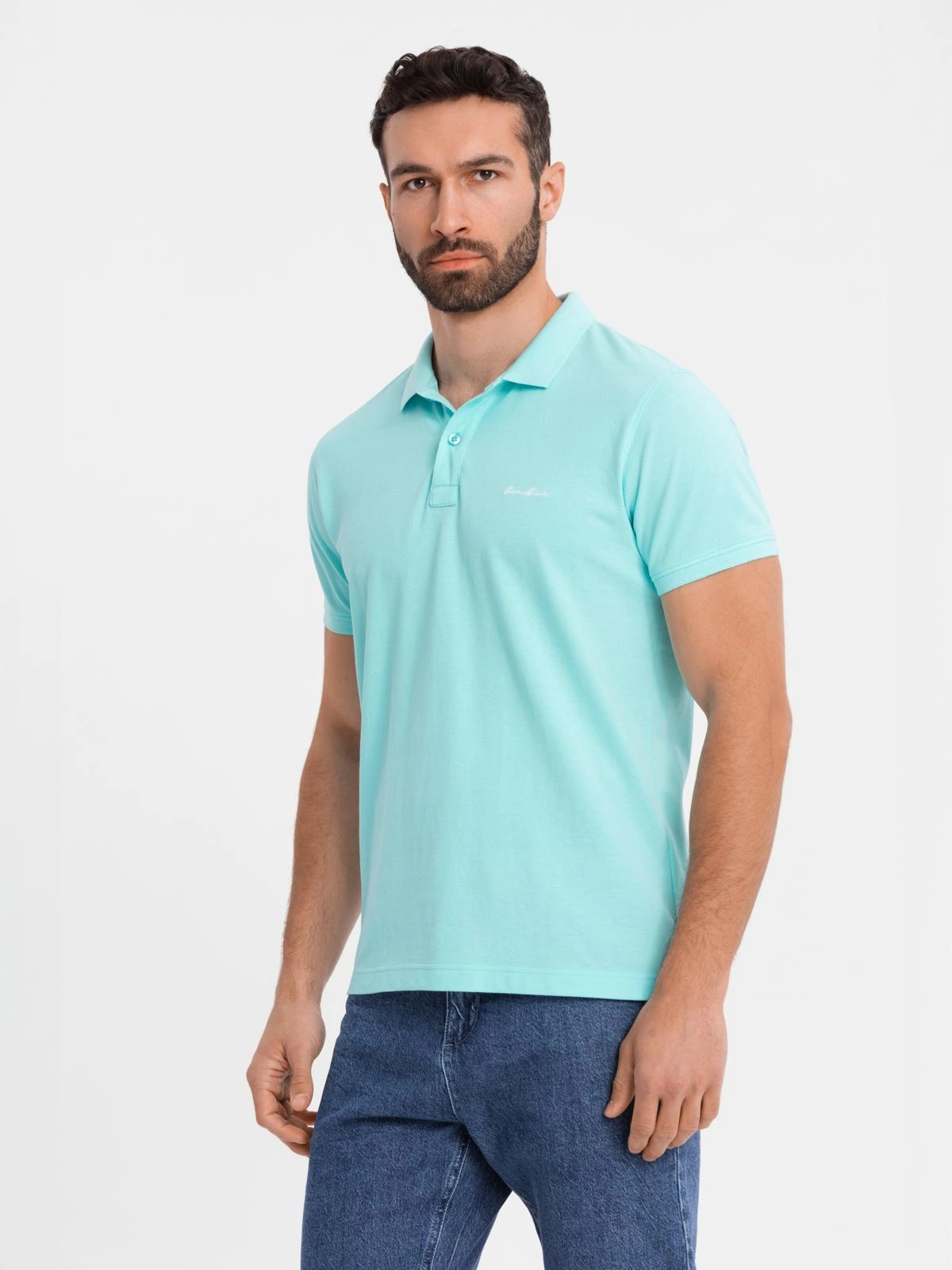 Polo koszulka z bawełnianej dzianiny pique – błękitna V2 OM-POSS-0103